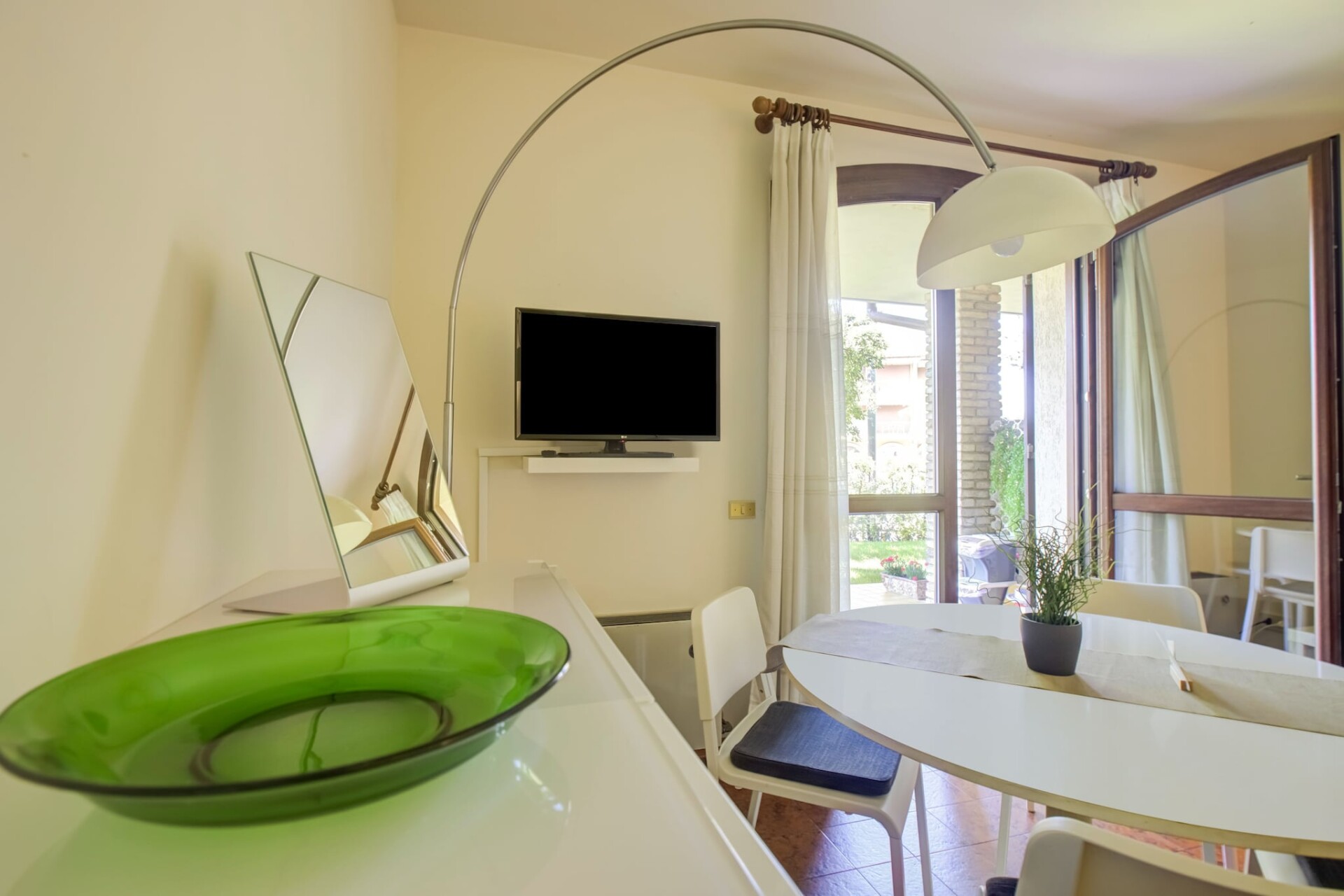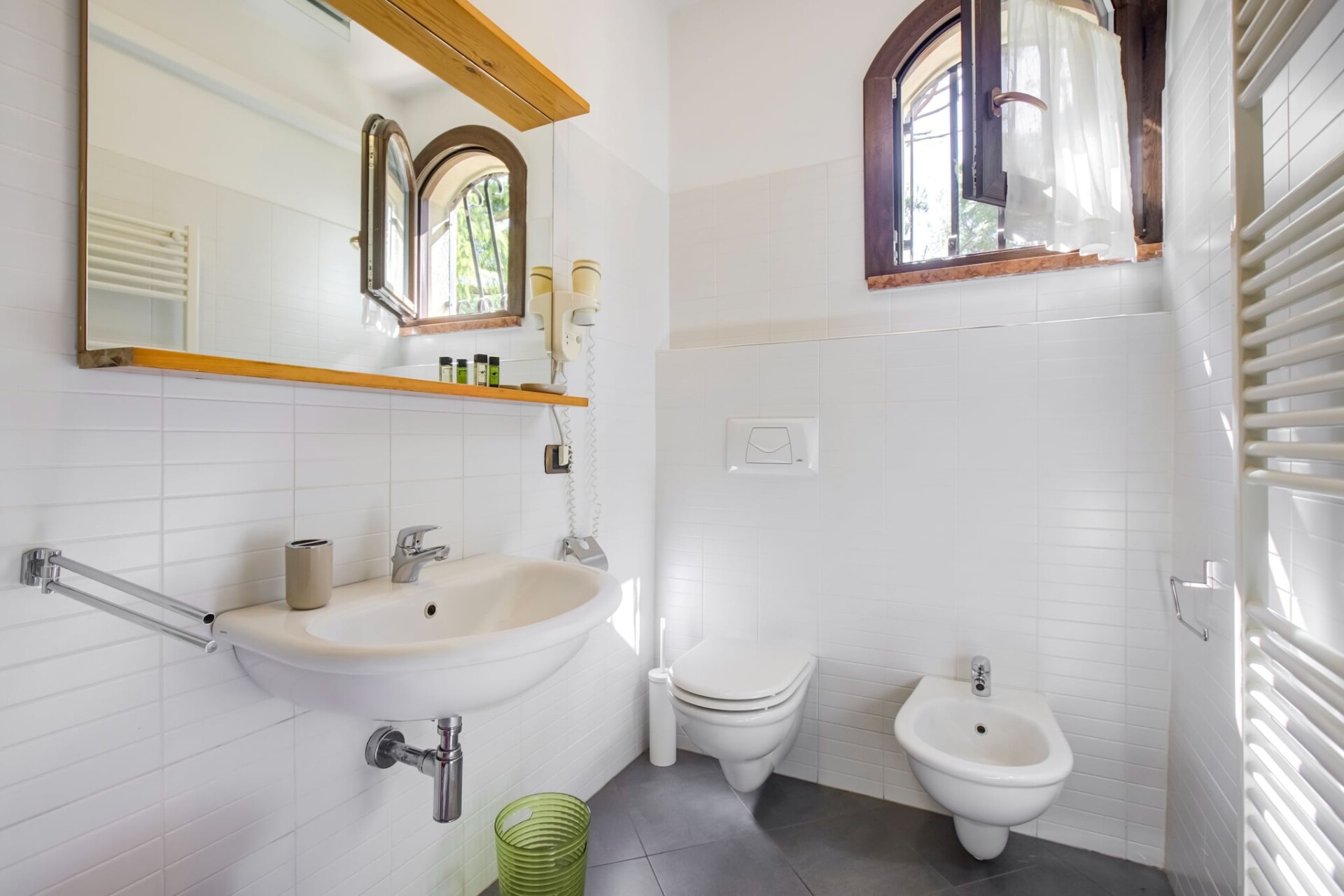 De lichte slaapkamer is ingericht met een tweepersoonsbed en de moderne badkamer is voorzien van een douche, toilet, bidet, wastafel en een haardroger. Airconditioning en verwarming zorgen het hele jaar door voor comfort, terwijl wifi u verbonden houdt.