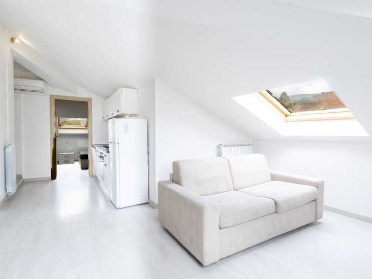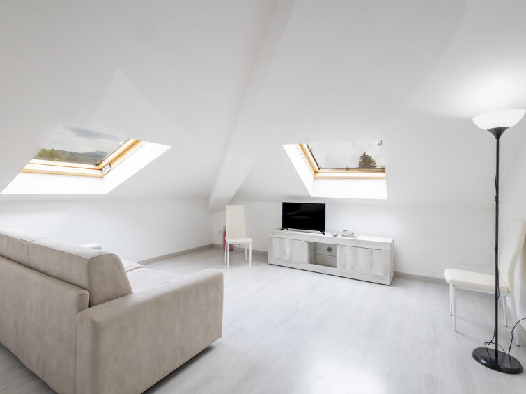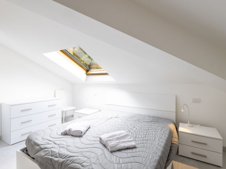 "Zaffiro", appartement 2-kamers 60 m2 op de 2e verdieping. Afgeschuinde daken, doelmatig en gezellig ingericht: woon-/eetkamer, hoogte van het plafond 120 - 280 cm, op 2 verdiepingen met 1 2-pers divanbed (140 cm), eethoek en TV. Uitgang naar het balkon. 1 2-pers. kamer, hoogte van het plafond 120 - 180 cm met douche/bidet/WC. Kookhoek in de hal (4-pits kookplaat, oven, afwasmachine). Aparte WC. Gas-verwarming, air-conditioning. Verwarming alleen beschikbaar van 01.10. tot 30.04. Klein balkon. Uitzicht op het meer. Ter beschikking: wasmachine, haardroger. Parkeerplaats (1 Auto). Rookmelders, brandblusser. IT003095C2XUSIROIC