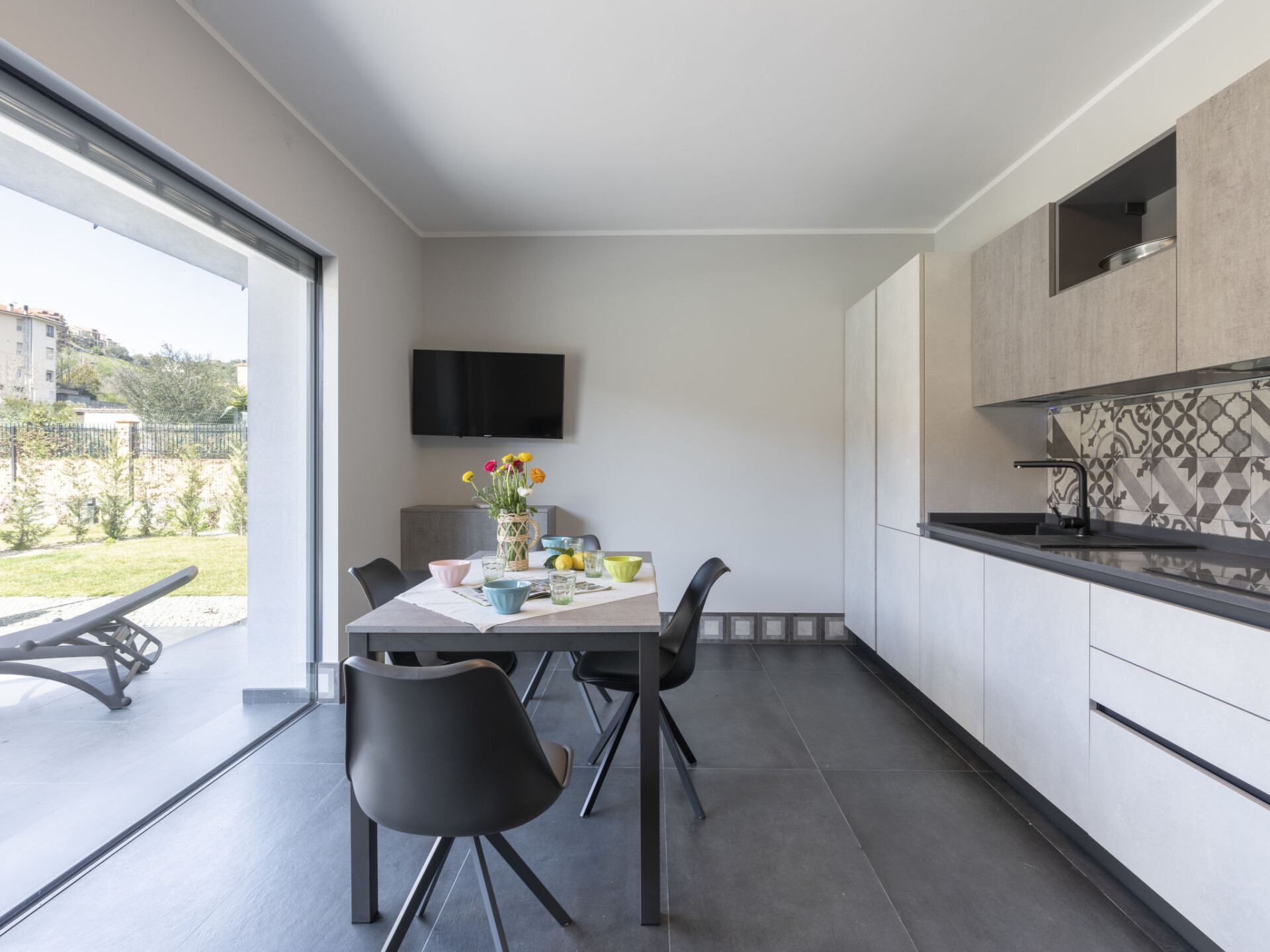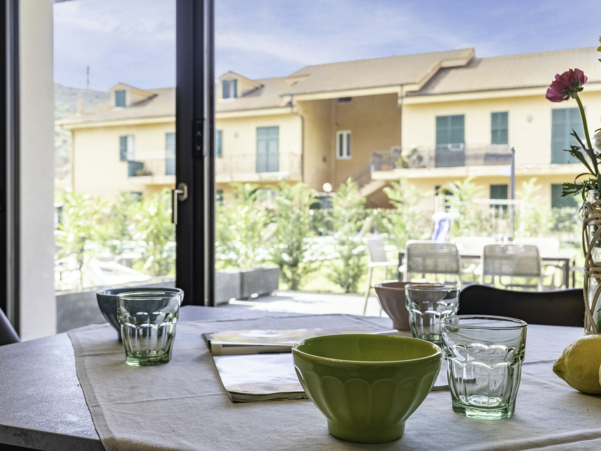 "Rossese", appartement 3-kamers 56 m2, op de begane grond. Licht, modern en smaakvol ingericht: 1 2-pers. kamer. Woon-/eetkamer met schuifdeur met 1 2-pers divanbed (1 x 160 cm, lengte 200 cm), eettafel, Sat-TV en Flatscreen TV. Uitgang naar de tuin, naar het terras. 1 kamer met 1 bed en 1 uitschuifbaar bed. Uitgang naar de tuin. Open keuken (oven, afwasmachine, 4 inductiekookplaten, broodrooster, waterkoker, magnetron, diepvriezer, elektrische koffiemachine) met eettafel. Douche/bidet/WC. Air-conditioning, heteluchtverwarming. Groot terras 20 m2. Terrasmeubelen, ligstoelen. Ter beschikking: strijkijzer, kinderstoel, kinderbed, haardroger. Internet (WiFi, gratis). Parkeerplaats (1 Auto), garage (1 Auto). 1 klein huisdier/hond toegestaan. Rookmelders, brandblusser. IT008031B4VWHBOR2Z
