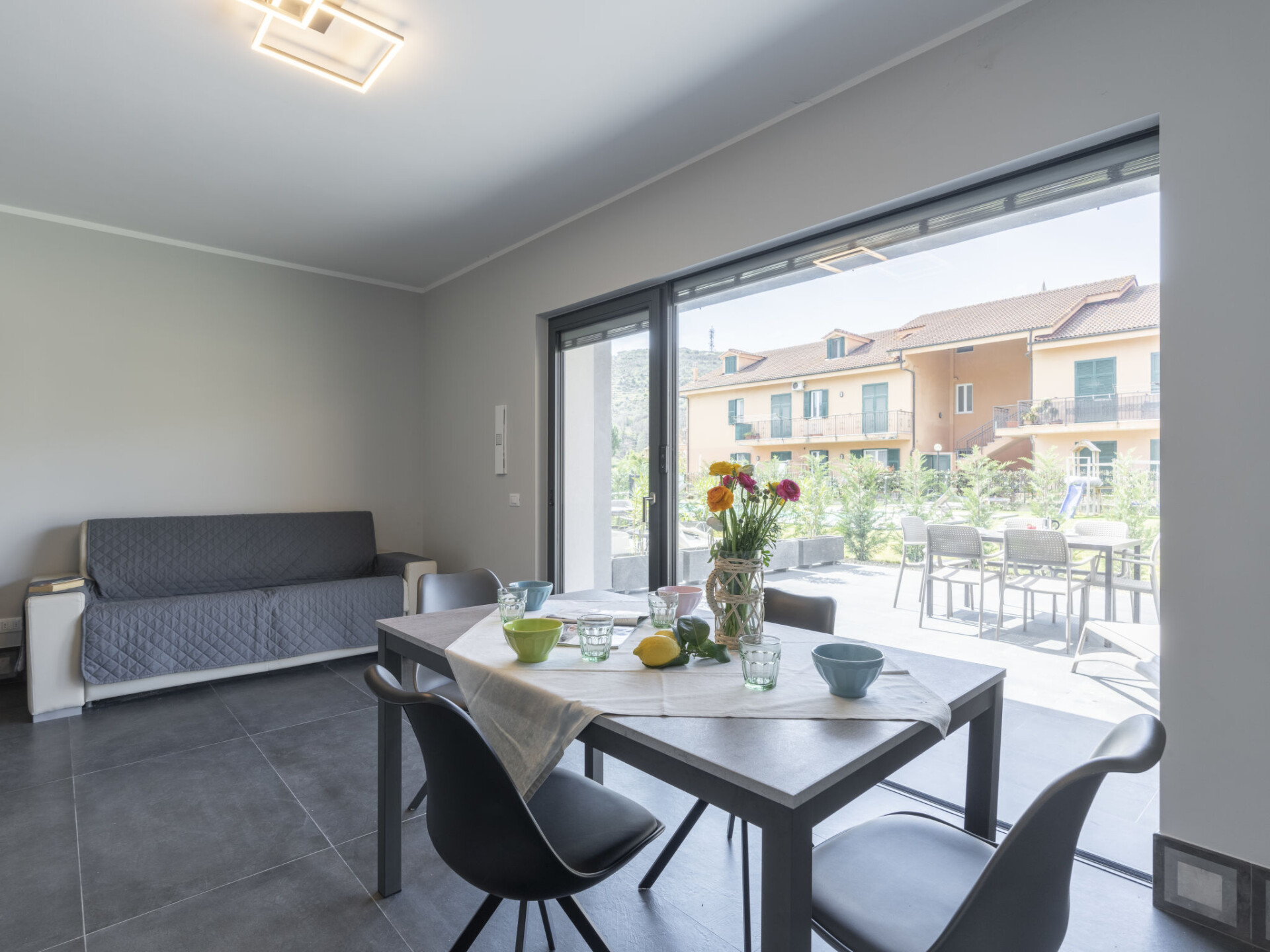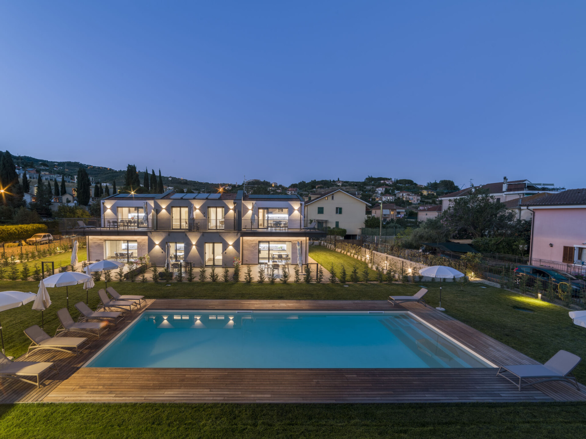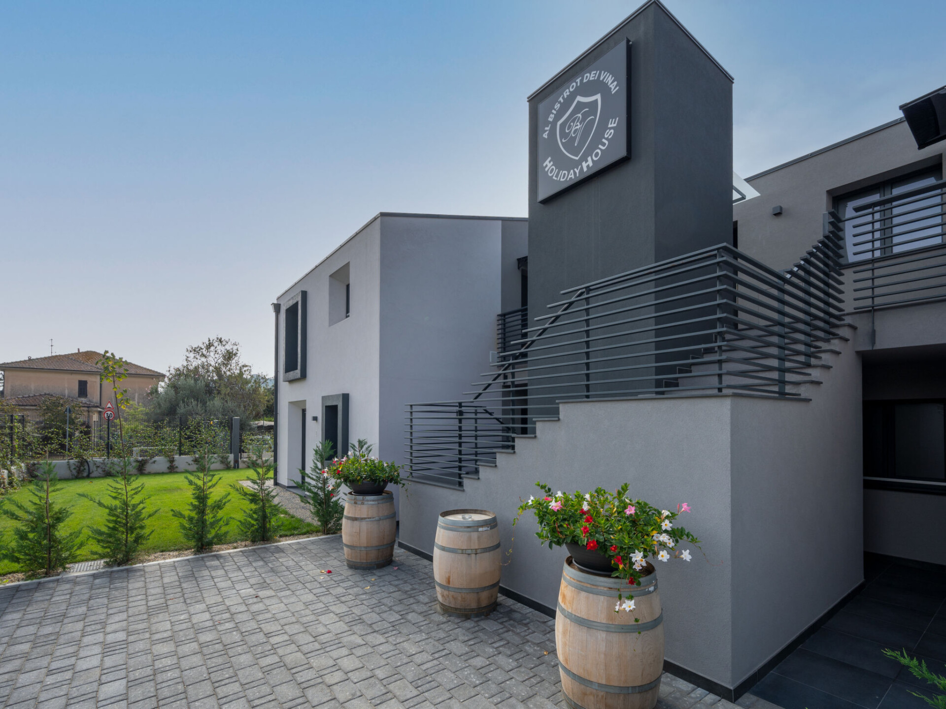 Moderne, zeer comfortabele residentie "Al Bistrot dei Vinai", van 2 verdiepingen, bouwjaar 2022. 6 appartementen in de woning. In de wijk Caramagna, 1.5 km van het centrum van Imperia, 25 km van het centrum van San Remo, 90 km van het centrum van Nizza, zonnige ligging in een woonwijk, 1.5 km van zee. Voor medegebruik: groot, verzorgde tuin 1.000 m2 (omheind) met gazon en bloemen, ligweide, openluchtzwembad (5 x 15 m, 140 cm diepte, seizoensgebonden beschikbaarheid: 12.Apr. - 30.Okt.). Buitendouche, terras, tuinmeubelen, barbecue, kinderspeelplaats (glijbaan), onderhoud zwembad door de eigenaar/tuinman. In het huis: lift, bergruimte voor fietsen, air-conditioning, wasmachine, droger (voor medegebruik). Schoonmaak op verzoek (extra). Berging beschikbaar. Toegangsweg tot aan het huis. Parkeerplaats (voor 6 auto's) op het terrein, gemeenschappelijke garage. Winkel, levensmiddelenwinkel 600 m, supermarkt 1 km, winkelcentrum 1 km, restaurant 2 km, bar 1 km, bakkerij 600 m, café 2 km, fietsverhuur 2 km, bushalte 100 m, treinstation "Imperia Oneglia" 6 km, zandstrand "Borgo Marina" 3 km kiezelstrand "Borgo Prino" 2 km, rotsstrand "Borgo Foce" 3 km, openluchtzwembad 6 km, baai 6 km, meer (zwemmen) "Laghetti di Lecchiore" 7 km. Fietspad 2 km. Attracties in de buurt: Dolcedo Mountainbiken am Monte Faudo 7 km, Küstenradweg von Imperia bis Ospedaletti 2 km, Valloria das Dorf mit 150 bemalten Türen 8 km, Triora Hexendorf 45 km, Monte Carlo 75 km, San Remo 25 km. Wandelgebied Monte Faudo (1149 m) Mountainbike Trails. Auto noodzakelijk. Baby uitrusting (incl.). Vergelijkbare accommodaties kunnen worden geboekt.