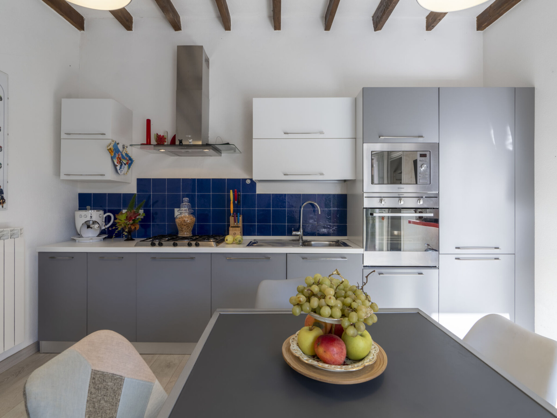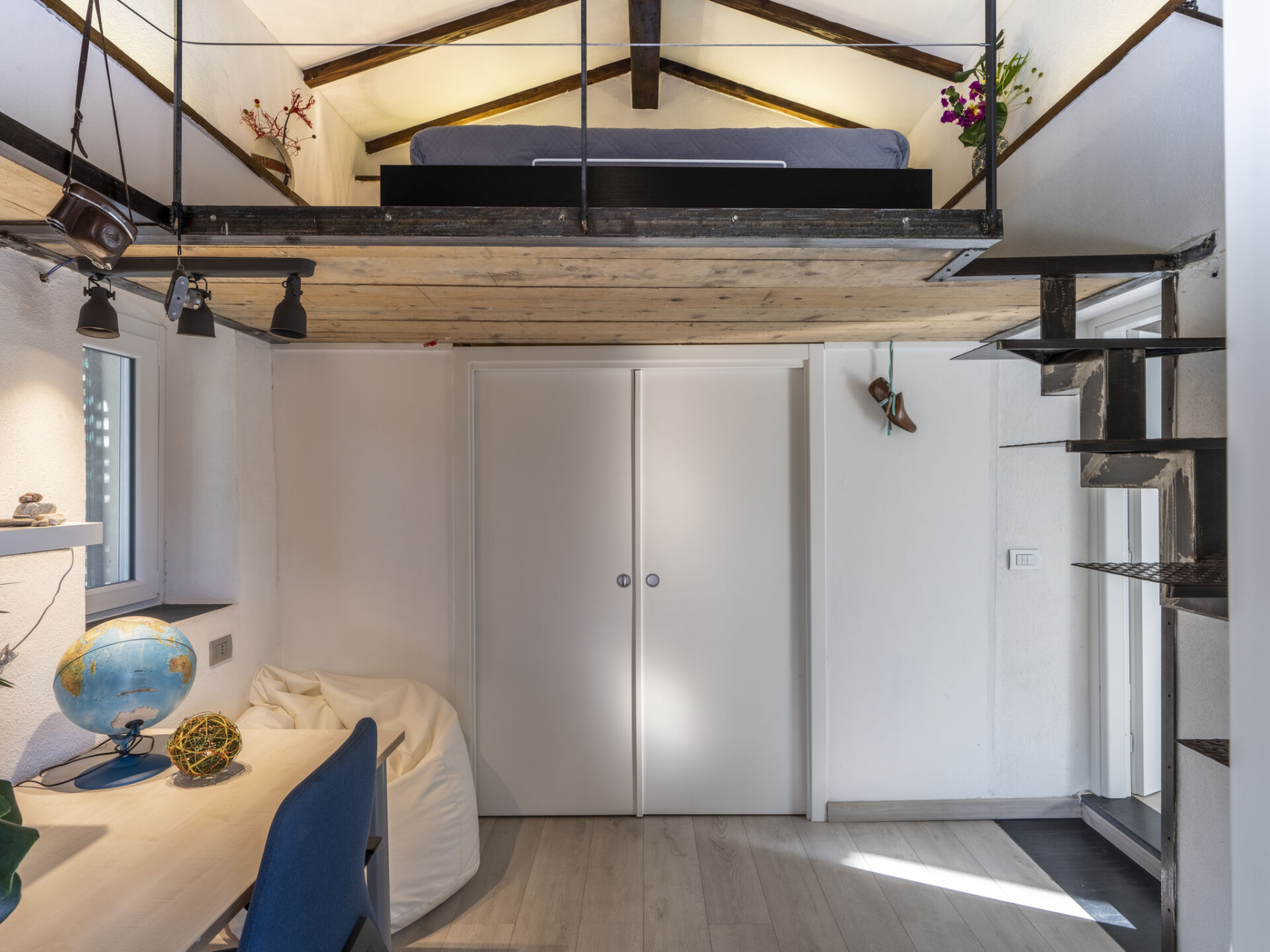 "Villa Miró", huis 2-kamers 60 m2 op 2 verdiepingen. Gerenoveerd in 2015, modern en stijlvol ingericht: woon-/slaapkamer met 1 2-pers divanbed (140 cm), eettafel en stereo-installatie. Uitgang naar het terras. Open keuken (oven, afwasmachine, 5 kookpitten (vlammen), broodrooster, magnetron, diepvriezer, elektrische koffiemachine). Douche/WC. Gas-verwarming, air-conditioning. Bovenverdieping: (trap zonder leuning) open galerij met afgeschuinde daken met Kleedkamer met 1 2-pers bed (160 cm). Parketvloeren. Groot terras gedeeltelijk overdekt. Terrasmeubelen, barbecue, ligstoelen (4). Ter beschikking: wasmachine, kluis, strijkijzer, klamboe, kinderstoel, kinderbed. Internet (Internet (WiFi), gratis). Maximaal 3 huisdieren/honden toegestaan. IT008022B55QJGX93C