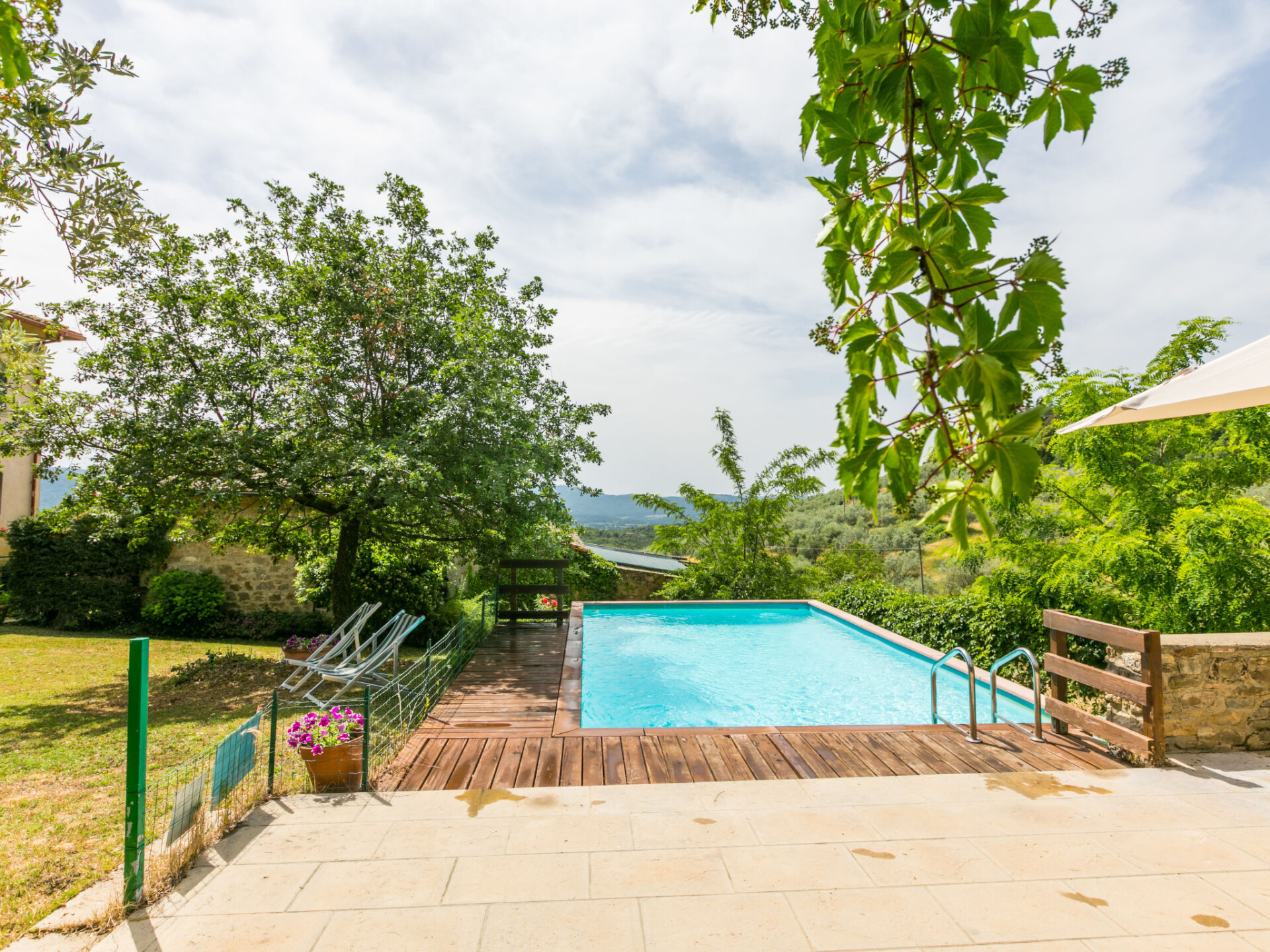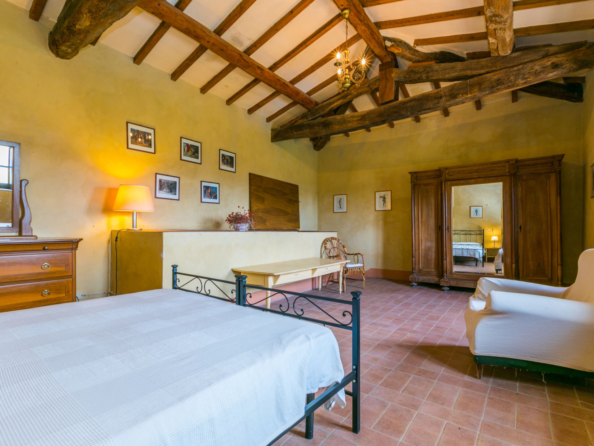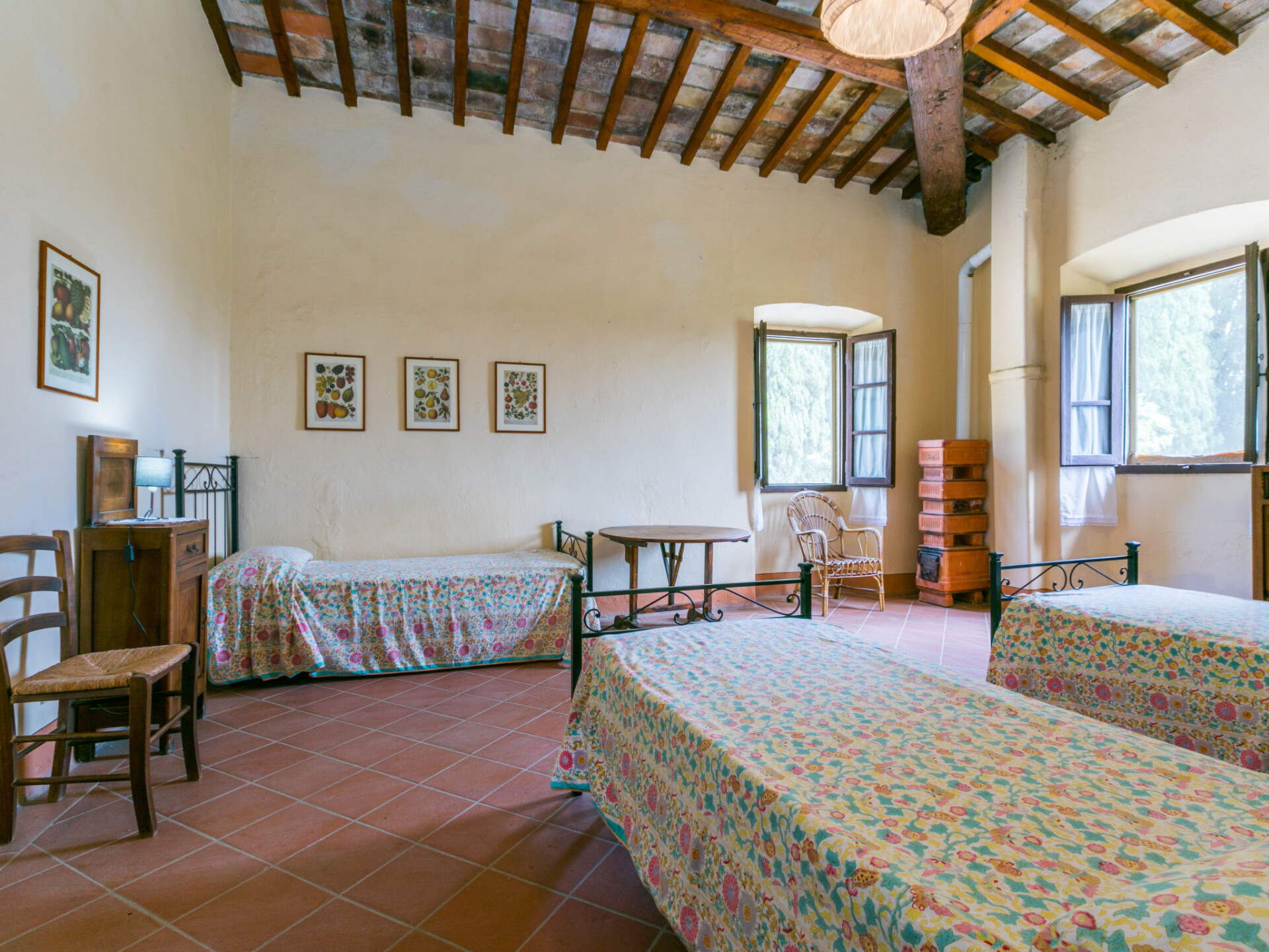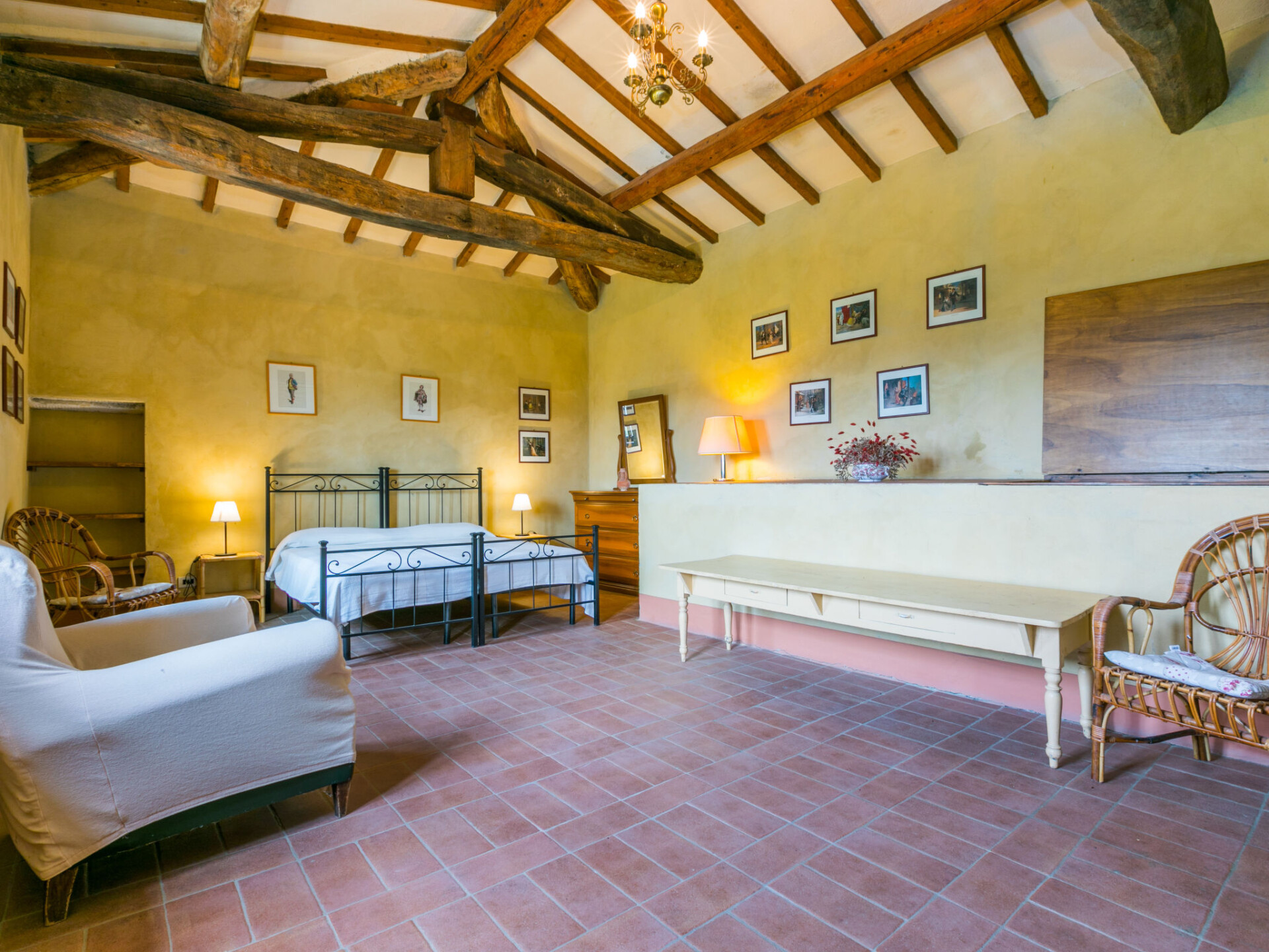 Landhuis "Buca dei Merli", uit de 17e eeuw. 2 km van het centrum van Pergine Valdarno, 4 km van het centrum van Laterina, 8 km van het centrum van Levane, te midden van groen. Voor alleengebruik: terrein 200 m2 (omheind), wilde tuin, weide, openluchtzwembad (verhoogd) (9 x 4 m, seizoensgebonden beschikbaarheid: 30.Mei. - 19.Sep.). Toegangsweg (3 km onverharde weg). Parkeerplaats op het terrein. Winkel 4 km, supermarkt 8 km, bushalte 2 km. Attracties in de buurt: Castello di Montozzi, Arezzo 20 km, Cortona 45 km, Firenze 65 km. Auto noodzakelijk.