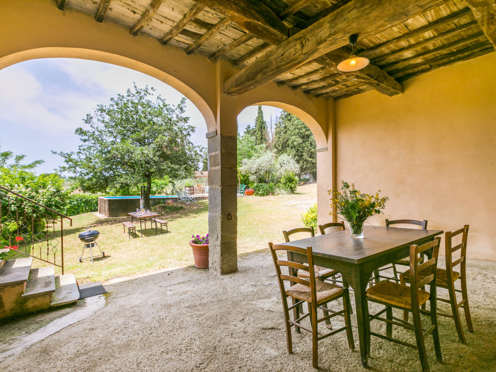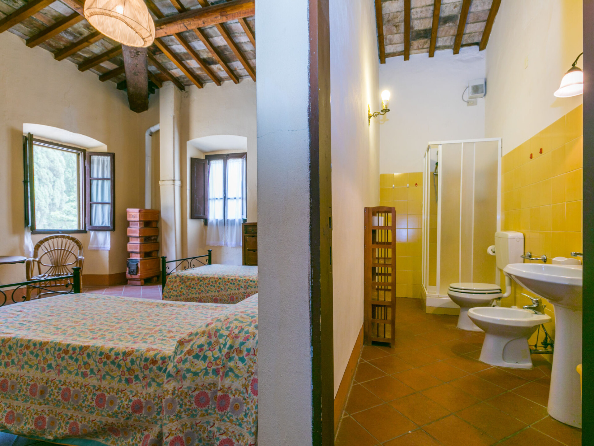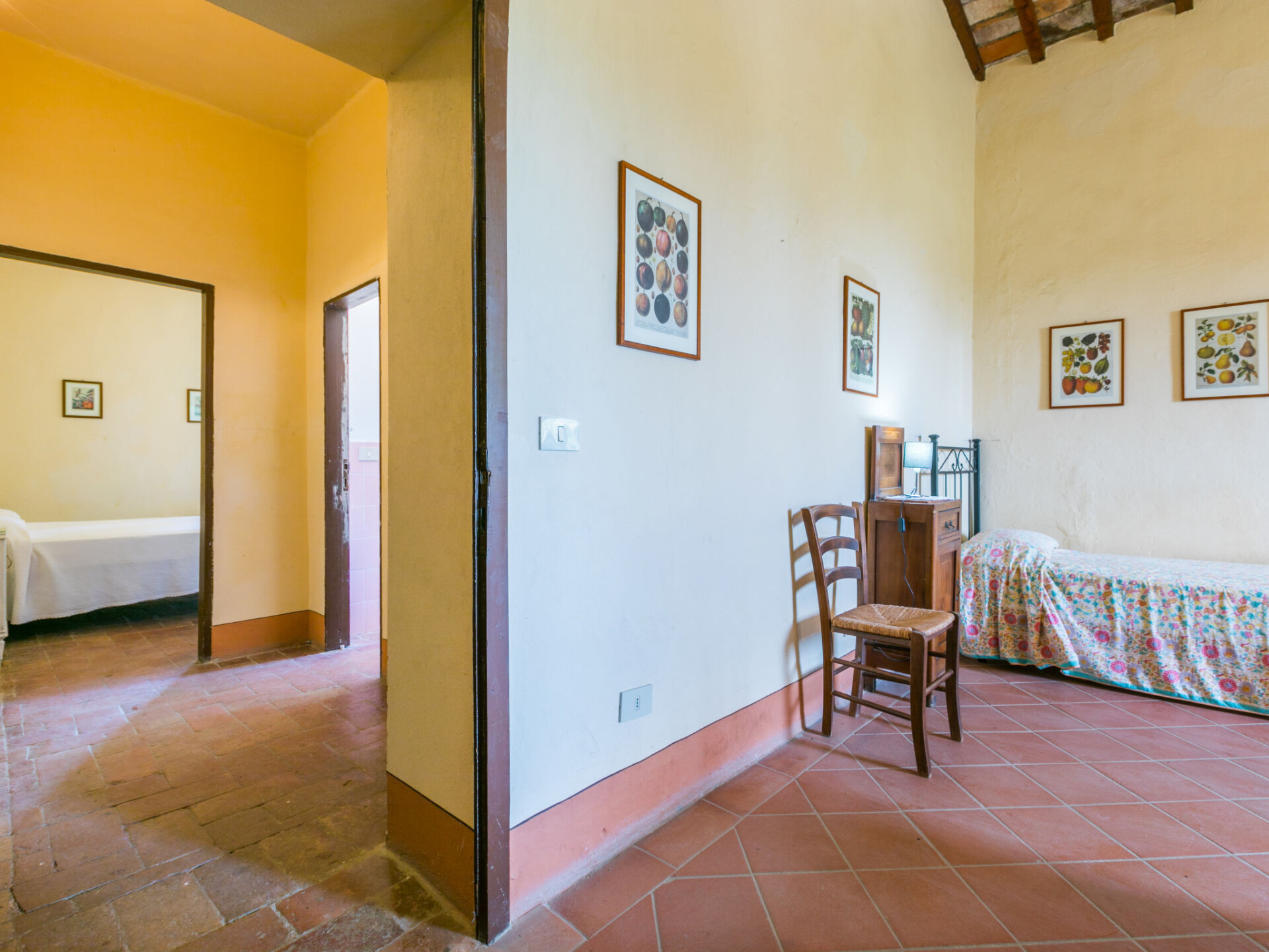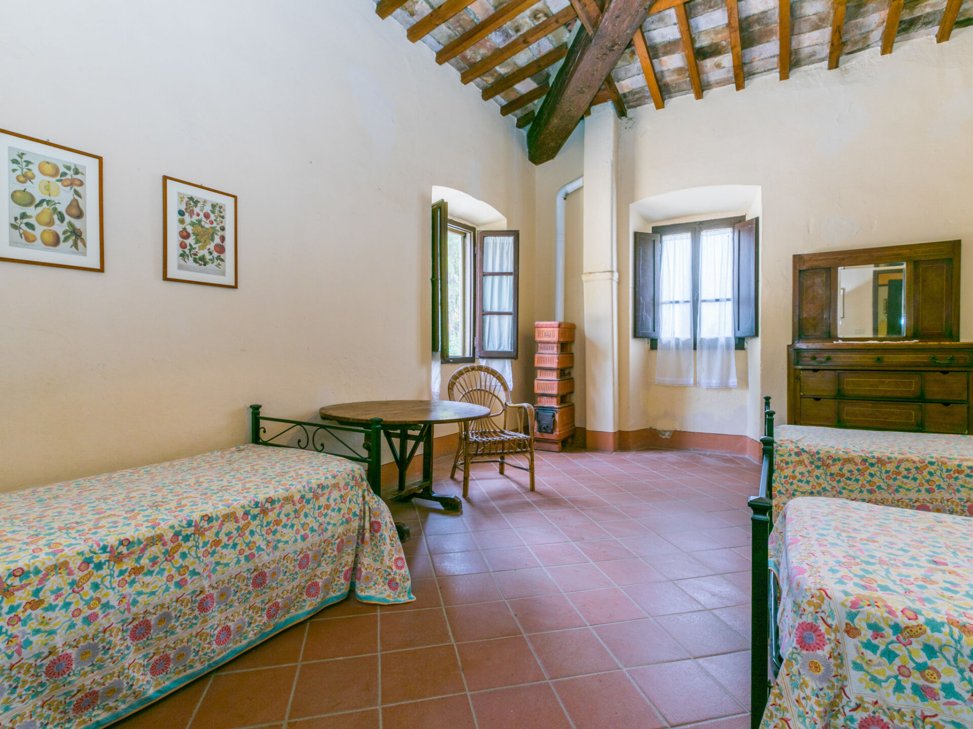 Landhuis "Buca dei Merli", uit de 17e eeuw. 2 km van het centrum van Pergine Valdarno, 4 km van het centrum van Laterina, 8 km van het centrum van Levane, te midden van groen. Voor alleengebruik: terrein 200 m2 (omheind), wilde tuin, weide, openluchtzwembad (verhoogd) (9 x 4 m, seizoensgebonden beschikbaarheid: 30.Mei. - 19.Sep.). Toegangsweg (3 km onverharde weg). Parkeerplaats op het terrein. Winkel 4 km, supermarkt 8 km, bushalte 2 km. Attracties in de buurt: Castello di Montozzi, Arezzo 20 km, Cortona 45 km, Firenze 65 km. Auto noodzakelijk.