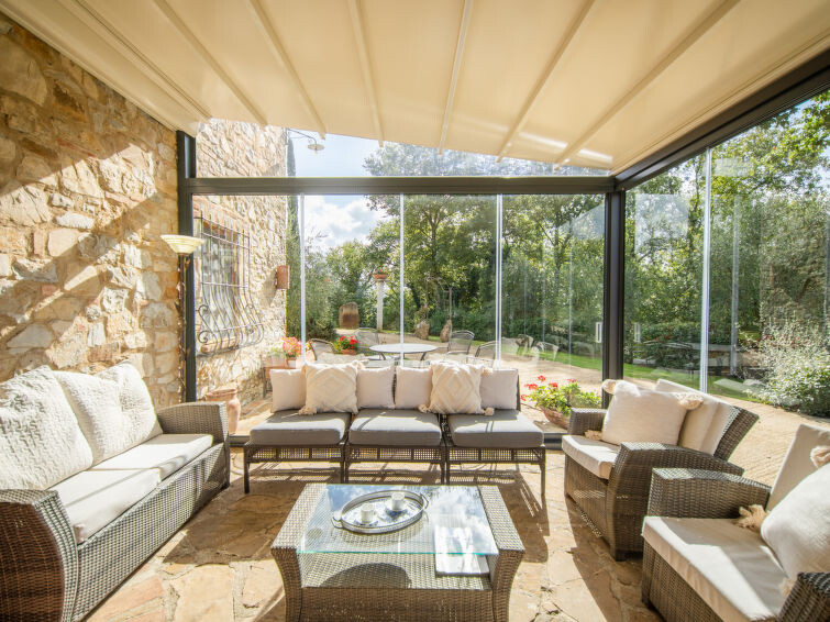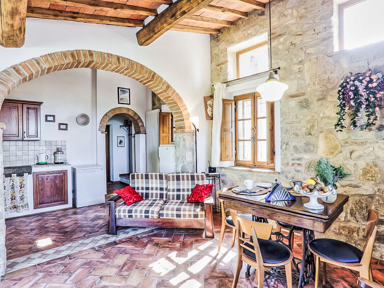 Casale il Poggino, gelegen in het hart van de Chianti Classico, bestaat uit twee eenheden, de boerderij die is verdeeld in drie appartementen (voor 14 personen) die met elkaar communiceren vanaf de buitenkant en het bijgebouw (voor 02 personen). Landhuis "Casale Il Poggino", 400 m boven zeeniveau. 2 huizen in de woning. 5.8 km van het centrum van Castellina in Chianti, 26 km van het centrum van Siena, 42 km van het centrum van Firenze, geïsoleerde, rustige, zonnige ligging op een heuvel, te midden van groen. Voor alleengebruik: tuin 1 ha (omheind), openluchtzwembad omheind (12 x 6 m, 120 - 240 cm diepte, seizoensgebonden beschikbaarheid: 01.Apr. - 31.Okt.). Buitendouche, tafeltennis, prieel, tuinmeubelen, barbecue. In het complex: fitnessruimte, bergruimte voor fietsen, Verwarming ter plaatse te betalen, verwarming alleen beschikbaar van 01.Nov. - 07.Apr., fietsverhuur. Beschikbaar: fietsen (4). Kok op verzoek (extra). Toegangsweg tot aan het huis (1.5 km onverharde weg). Overdekte parkeerplaats op het terrein. Levensmiddelenwinkel 5.8 km, supermarkt 5.8 km, restaurant 5.8 km, bushalte 3.5 km, thermaalbad "Rapolano Terme" 50 km. Attracties in de buurt: San Donato in Poggio 16 km, Radda in Chianti 16 km, Monteriggioni 18 km, Gaiole in Chianti 19 km, Greve in Chianti 25 km, San Gimignano 47 km. Gesloten residentie met een elektrische deur. Videobewaking in de buitenruimte.