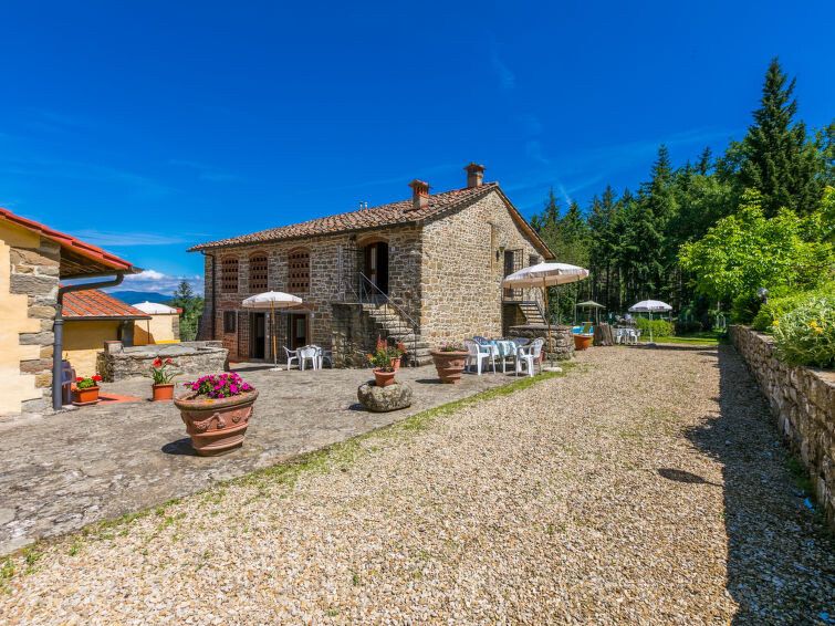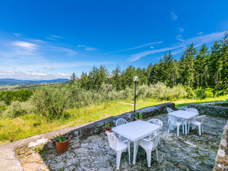 Zeer panoramisch gelegen boven de vallei, 's nachts zijn zelfs de lichten van Florence zichtbaar. Elke 30 minuten vertrekt een trein naar Florence vanuit Pontassieve, waar ook een gratis parkeerterrein is. Het zwembad is omheind, ideaal voor families. Alle appartementen beschikken over een buitenruimte met terrasmeubelen in de tuin. In het eerste gebouw wonen de eigenaren en in het tweede zijn 4 zelfstandige appartementen gerealiseerd. De gebouwen staan midden op een stenen plein, omringd door een bos met sparren en kastanje- en pijnbomen. Hier bevinden zich talrijke wandel- en fietspaden (mountainbike). Zeer oud landhuis "Certina", 510 m boven zeeniveau, gerenoveerd, omgeven door bomen. 13 km van het centrum van Pontassieve, 30 km van het centrum van Firenze, rustige, verhoogde ligging op een heuvel, te midden van groen. Voor medegebruik: terrein 33 ha, tuin, openluchtzwembad omheind (6 x 12 m, 130 - 160 cm diepte, seizoensgebonden beschikbaarheid: 06.Mei. - 23.Sep.) met trap. Buitendouche, barbecue. Voor alleengebruik: terras, tuinmeubelen. In het huis: centrale verwarming, wasmachine (voor medegebruik), Verwarming ter plaatse te betalen, verwarming alleen beschikbaar van 01.Nov. - 07.Apr.. Wissel van linnengoed 1 maal per week. Schoonmaak op verzoek (extra). Toegangsweg tot aan het huis (1 km onverharde weg). Parkeerplaats bij het huis. Winkel 5 km, restaurant 7 km, bushalte 4.7 km, treinstation "Pontassieve" 13 km.