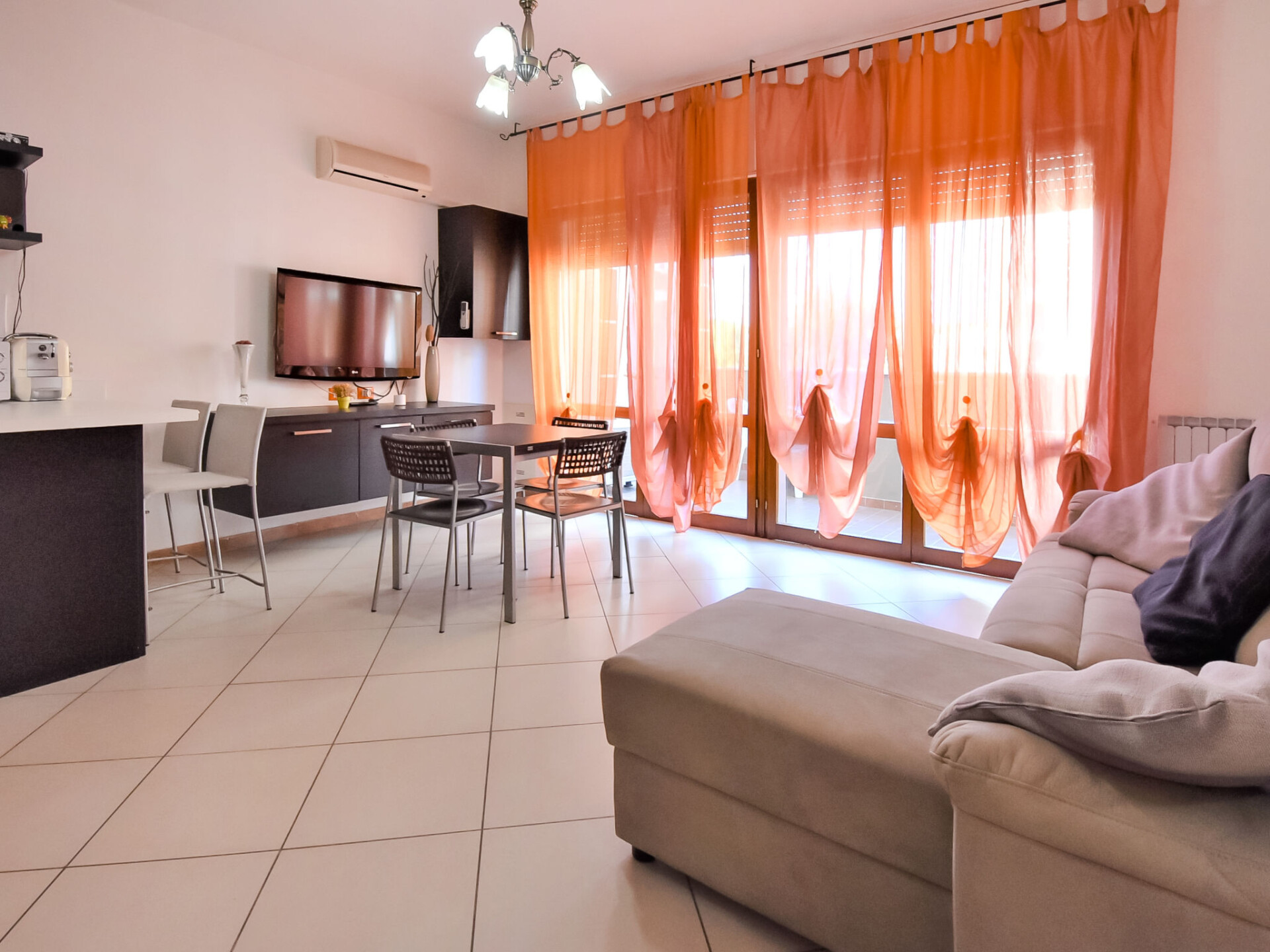 Appartement 2-kamers 45 m2 op de 2e verdieping. Licht, comfortabel en modern ingericht: hal. Woon-/eetkamer met 1 2-pers divanbed en TV (Flatscreen TV). Uitgang naar het terras. 1 2-pers. kamer. Kookhoek (4-pits kookplaat, oven, magnetron, diepvriezer, elektrische koffiemachine). Douche/bidet/WC. Air-conditioning. Geen verwarmingsmogelijkheid. Terras. Terrasmeubelen. Ter beschikking: wasmachine, kinderstoel, kinderbed (extra). Internet (WiFi, gratis). Niet rokers woning. Maximaal 1 huisdier/hond toegestaan. Geen lift. IT029040B4TE8AEKOR