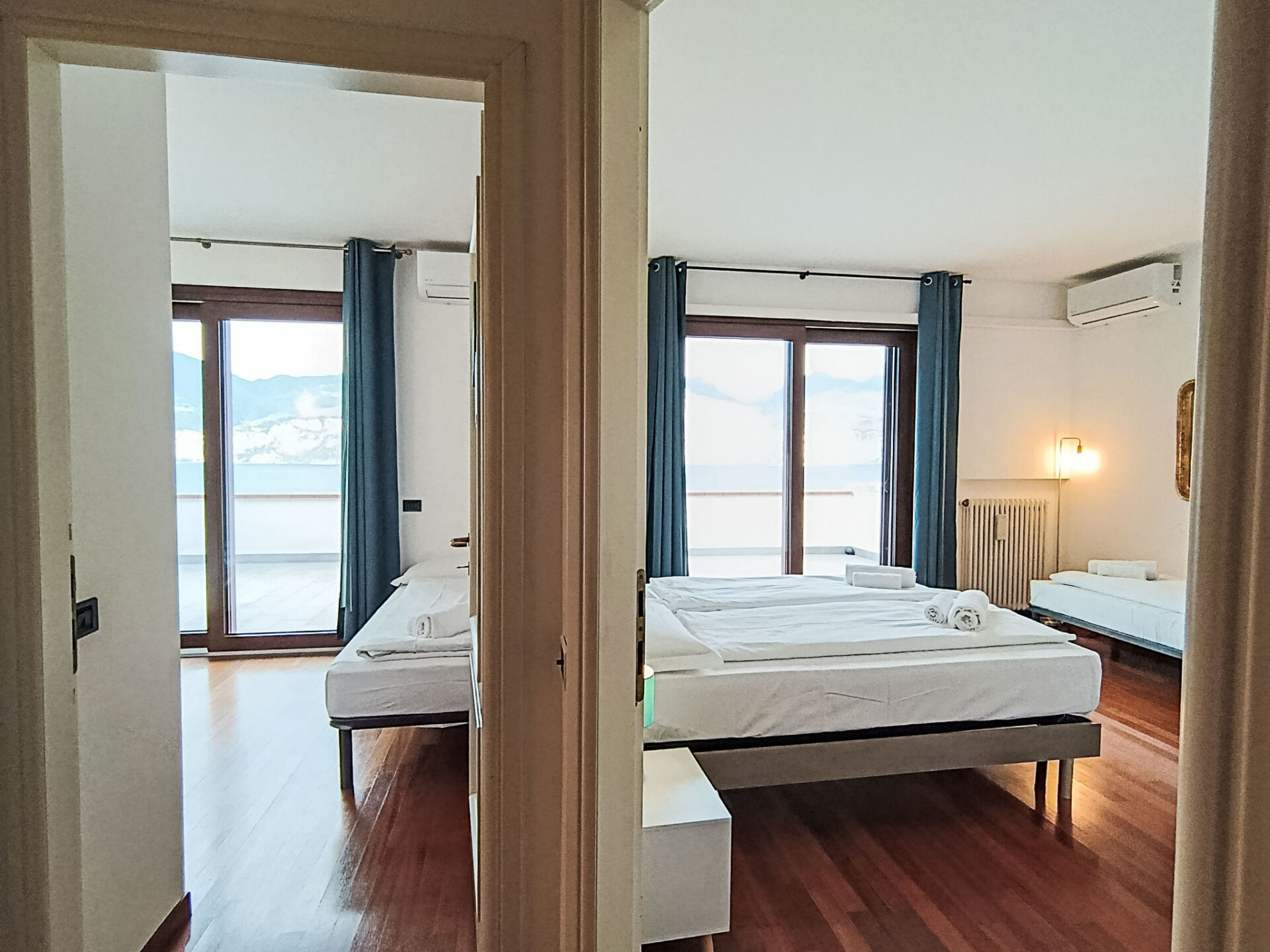 "Manuela", villa 4-kamers 200 m2 op 2 verdiepingen, op de begane grond, op het zuidoosten gelegen. Ruim en licht, comfortabel en gezellig ingericht: woonkamer met zwedenkachel (alleen decoratie), Digitale TV. Uitgang naar de tuin, naar de zitplaats in de tuin, op het zuiden en op het oosten. Slaapnis met 1 2-pers divanbed. Uitgang naar de tuin, naar de zitplaats in de tuin. Groot keuken (oven, afwasmachine, Gasfornuis, 5 kookpitten (vlammen), waterkoker, magnetron, diepvriezer, elektrische koffiemachine) met bar, eettafel. Uitgang naar de tuin, naar de zitplaats in de tuin. Douche/bidet/WC. Verwarming. Bovenverdieping: 1 2-pers. kamer met 1 bed en 1 2-pers bed. Uitgang naar het terras. 1 2-pers. kamer met 1 bed en 1 2-pers bed. Uitgang naar het terras. Bad/douche/bidet/WC. Verwarming, air-conditioning. Houten vloeren. Groot terras, overdekt, ruime zithoek in de tuin 60 m2, overdekt, groot tuin 250 m2 en op het zuidoosten gelegen. Terrasmeubelen, barbecue, ligstoelen (8), zitgelegenheid. Zeer mooi panoramazicht op het meer en de bergen. Ter beschikking: wasmachine, strijkijzer, haardroger. Internet (WiFi, gratis). Parkeerplaats (overdekt, 1 Auto). Maximaal 1 huisdier/hond toegestaan. Privé ingang, rookmelders, brandblusser, geen lift. IT023014B4Q8LFUSS