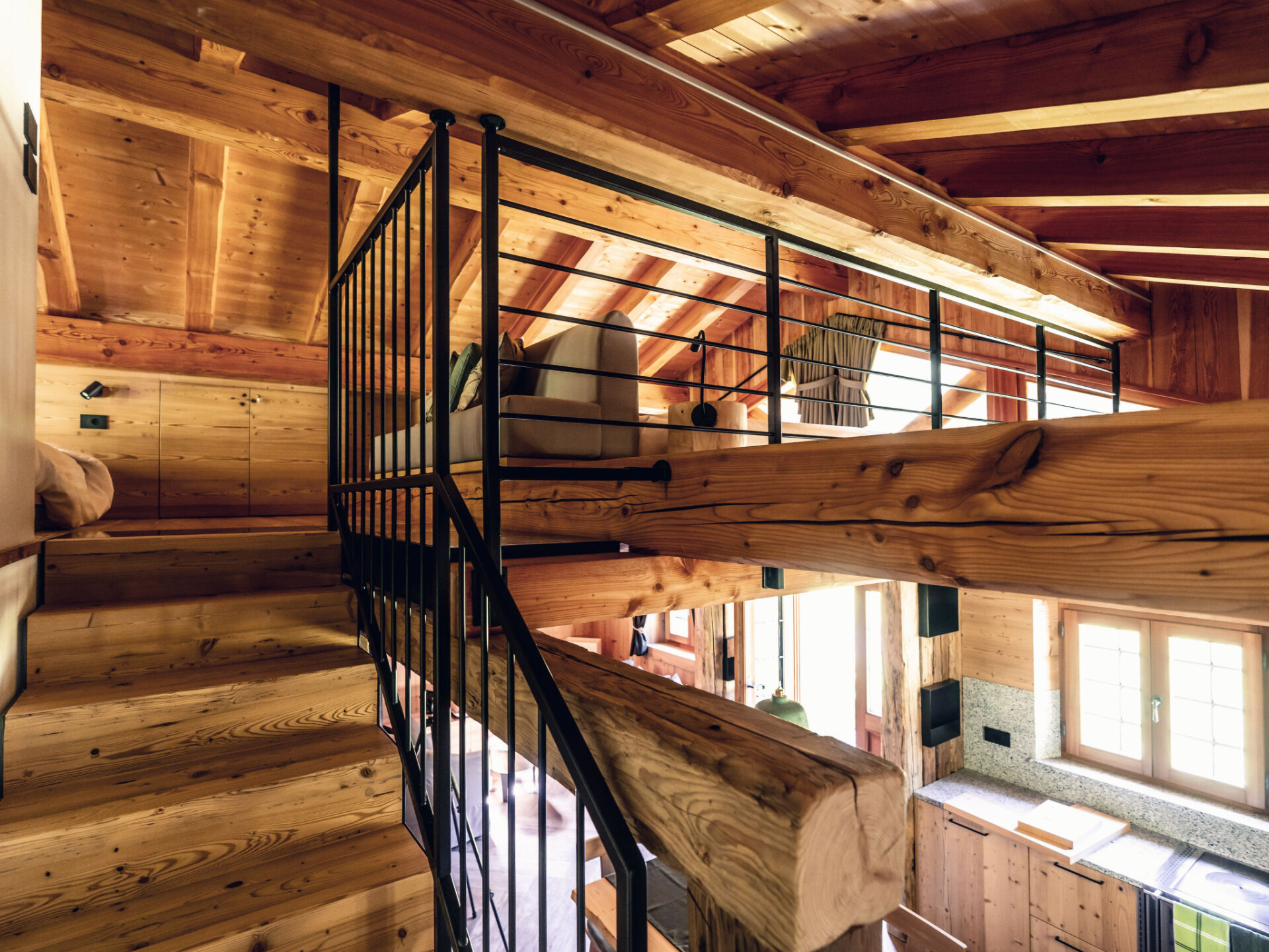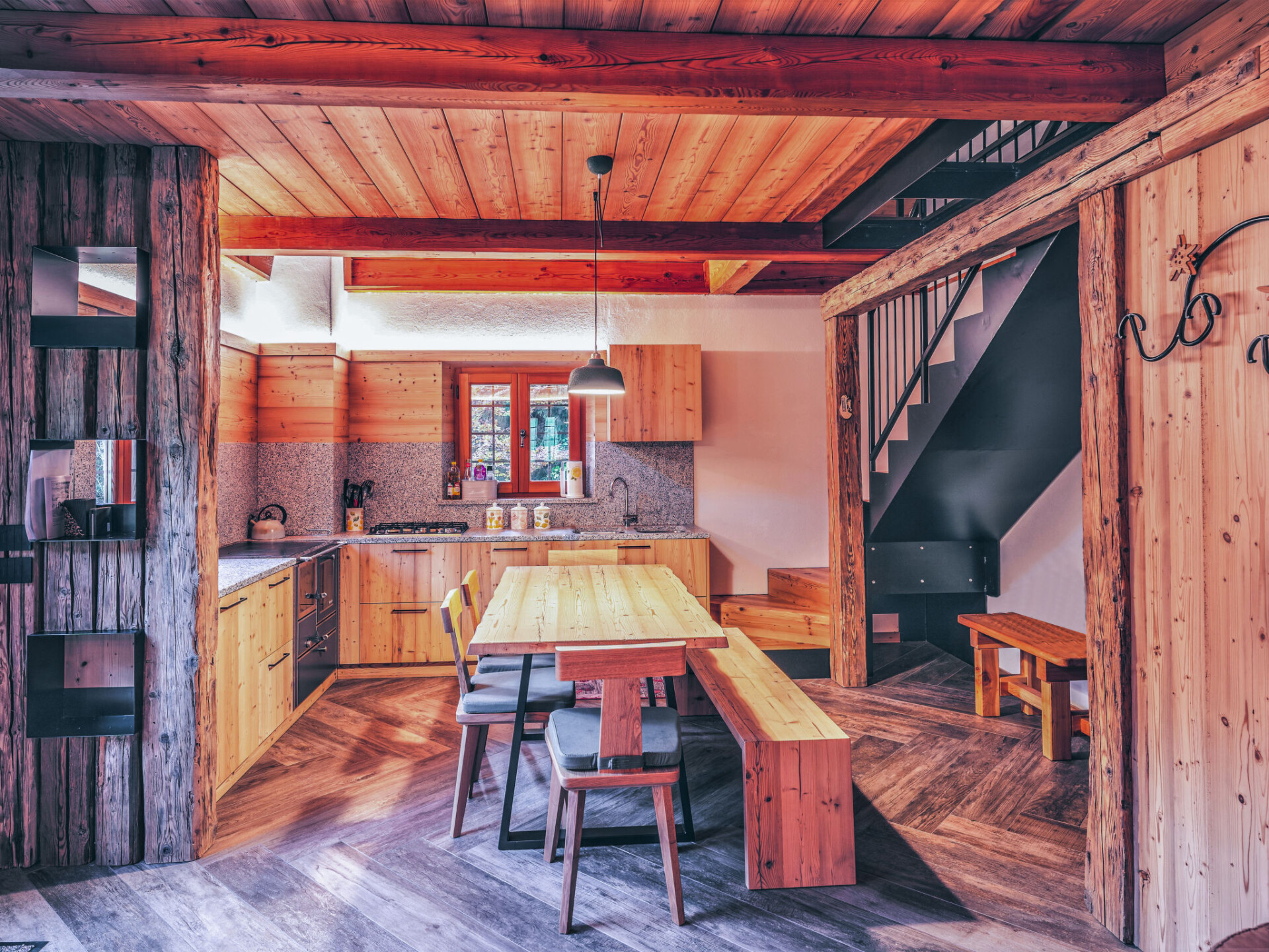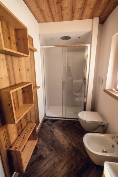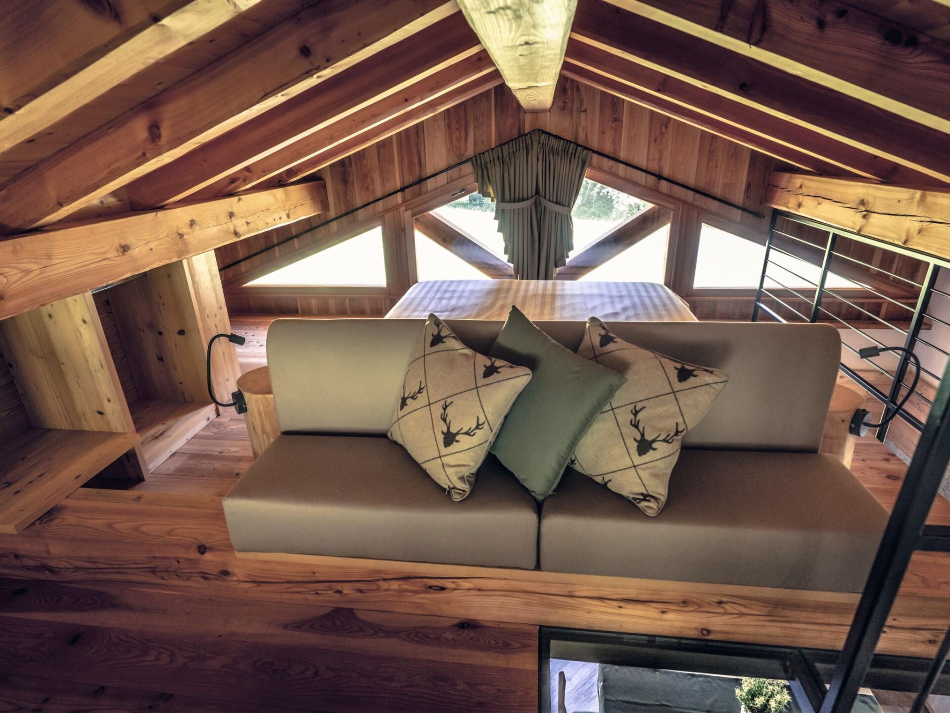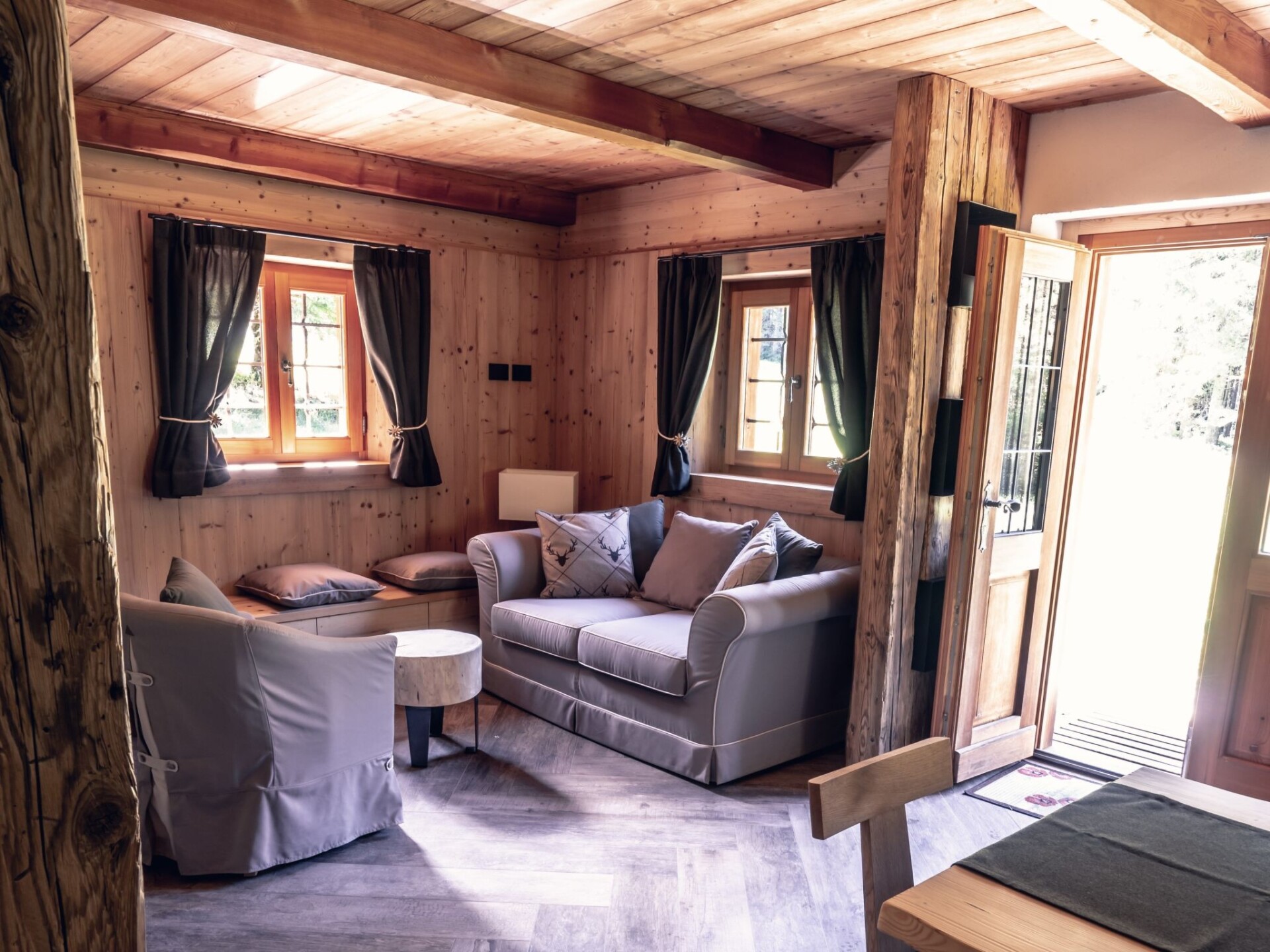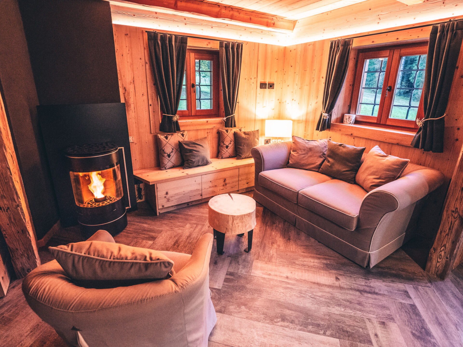 Chalet 3-kamers 74 m2. Ruim en licht, gedeeltelijk afgeschuinde daken, modern en met veel hout ingericht: woon-/eetkamer met eettafel en Sat-TV (Flatscreen TV), houtkachel. Uitgang naar de tuin. 1 2-pers. kamer. Kookhoek (oven, 4 kookpitten (vlammen), broodrooster, waterkoker) met houtkachel. Douche/bidet/WC. Houtverwarming. Bovenverdieping: groot, open galerij met afgeschuinde daken met 1 2-pers bed (140 cm), 1 2-pers bed (220 cm). Parketvloeren. Zeer mooi panoramazicht op de bergen, het dal, de tuin, het bos en Dolomiti di Brenta. Ter beschikking: haardroger, haardhout (gratis). Geschikt voor families. Niet rokers woning. Maximaal 1 huisdier/hond toegestaan. Privé ingang, brandblusser. IT022228C24YGAOYCC