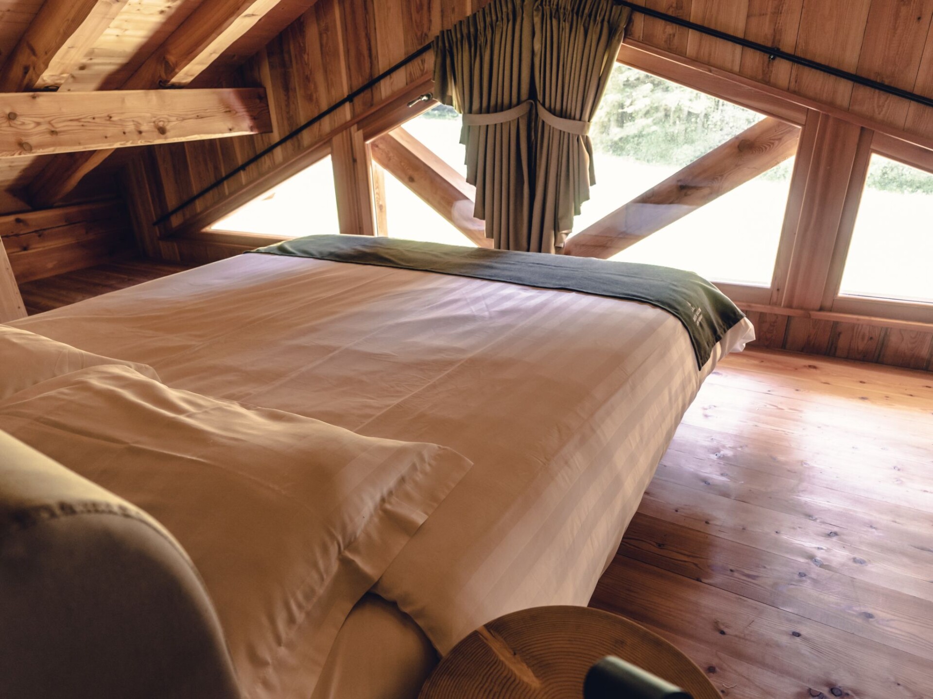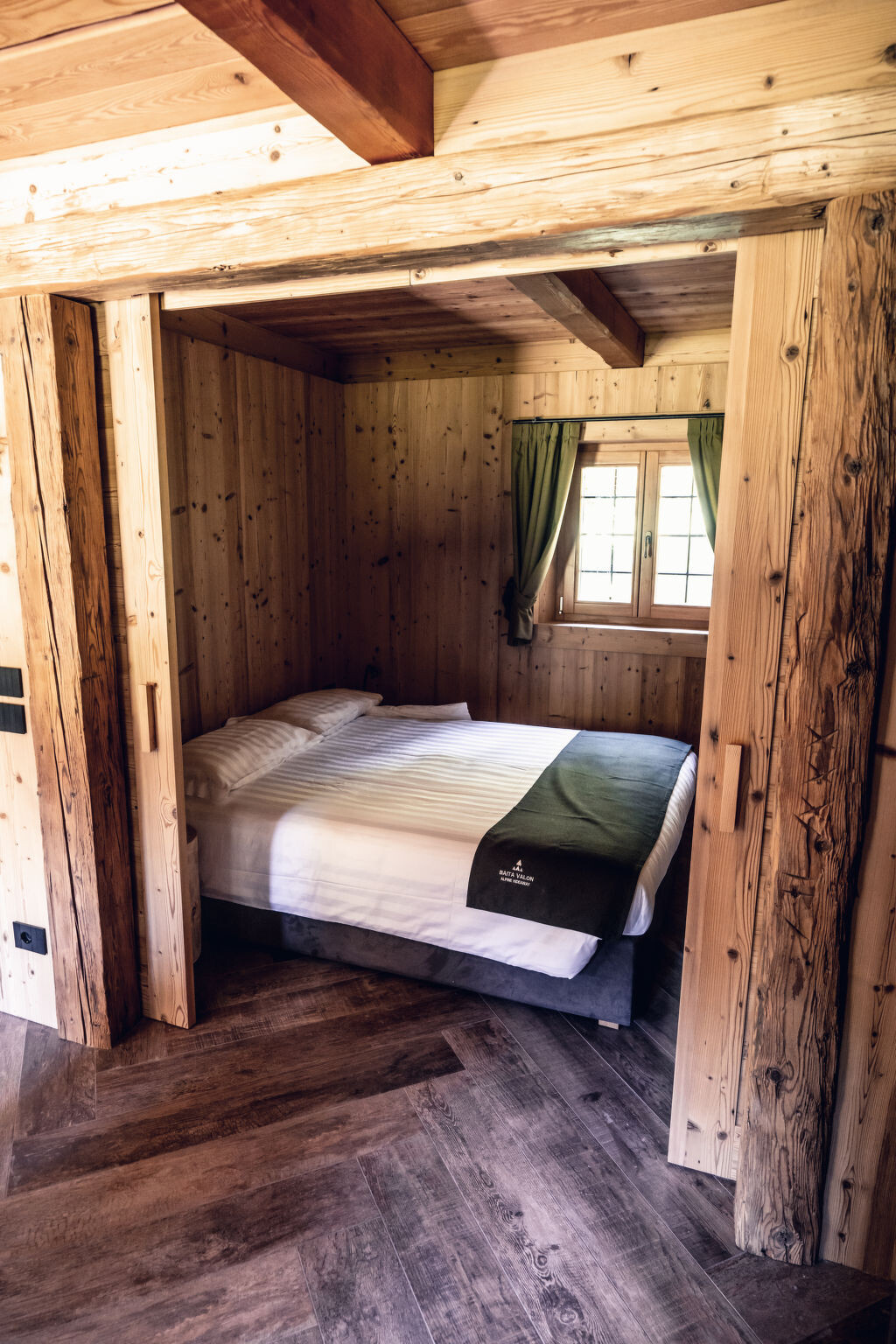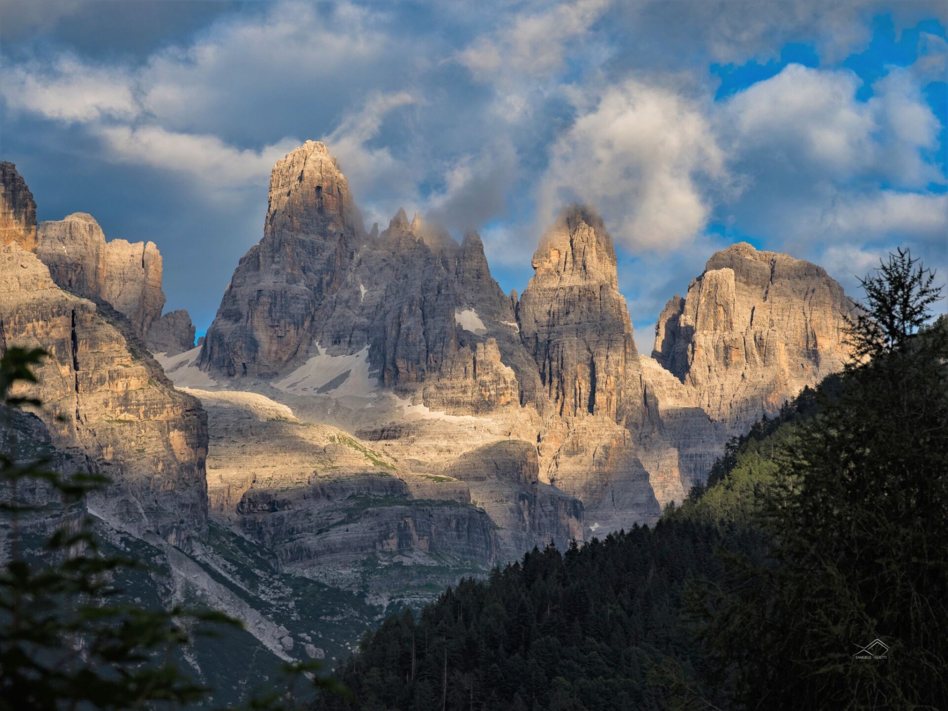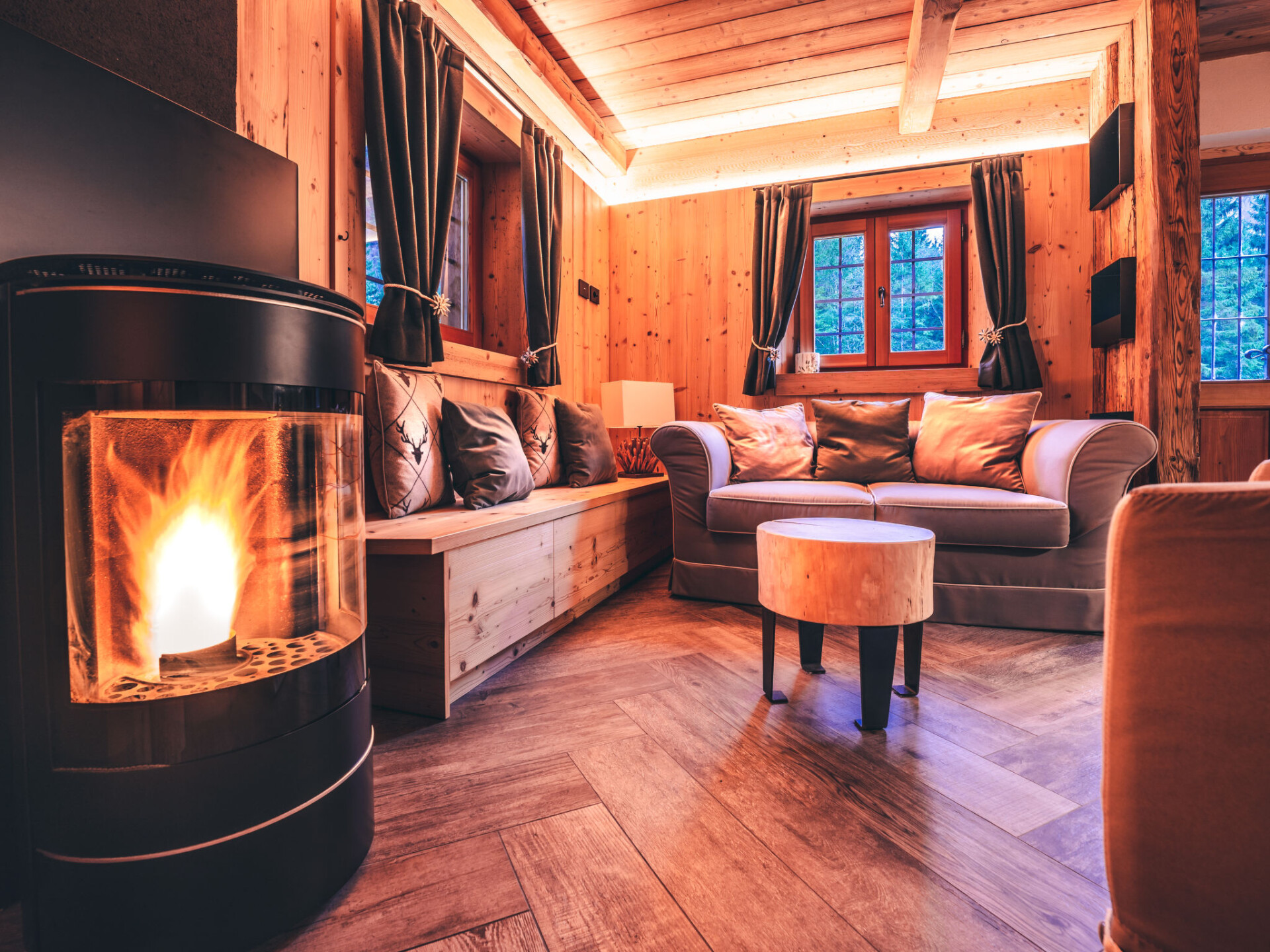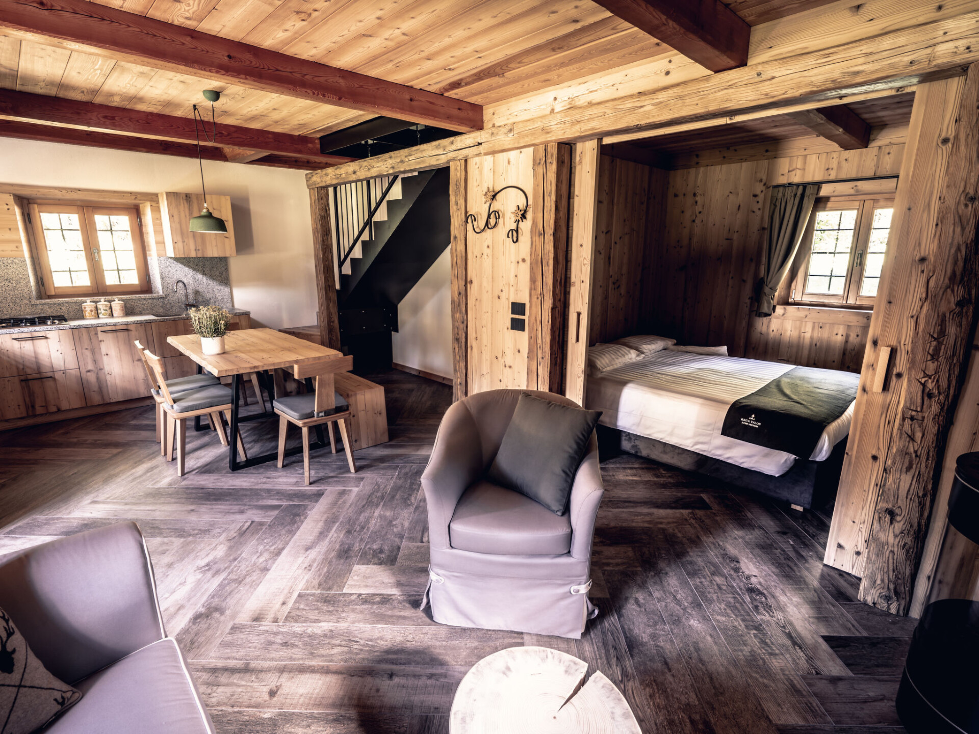 Chalet 3-kamers 74 m2. Ruim en licht, gedeeltelijk afgeschuinde daken, modern en met veel hout ingericht: woon-/eetkamer met eettafel en Sat-TV (Flatscreen TV), houtkachel. Uitgang naar de tuin. 1 2-pers. kamer. Kookhoek (oven, 4 kookpitten (vlammen), broodrooster, waterkoker) met houtkachel. Douche/bidet/WC. Houtverwarming. Bovenverdieping: groot, open galerij met afgeschuinde daken met 1 2-pers bed (140 cm), 1 2-pers bed (220 cm). Parketvloeren. Zeer mooi panoramazicht op de bergen, het dal, de tuin, het bos en Dolomiti di Brenta. Ter beschikking: haardroger, haardhout (gratis). Geschikt voor families. Niet rokers woning. Maximaal 1 huisdier/hond toegestaan. Privé ingang, brandblusser. IT022228C24YGAOYCC