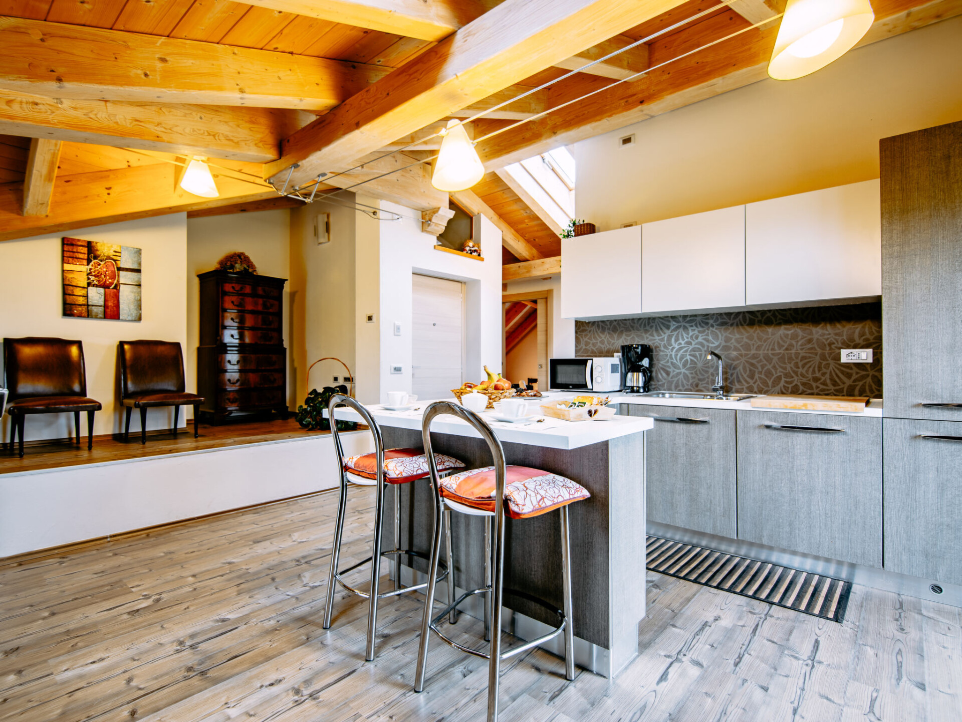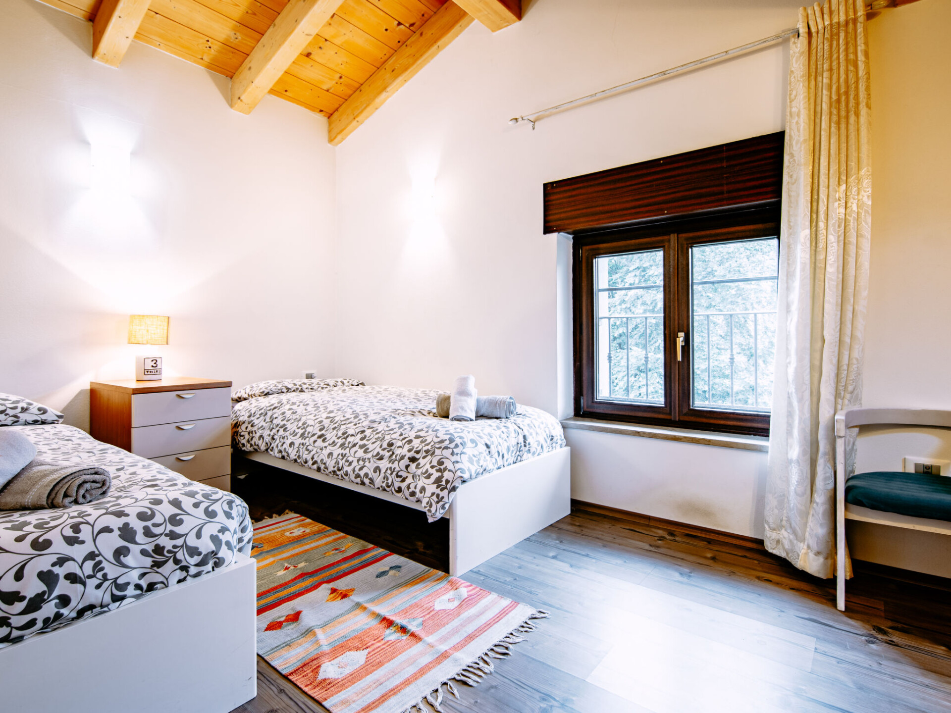 Calceranica 1 km van Caldonazzo: Klein appartementencomplex "Deval", 450 m boven zeeniveau, van 3 verdiepingen, omgeven door weiden en velden. 4 appartementen in de woning. 900 m van het centrum van Caldonazzo, aan de rand van de plaats, 5 km van het centrum van Levico Terme, 20 km van het centrum van Trento, 300 m van het meer. Voor medegebruik: mooie, verzorgde tuin (omheind) met gazon en planten. Prieel, tuinmeubelen, barbecue. In het huis: bergruimte voor fietsen, wasmachine (voor medegebruik). Parkeerplaats bij het huis op het terrein. Supermarkt 1 km, restaurant 300 m, fietsverhuur 1.7 km, bushalte "Linee B401/450 (Trento-Levico)" 900 m, treinstation "Caldonazzo (Trento-Bassano)" 1.7 km, grasstrand 300 m, overdekt zwembad 4.5 km, thermaalbad "Vetriolo Terme" 16 km. Golfterrein (6 holes) 10 km, fietspad 20 m. Attracties in de buurt: Parco Fluviale Torrente Centa 5 km, Ciclabile/Radweg/Cycling Path Valsugana 200 m, Mountainbike: Giro dei Laghi (24 km) 200 m, Giro Antiche Tradizioni (28 km) 1.7 km, Giro delle Pozze (21 km, Vetriolo) 18 km. Wandelgebied Sentiero della Pace / Monte Cimon 2 km, Tenna: Arboré 7.5 km, Monte Panarotta (2002 m) 21 km. De eigenaar woont in hetzelfde huis. Spoorweg 100 m van het huis.