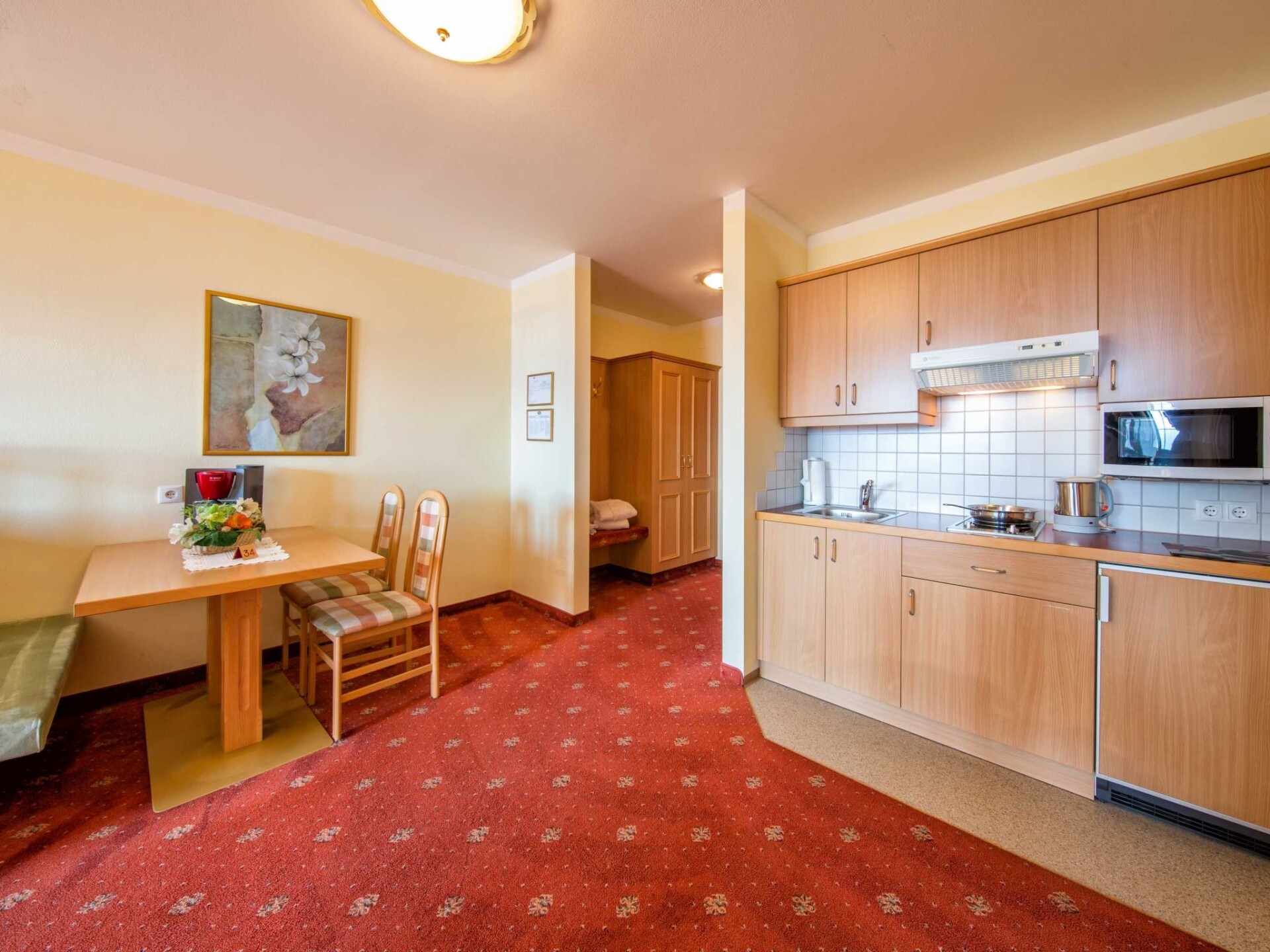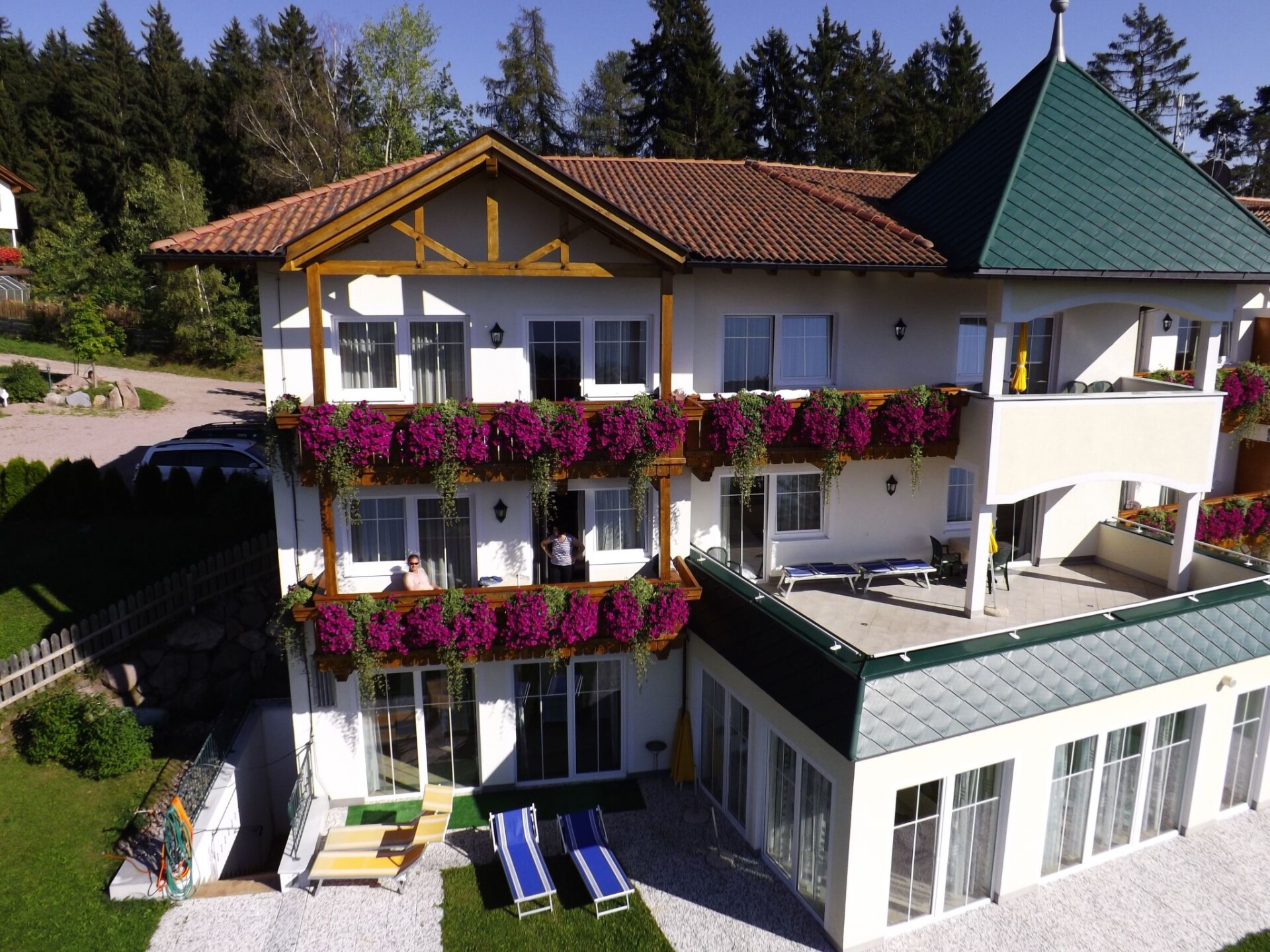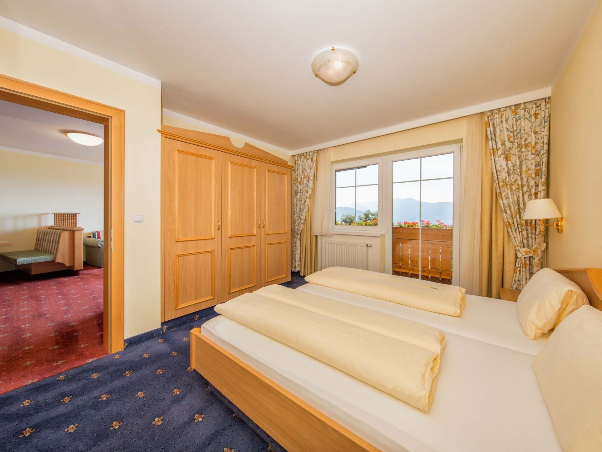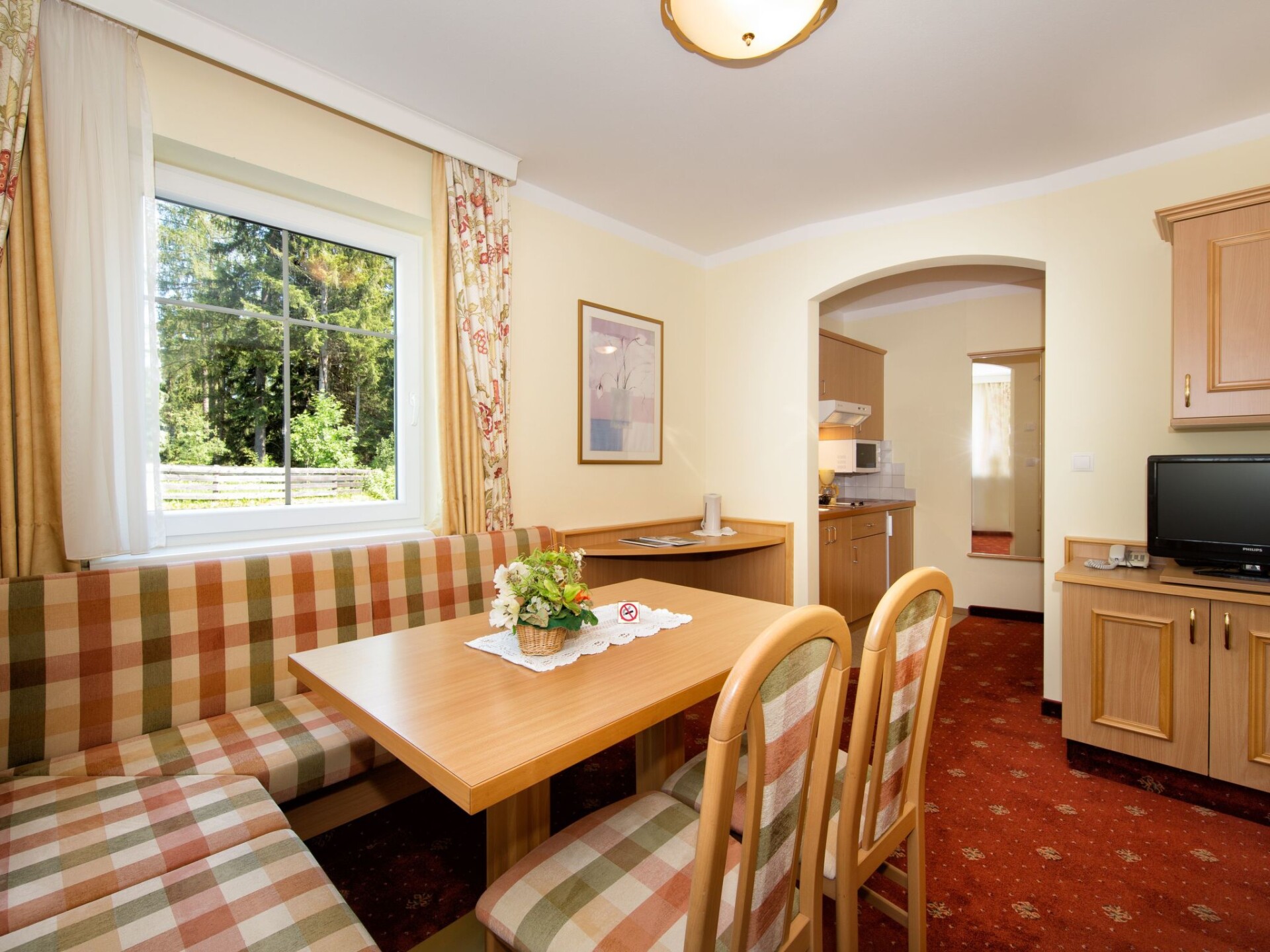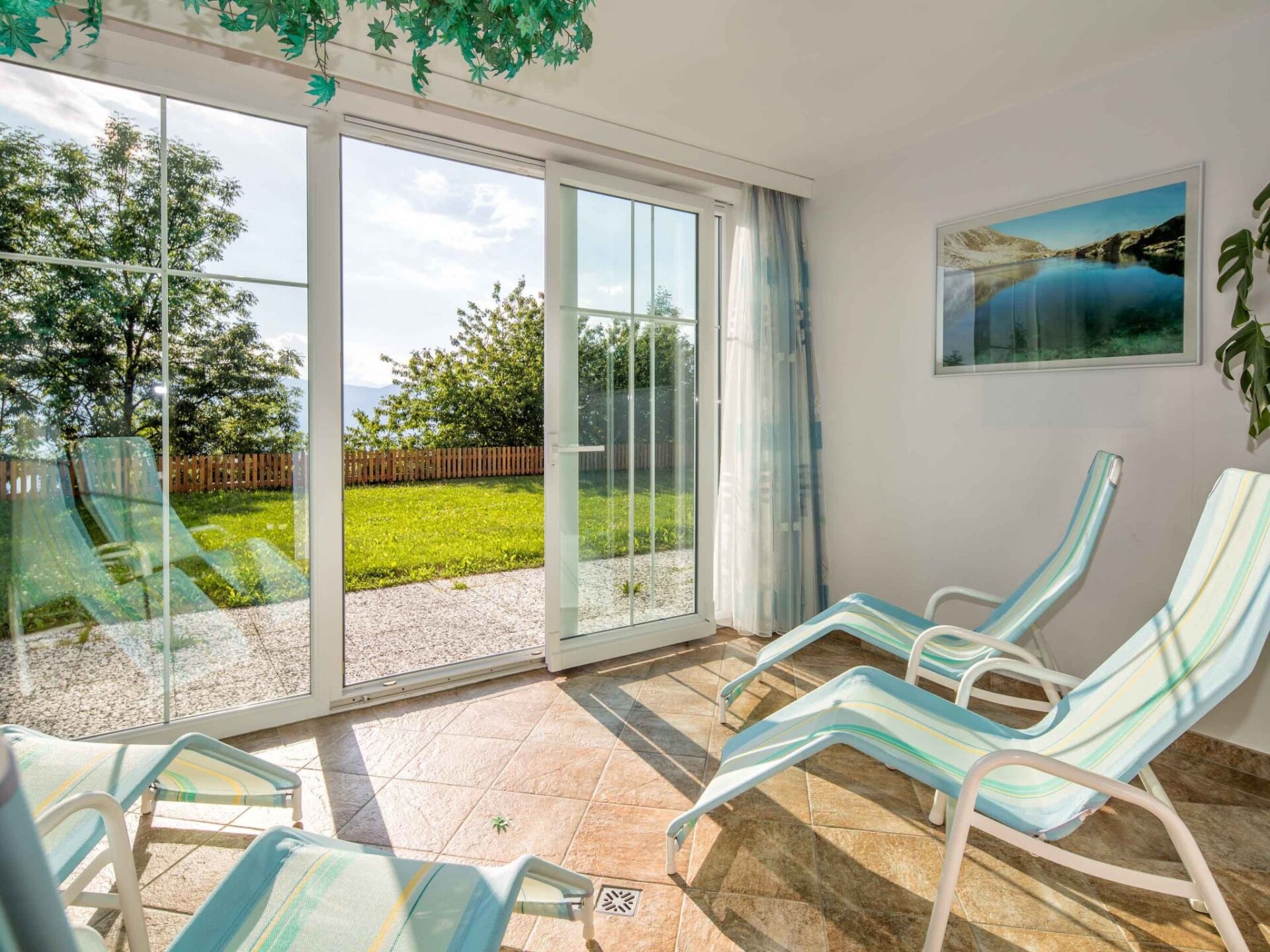 Harmonious living is the order of the day inside the house. The flats have been comfortably furnished with great attention to detail and are non-smoking. The south-west facing apartments are around 48 square metres in size and offer excellent comfort and a fantastic view of the Merano mountains from the balcony/garden. In an absolutely quiet location, you will find in all flats:Entrance cloakroom with built-in wardrobe.Separate bedroom with built-in wardrobe, radio alarm clock, balcony exit.Living room with quality sofa (extendable) bench, table and chairs satellite TV, telephone and balcony exit. A fully equipped kitchenette with crockery for 4 people, dishwasher, microwave, fridge with freezer compartment, coffee machine, kettle. A 6 square metre bathroom with shower, bidet and hairdryer, separate from the WC, including bed linen, hand and bath towels (including bath towels) and a change of towels for longer stays. Including water, heating, electricity, indoor swimming pool, Finnish sauna and steam bath. IT021112B49EULQ127