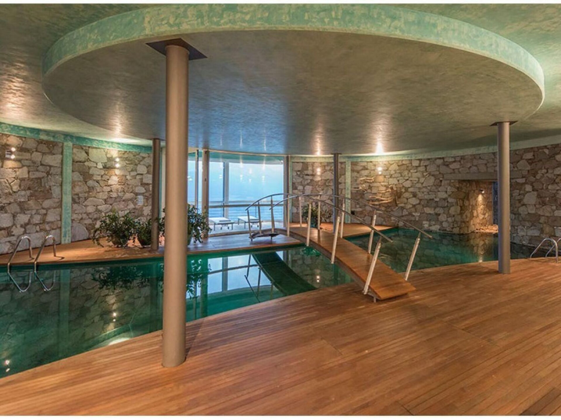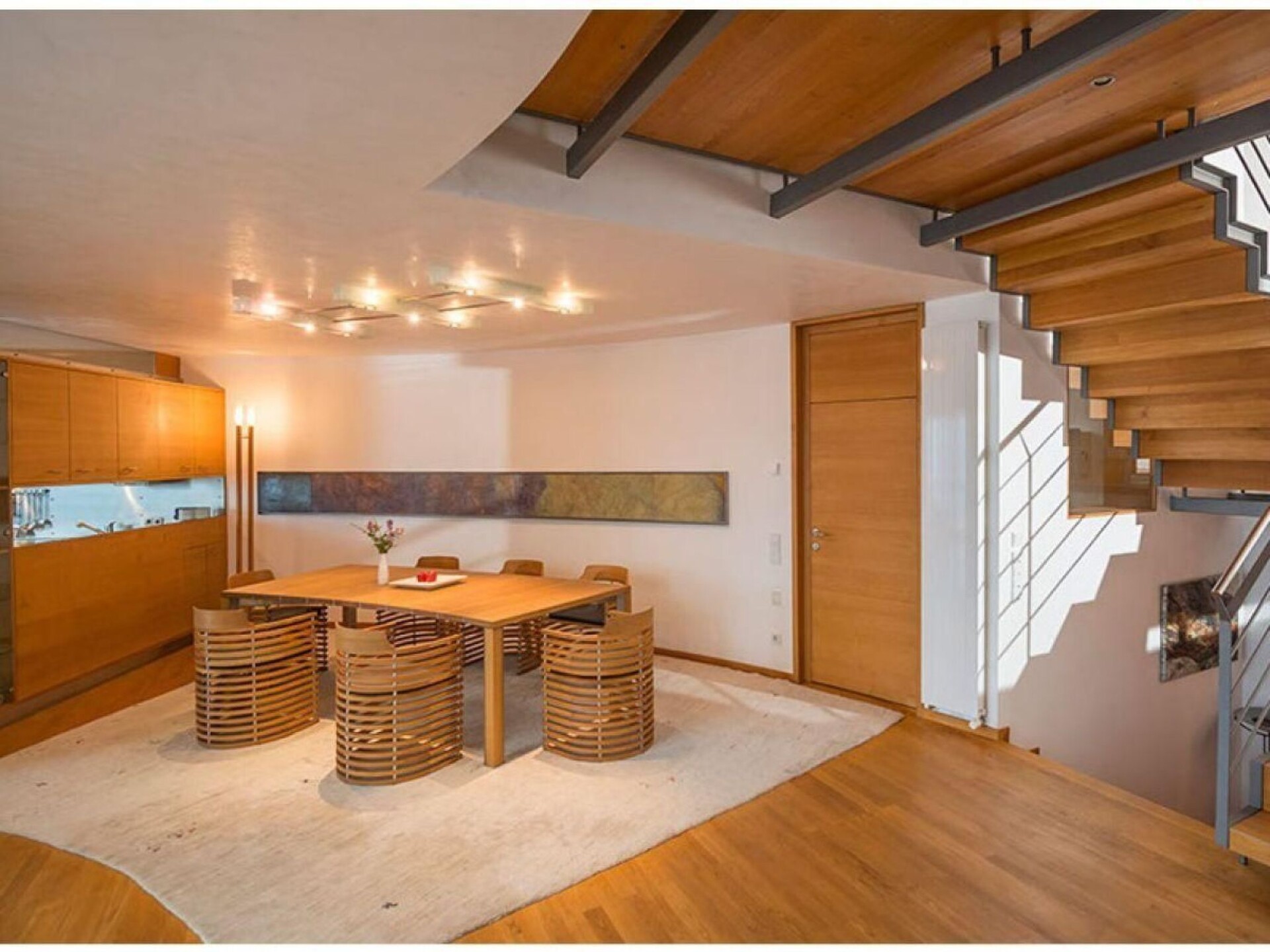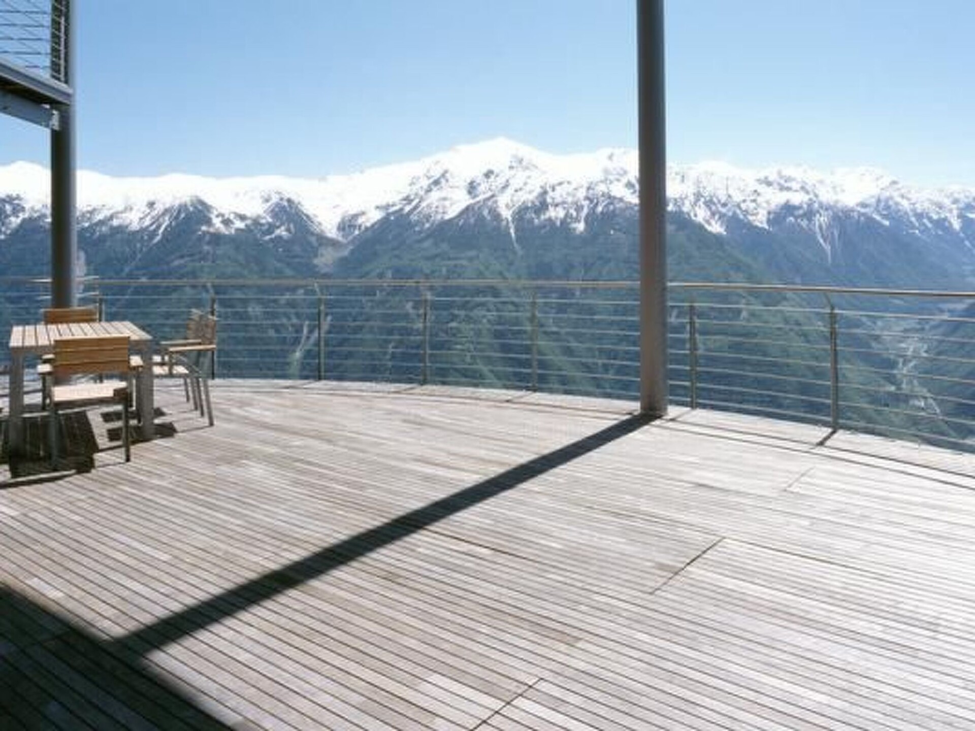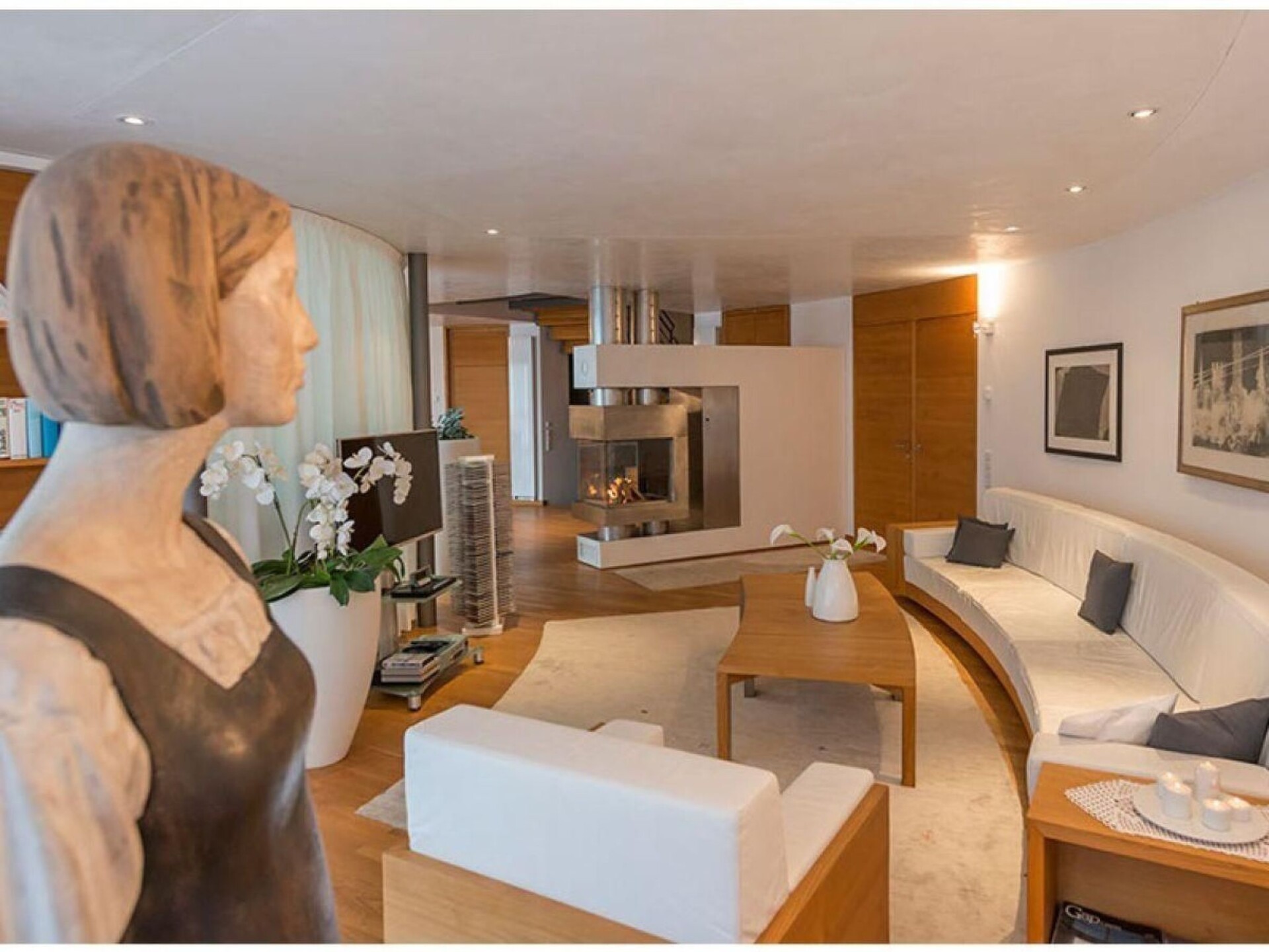The interior of the tower chalet, whose living space of around 500 m² is divided into 4 floors, is accessed via the bold drawbridge. All levels are connected at the rear by a spacious staircase. The guest and children's rooms are located on the entrance level, each with a bathroom/WC and terrace-balcony. Below this is the spacious home office; through the wide glass front at the front, the views extend into the upper Vinschgau Valley as far as the Swiss mountains, in the smaller window Tarsch appears as a "nature picture", a natural still life in the window frame. Living/dining room, visually divided by the large masonry wood-burning stove and the open fireplace on three sides, with satellite TV, video, radio system with CD (ample selection) and stereo, wood-panelled library parlour with masonry stove and lounger, cosy sitting area, TV, binoculars for mounting outdoors, e.g. on the huge terrace that closes the tower circle, with a completely linear table and chairs, naturally made of steel and wood. Two guest and children's bedrooms, each with double beds and an additional pull-out bed; in the toilet rooms with bath or shower, the crystalline white marble stone stands out. A natural swimming pool with a length of 18 m, width of 4 / 6 m and depth of min. 1.30 m/max. 1.80 m, massage grotto and waterfall, like a mysterious mountain lake. Sauna area with Finnish wooden cabin and view of the Val Martello, Roman steam sauna completely encased in white Lasa marble, as are the walls of the shower. The whirlpool with a view of the mountain scenery opposite and the bar can be separated from the swimming area by a "rounded" sliding element (always made of the same chestnut wood); from this area you can access another terrace, secluded and sheltered from the wind, with an open-air shower, enclosed gas barbecue area with chimney flue, dining table and chairs. The sheltered balconies in front of the rooms have an almost meditative character due to the force of the landscape. Short description Miscellaneous : Non-smoking house Short description 1 Number of kitchens : 1 Other rooms : Pool & pool bar, sauna, conservatory, parlour, office Living room 1 Other living room facilities : TV, DVD player, surroundings Sports facilities in the area : Mountaineering, mountain biking, cycling tours Surroundings 1 Excursions : Numerous hiking trails Other sports and leisure facilities : Hiking Garden and outdoor facilities Leisure facilities at the property : Sauna, swimming pool, whirlpool Garden facilities : Garden furniture available, barbecue.