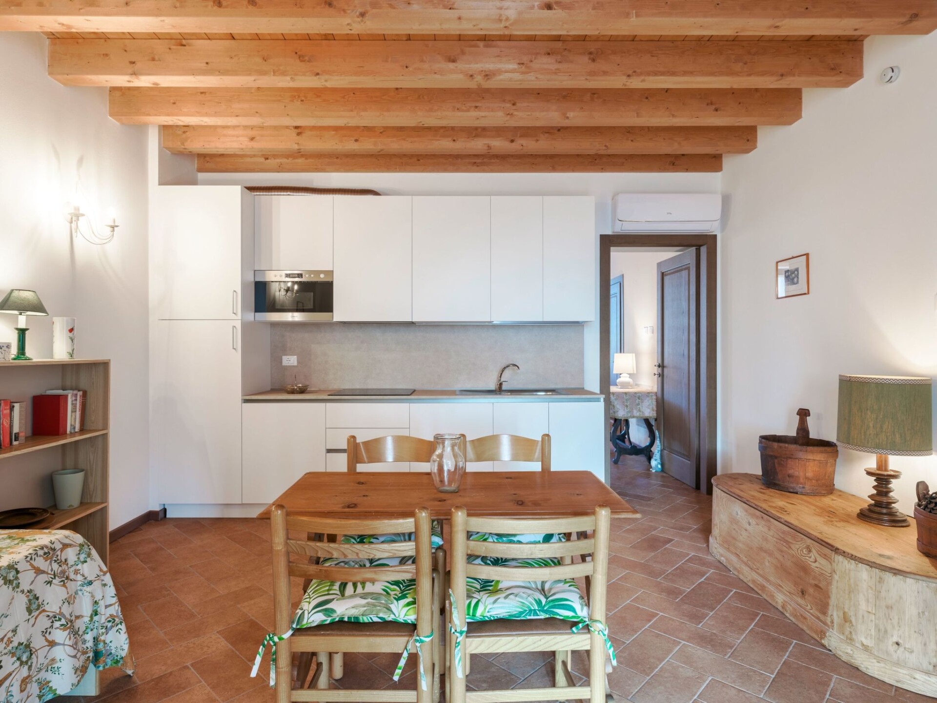 Discover the authentic charm of Northern Italy by staying in this cosy flat located in a farmhouse of historical and architectural value in Fiesse. Perfect for accommodating up to 4 people, this flat is the ideal choice for those seeking a holiday full of comfort and history, immersed in the peaceful countryside of the North.The interior of the flat is equipped with every modern comfort while retaining its historical character. Guests will have access to a well-lit living area, equipped with two single sofa beds that can be converted into a double sofa bed, overlooking a lovely courtyard through a large window. The kitchen, complete with all the necessary appliances and a capsule coffee machine, offers the possibility of preparing meals in comfort. The entire flat is air-conditioned and has underfloor heating, ensuring comfort in every season.The flat is part of a detached house, free on four sides, which does not allow the use of a barbecue but welcomes a pet. Although located on the first floor, it is easily accessible thanks to the presence of a lift in addition to the Botticino marble staircase. This accommodation therefore combines the authenticity of a historic building with modern convenience.The surroundings offer a dip into the history and culture of the place, with the flat located in an area enriched by renewable and solar energy, demonstrating a commitment to sustainability. Despite the tranquillity of the countryside, a grocery shop is within easy walking distance, ensuring that every need can be easily satisfied.This flat proves to be an incomparable choice for an unforgettable holiday in Fiesse, where history, comfort and sustainability come together in a unique holiday experience. Whether you are looking for a romantic retreat or a cosy base to explore the rich heritage of northern Italy, here you will find the perfect balance of past and present. IT017152B5SEW53VBT
