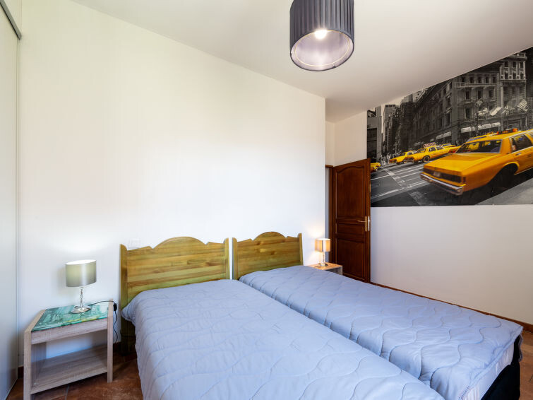 "Jasmine", halfvrijstaand huis 4-kamers 150 m2. Ruim, doelmatig en modern ingericht: woon-/eetkamer met eettafel, TV en Sat-TV (Flatscreen TV), stereo-installatie en DVD. Uitgang naar het terras. 2 kamers, elke kamer heeft 1 2-pers bed (140 cm, lengte 190 cm). 1 kamer met 2 bedden (90 cm, lengte 190 cm). Keuken (oven, afwasmachine, 5 kookpitten (vlammen), broodrooster, waterkoker, magnetron, diepvriezer, elektrische koffiemachine). Aparte WC, bad of douche. Elektrische verwarming, air-conditioning. Groot terras 40 m2. Terrasmeubelen, barbecue, ligstoelen (2). Ter beschikking: wasmachine, strijkijzer, kinderstoel, kinderbed. Internet (Internet (WiFi), gratis). Parkeerplaats (1 Auto). Niet rokers woning. Maximaal 2 huisdieren/honden toegestaan. Privé ingang, rookmelders.