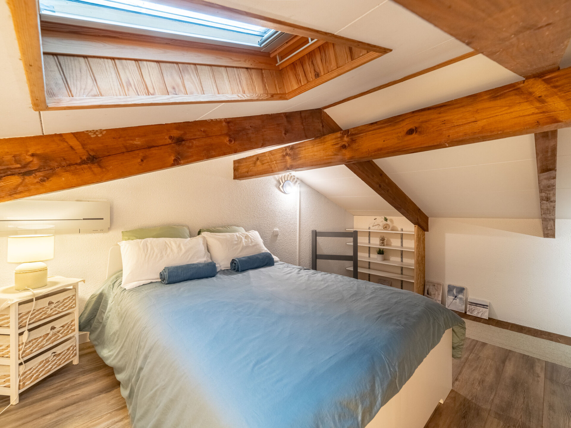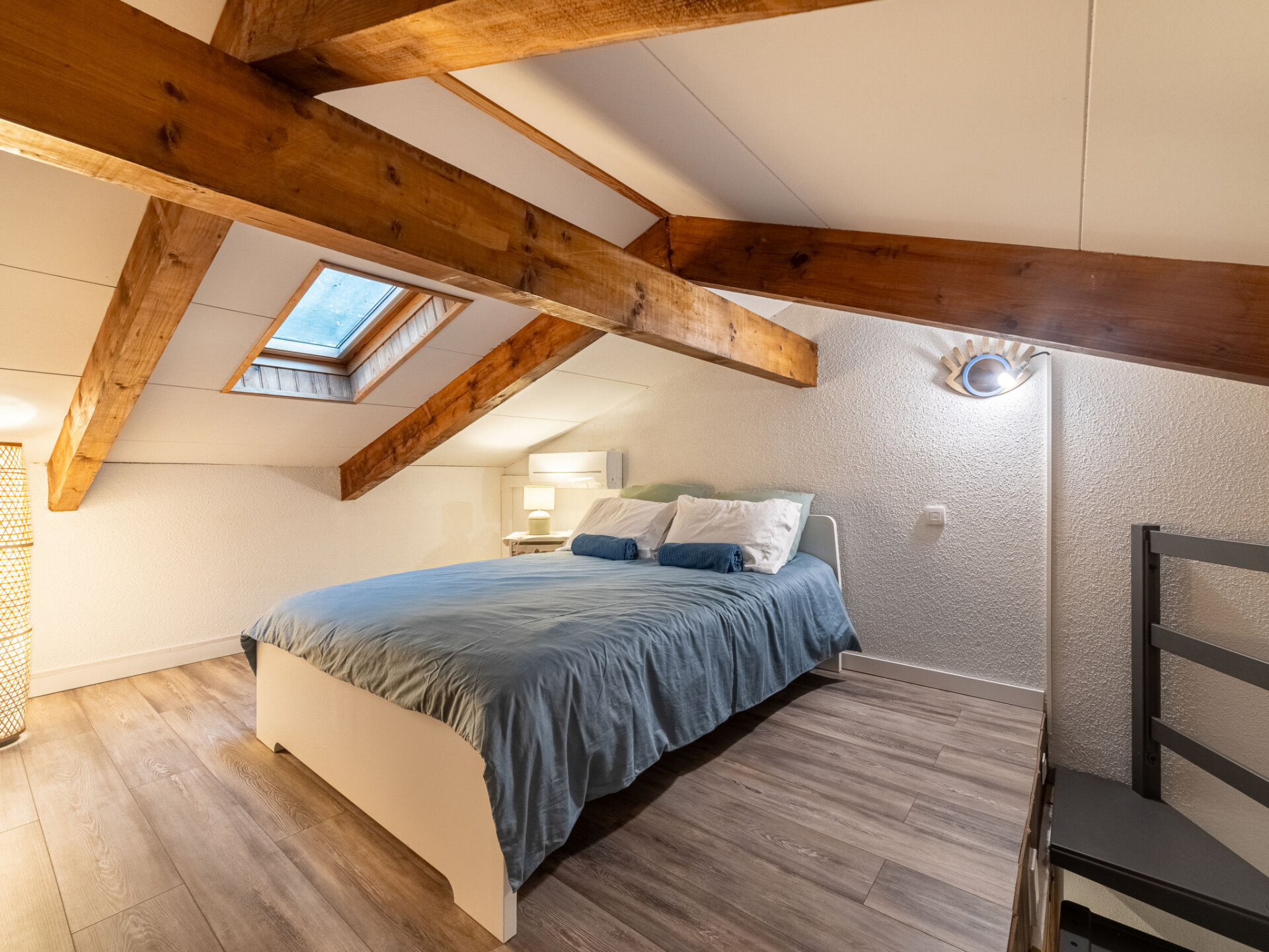 Huis in een rij 3-kamers 60 m2 op 3 verdiepingen. Ruim en licht, mooi en modern ingericht: woon-/eetkamer met eettafel en TV (Flatscreen TV). Uitgang naar het terras. Open keuken (oven, afwasmachine, 3 inductiekookplaten, broodrooster, waterkoker, magnetron, diepvriezer, elektrische koffiemachine, pads voor de koffiemachine (Expresso) extra). Bovenverdieping: (wenteltrap), 1 kamer met 1 2-pers bed (160 cm, lengte 200 cm). Douche, aparte WC, dubbele wastafels. Elektrische verwarming, air-conditioning. 2e Verdieping: 1 kamer met afgeschuinde daken, hoogte van het plafond 180 - 100 cm met 1 2-pers bed (140 cm, lengte 190 cm), elektrische verwarming en air-conditioning. Terras 20 m2, op het westen gelegen. Terrasmeubelen. Ter beschikking: wasmachine, strijkijzer. Internet (Internet (WiFi), gratis). Parkeerplaats nr. 10 (omheind, 1 Auto). TV alleen FR. Rookmelders. Aanbod door een particulier volgens art. 155, IV van CGI.