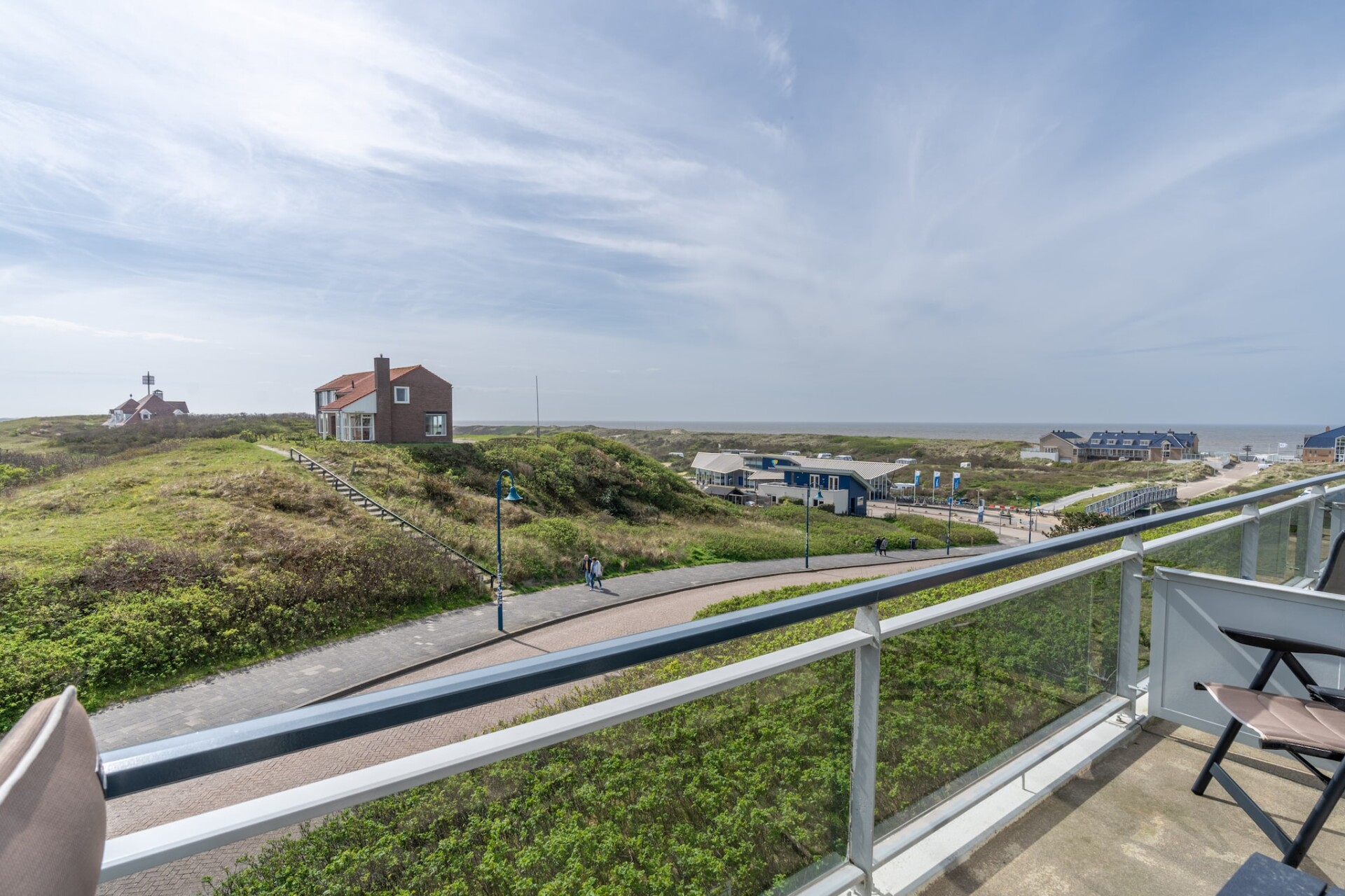 Het balkon is op het zuiden gelegen en biedt een prachtig uitzicht over de Noordzee, de duinen en badplaats de Koog. Tuinmeubilair is standaard aanwezig.