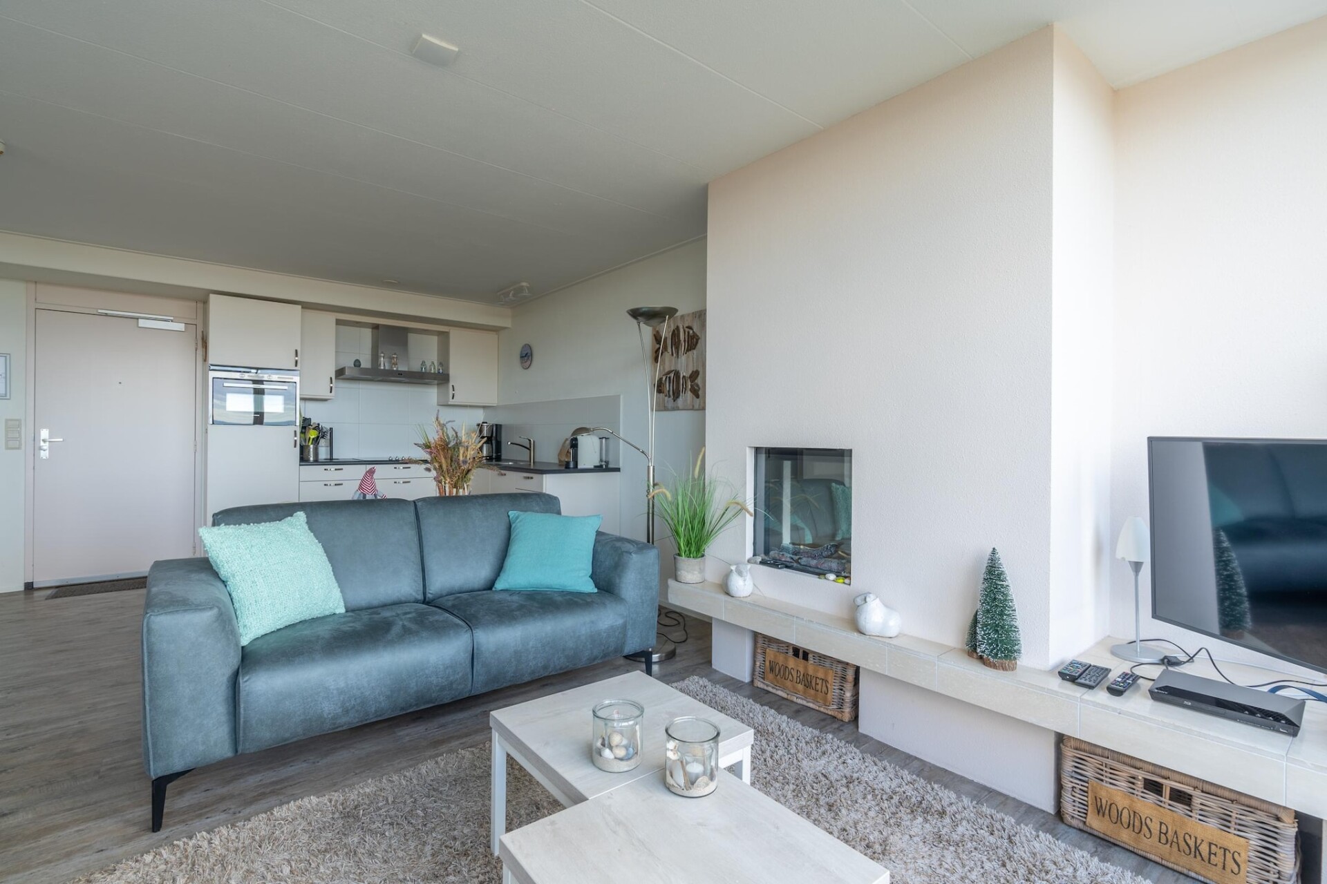 De ruime woonkamer heeft een tv en elektrische sfeerhaard welke voor een gezellige warme sfeer zorgt wanneer u deze aanzet. Wanneer u naar buiten kijkt heeft u een prachtig uitzicht over de duinen en de Noordzee. De nette open keuken is van alle gemakken voorzien zoals een vaatwasser, combimagnetron, koelvriescombinatie en diverse koffiemachines. Tevens is er nog een eethoek met eettafel voor 4 personen.