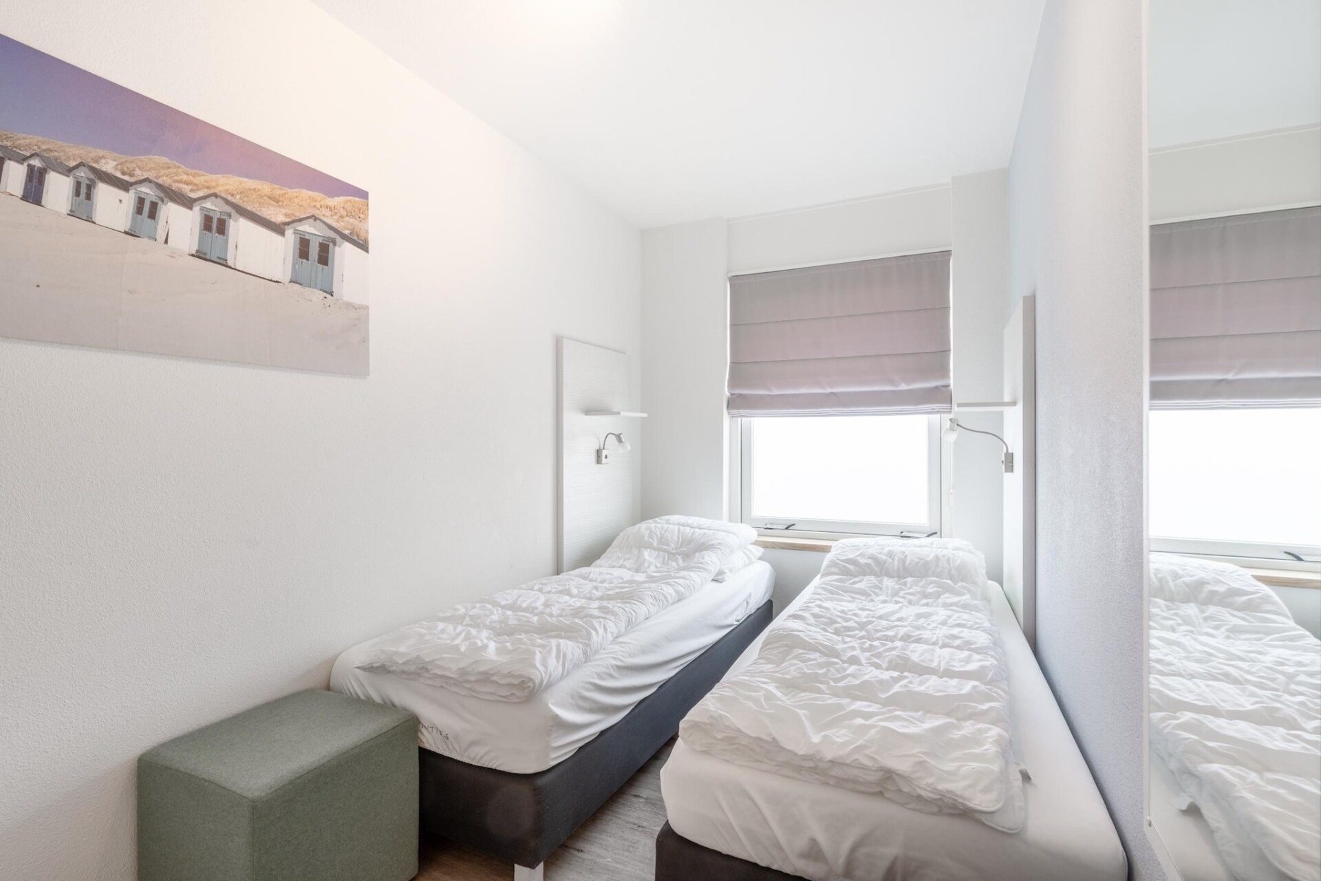 Er zijn 2 slaapkamers, de grootste slaapkamer heeft een 2 persoons boxspringbed en een TV. De kleine slaapkamer heeft twee 1-persoons boxpringbedden.