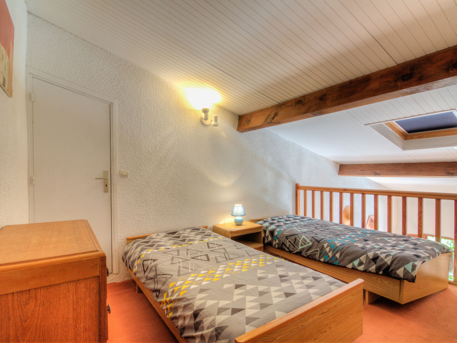 Huis 2-kamers 45 m2 op 2 verdiepingen, op het zuiden gelegen. Woon-/eetkamer met Flatscreen TV. 1 kamer met 1 2-pers bed (140 cm, lengte 190 cm). Kookhoek (4-pits kookplaat, oven, afwasmachine, magnetron, diepvriezer). Douche/WC. Elektrische verwarming. Bovenverdieping: open galerij met 2 bedden (90 cm, lengte 190 cm). Terras. Terrasmeubelen. Ter beschikking: wasmachine. Maximaal 1 huisdier/hond toegestaan. Rookmelders. Let op: De overloop heeft een uitzicht op de woonkamer. WIFI not possible. In plaats van een afgesloten slaapkamer bevinden sommige slaapgedeeltes zich in een open ruimte (galerij, nis, etc.). 402960000575V