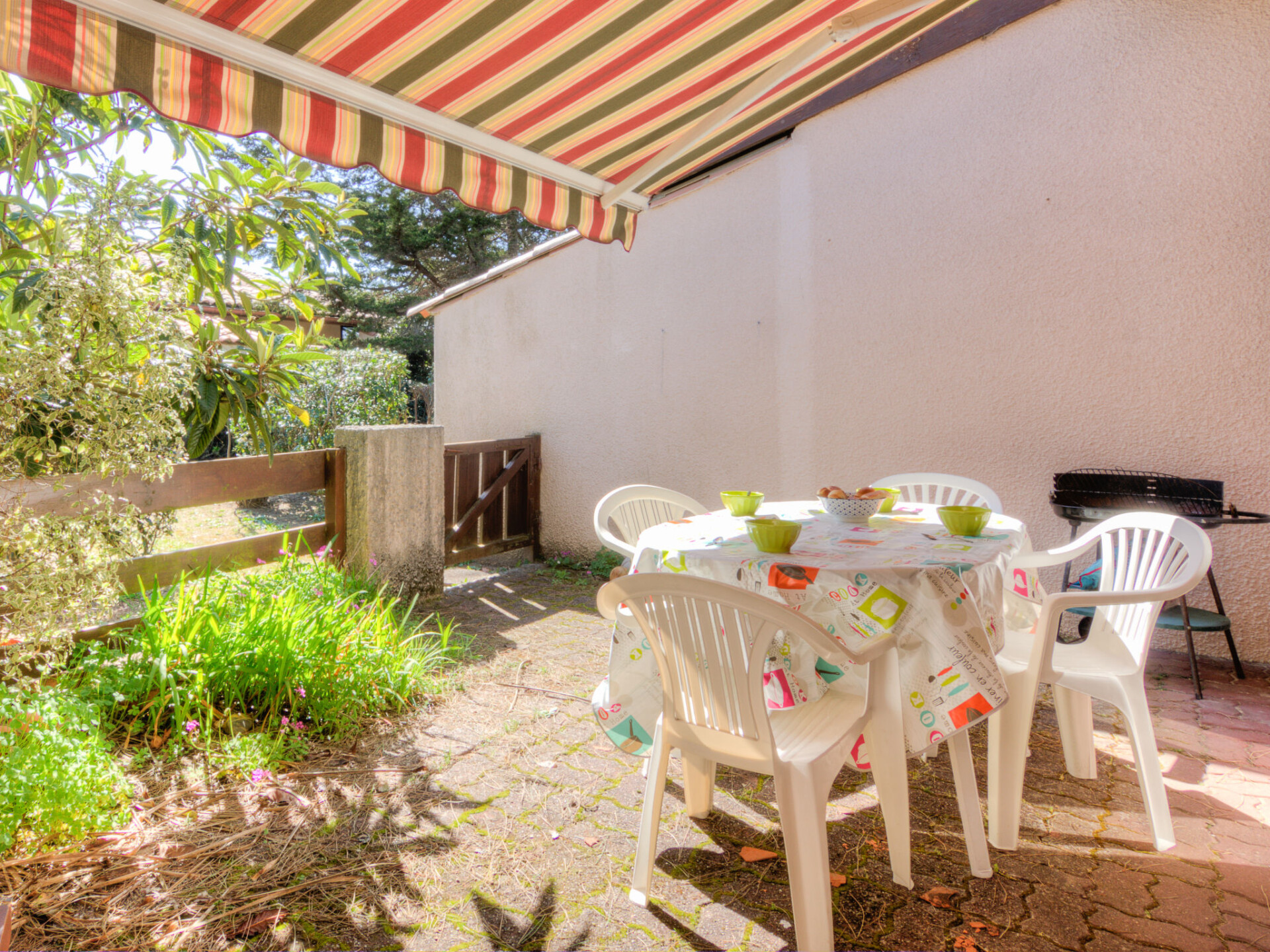 Seignosse Le Penon 6 km van Hossegor: De residentie "Juncades" is een complex met huizen in een rij, middenin het groen. Patio met tuinmeubelen. Rijtjeshuis "Juncades". 500 m van zee, 5 km van het meer. Parkeerplaats. Winkel 800 m, bushalte "seignosse office du tourisme", treinstation, zandstrand 500 m. Golfterrein (18 holes) 3.5 km, tennis 300 m.