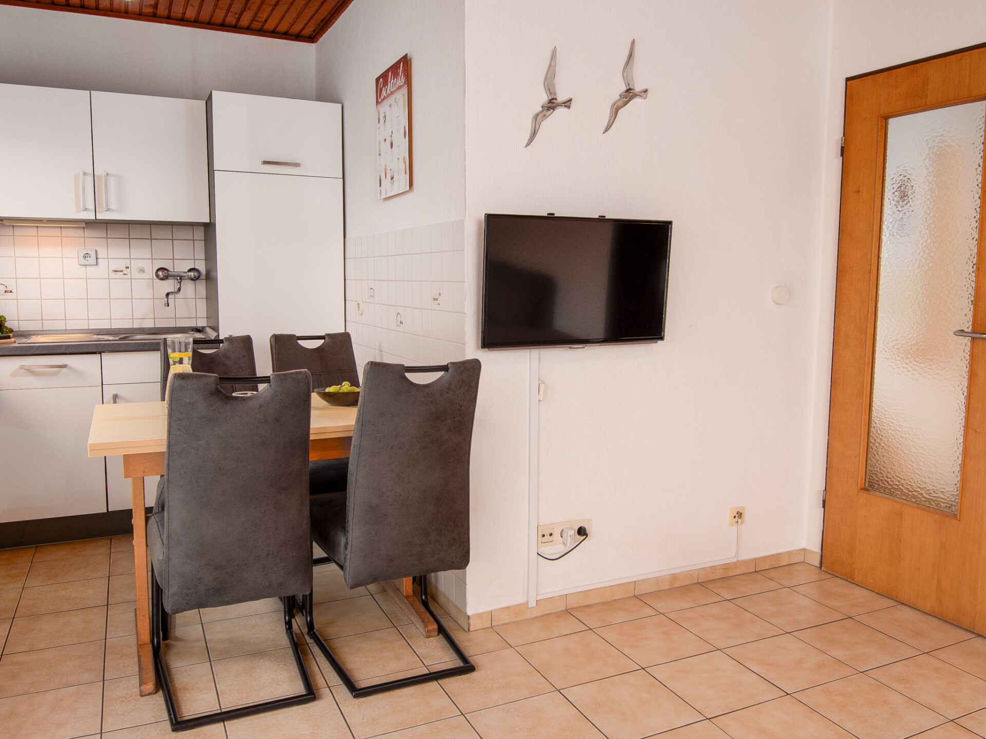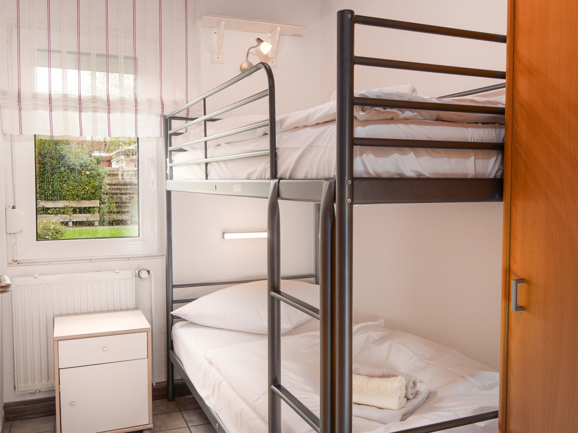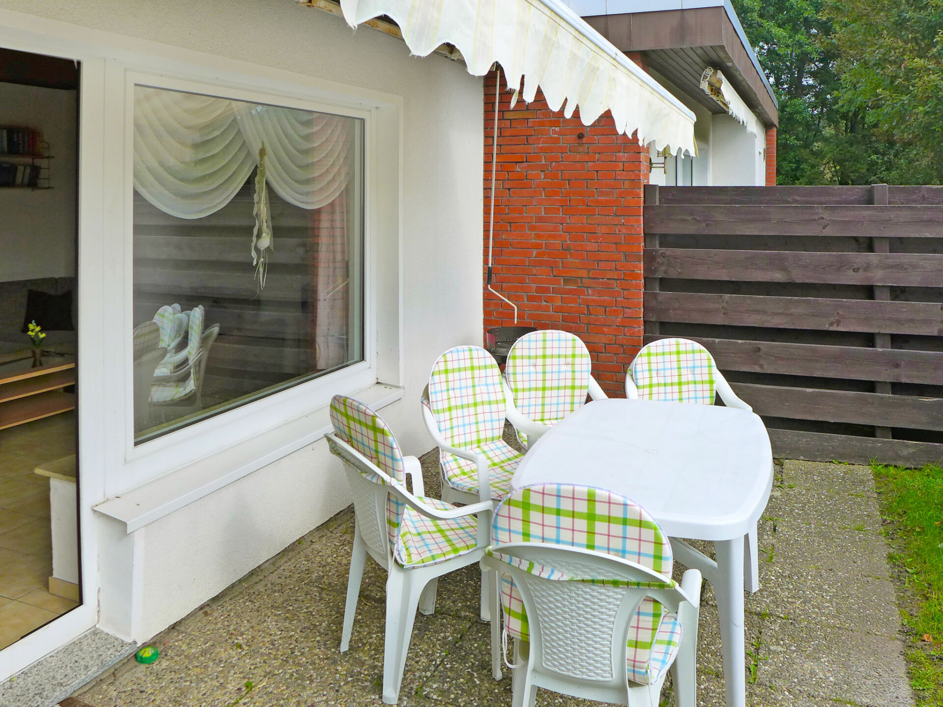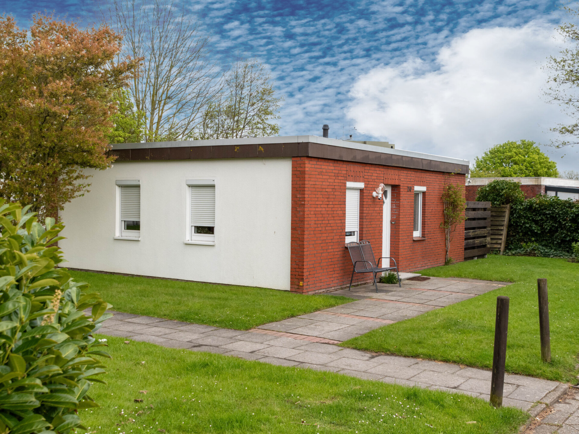 "Kajüte", huis in een rij 4-kamers 55 m2, op de begane grond. Gezellig ingericht: woon-/eetkamer 22 m2 met Sat-TV en stereo-installatie. Uitgang naar het terras. 1 kamer 10 m2 met 1 2-pers bed (2 x 90 cm, lengte 200 cm). 1 kamer 4 m2 met 1 x 2 stapelbedden (90 cm, lengte 200 cm). 1 kamer 4 m2 met 1 bed (90 cm, lengte 200 cm). Kookhoek (4-pits kookplaat, oven, afwasmachine, broodrooster, waterkoker, elektrische koffiemachine). Douche/WC. Terras 12 m2, gazon. Terrasmeubelen. Ter beschikking: kinderstoel (extra). Rookvrij huis. Rookmelders.