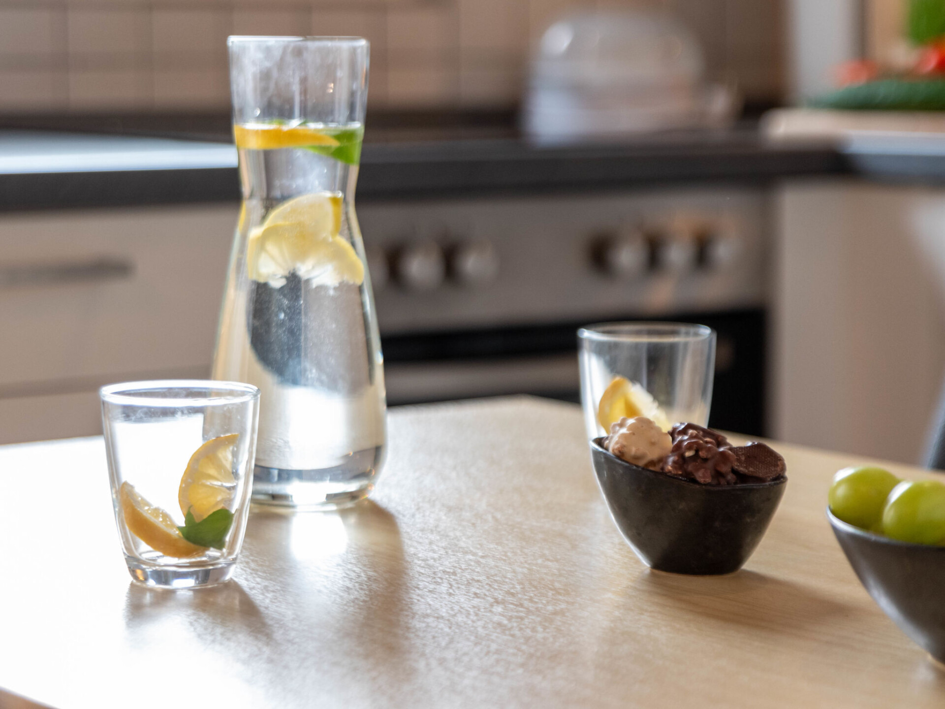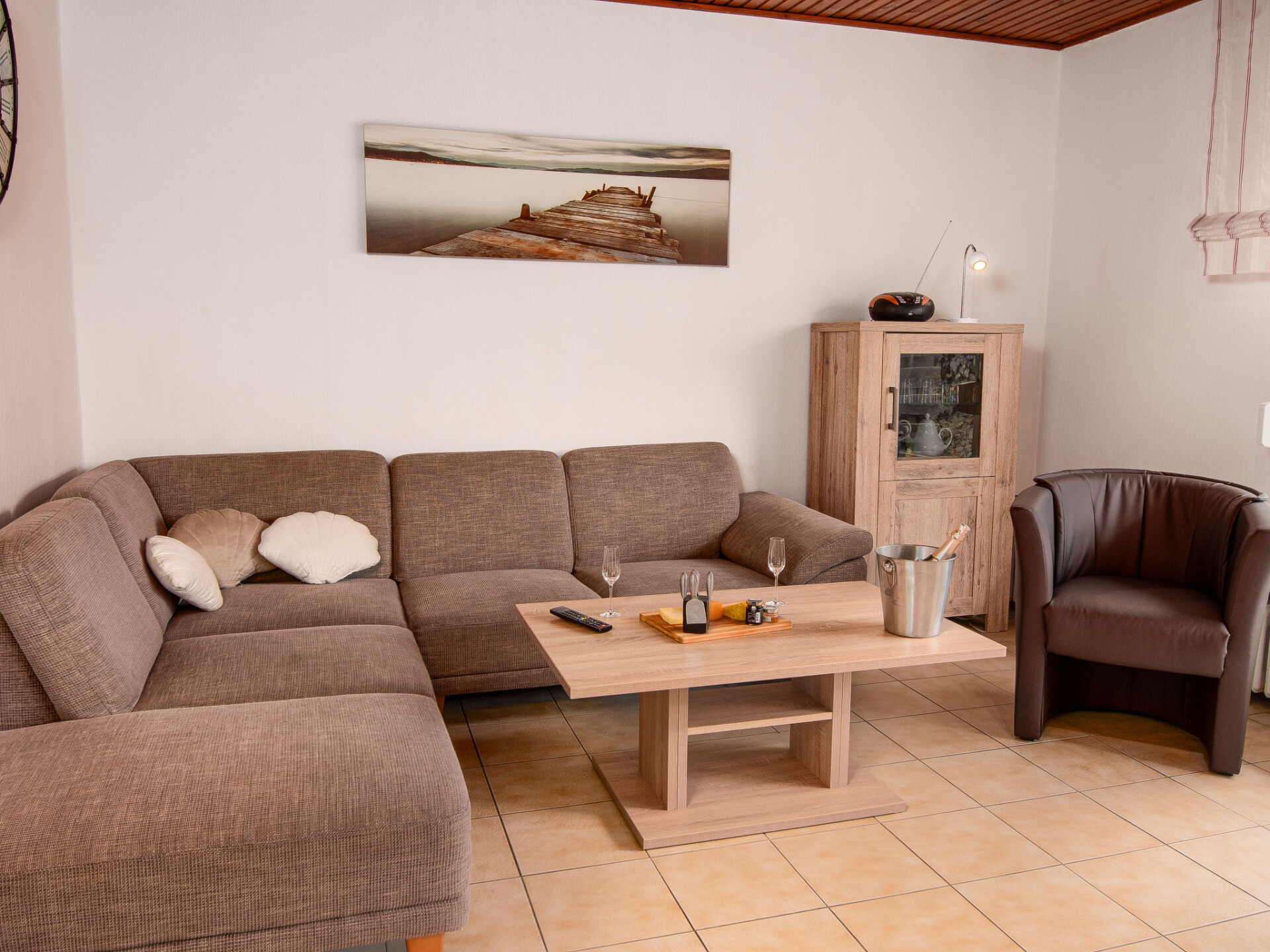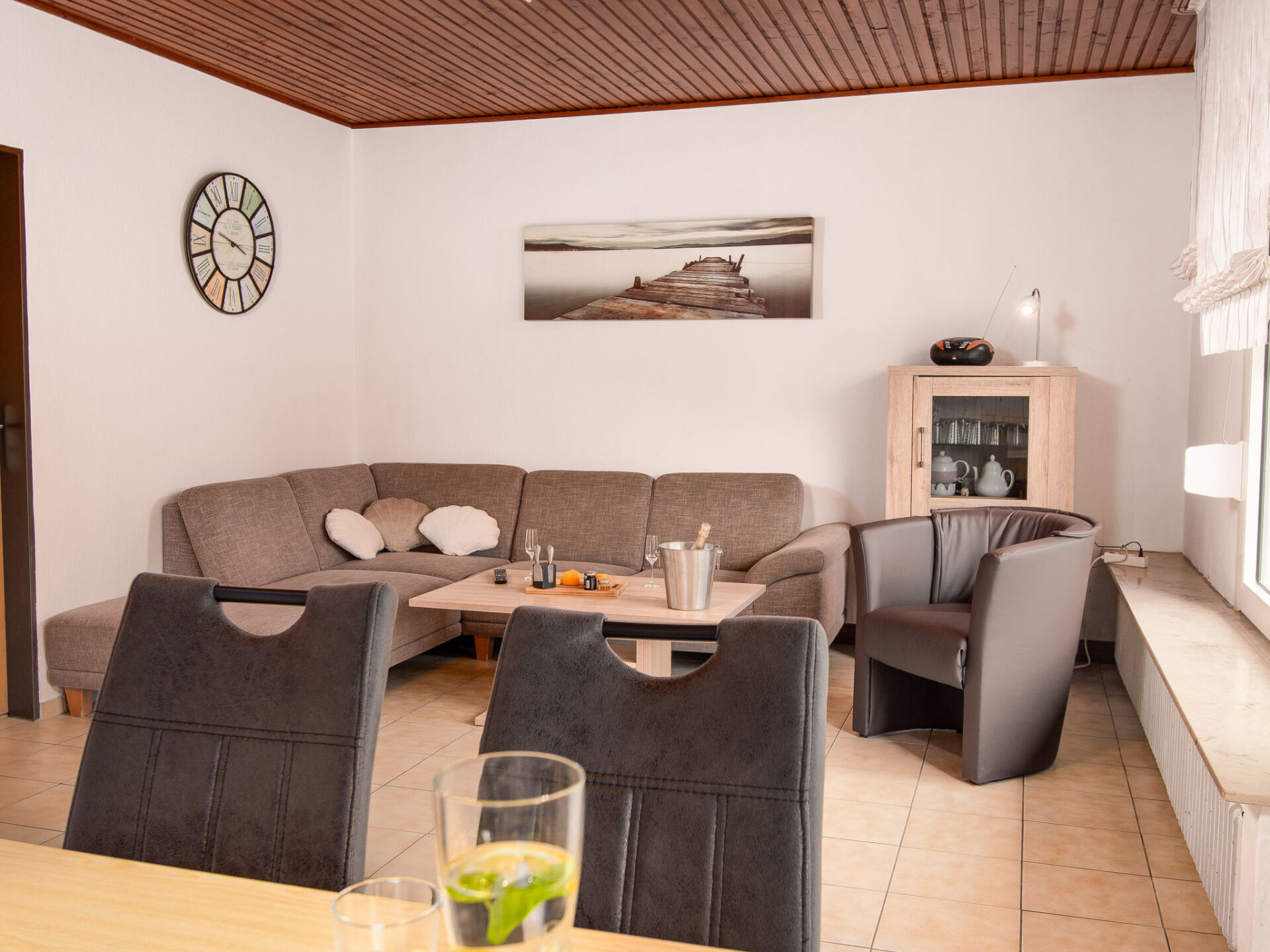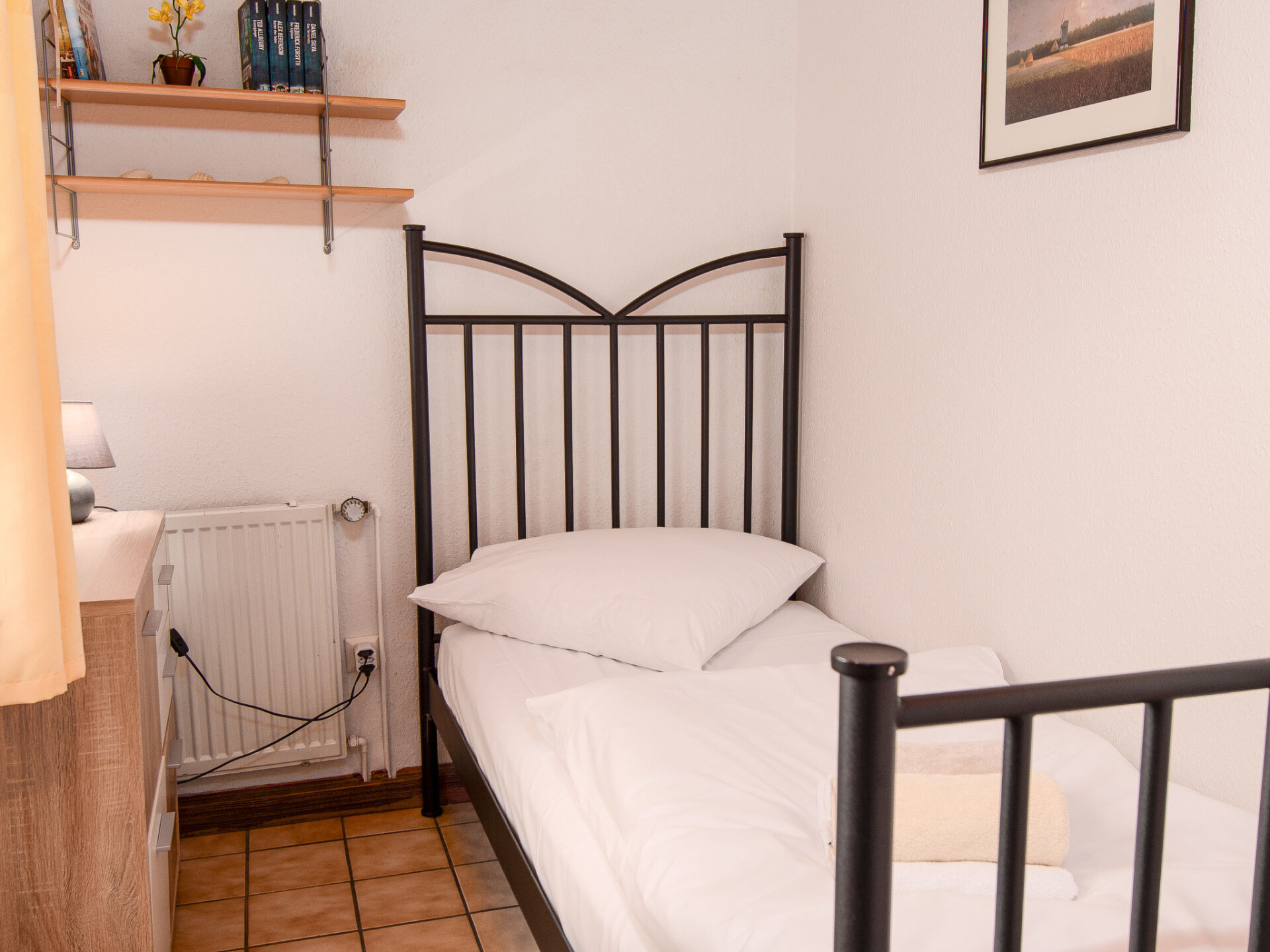 "Kajüte", huis in een rij 4-kamers 55 m2, op de begane grond. Gezellig ingericht: woon-/eetkamer 22 m2 met Sat-TV en stereo-installatie. Uitgang naar het terras. 1 kamer 10 m2 met 1 2-pers bed (2 x 90 cm, lengte 200 cm). 1 kamer 4 m2 met 1 x 2 stapelbedden (90 cm, lengte 200 cm). 1 kamer 4 m2 met 1 bed (90 cm, lengte 200 cm). Kookhoek (4-pits kookplaat, oven, afwasmachine, broodrooster, waterkoker, elektrische koffiemachine). Douche/WC. Terras 12 m2, gazon. Terrasmeubelen. Ter beschikking: kinderstoel (extra). Rookvrij huis. Rookmelders.