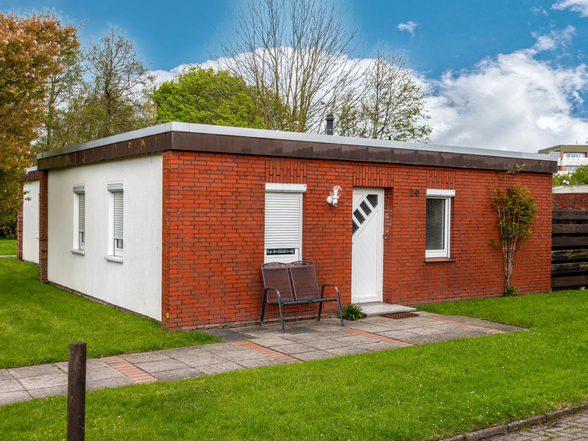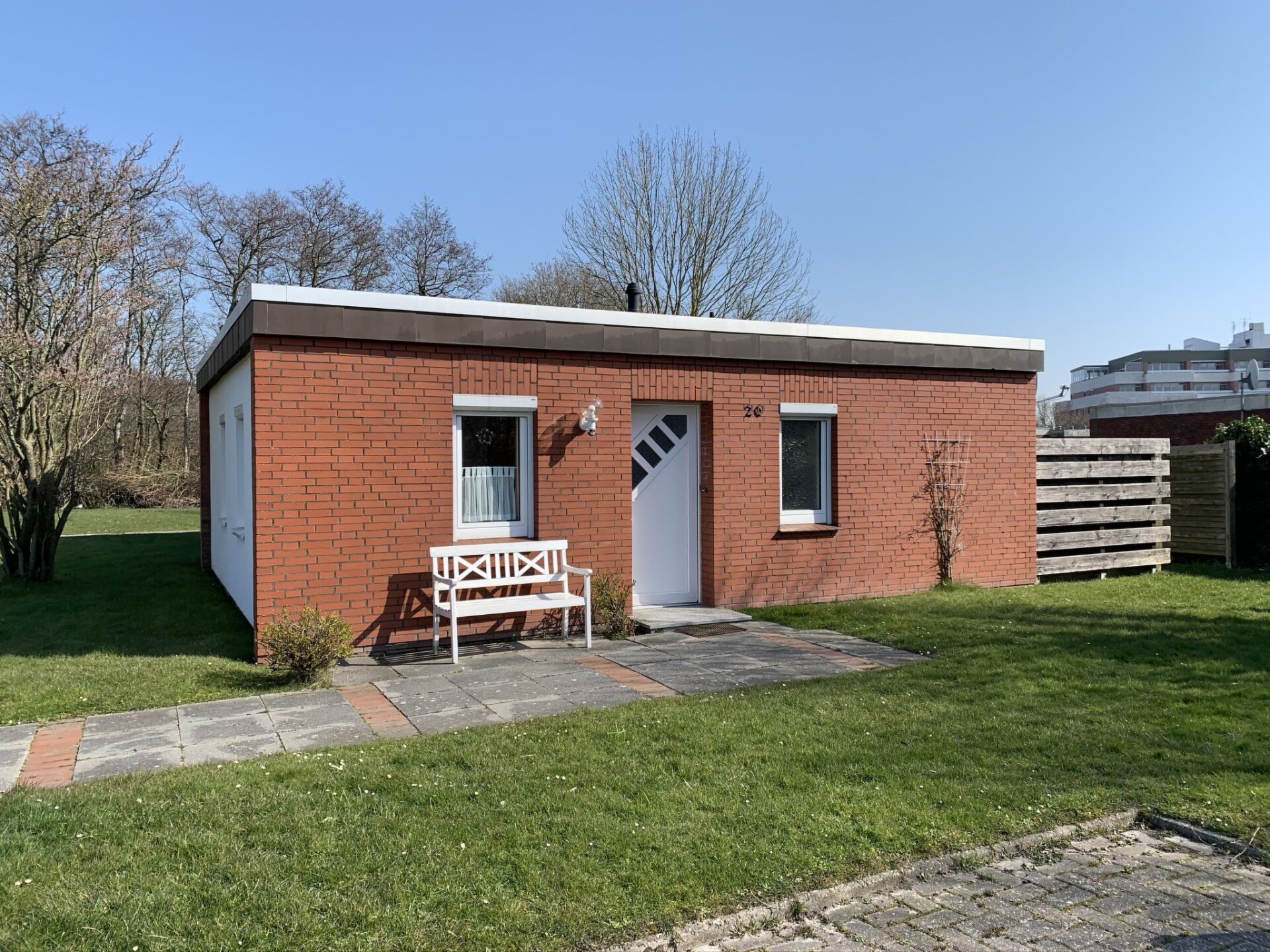 Rijtjeshuis. In de plaats, centrale ligging, 450 m van zee, van het strand, aan een doodlopende weg. In het huis: centrale verwarming. Parkeerplaats bij het huis. Supermarkt 1.5 km, restaurant 100 m, bakkerij 200 m, café 100 m, bushalte 500 m, treinstation 1.5 km, veerboot 1.5 km, zandstrand 450 m, openluchtzwembad 14 km, overdekt zwembad 500 m. Golfterrein (18 holes) 8 km, surfschool 500 m, tennis 2 km, midgetgolf.