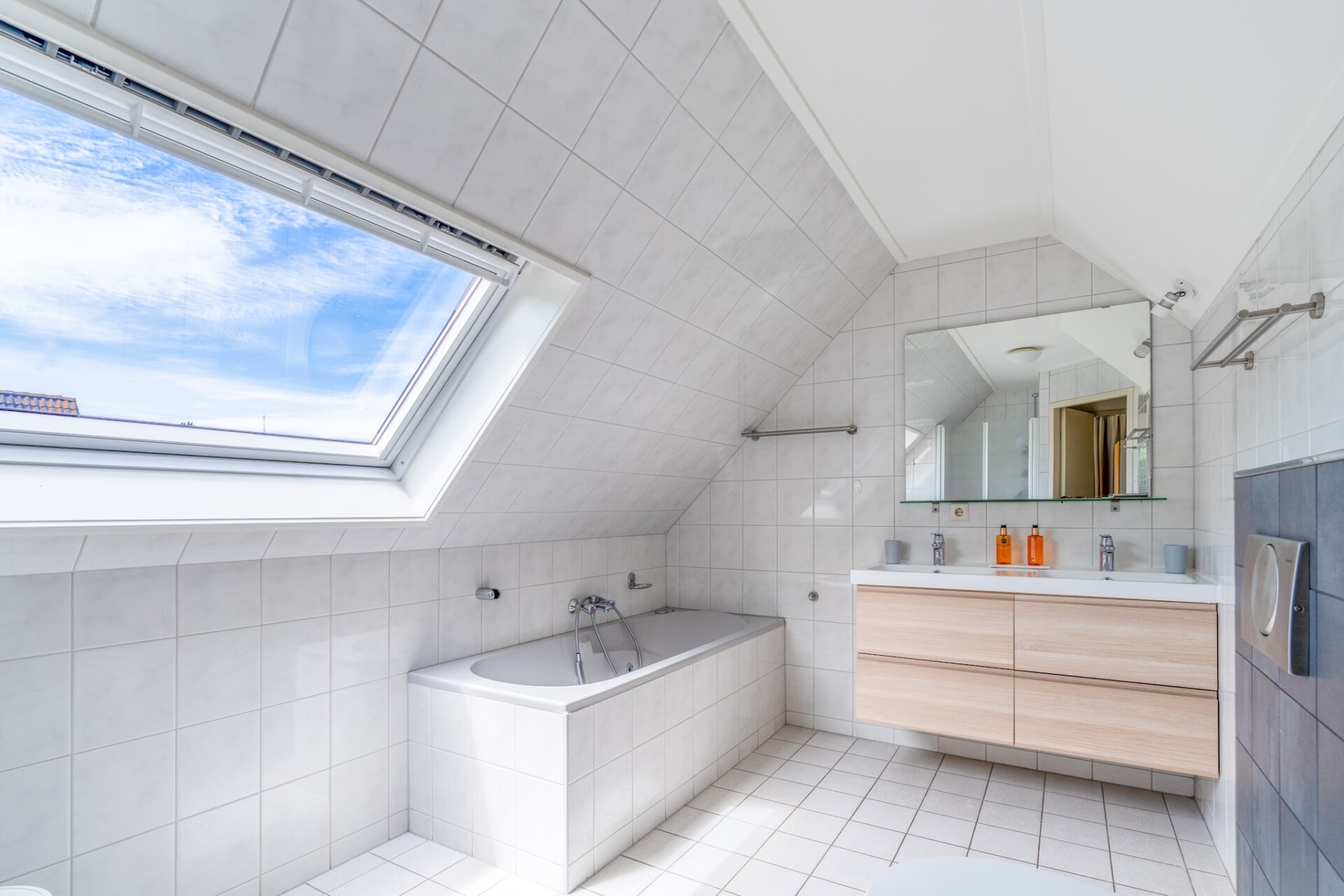 De ruime lichte woonkamer is voorzien van een zithoek, TV, muziekinstallatie en leeshoek. De ruime open keuken is van alle gemakken voorzien. Er zijn in totaal twee slaapkamers aanwezig. Beide bevinden zich op de eerste verdieping en zijn voorzien van een twee eenpersoons boxspringbedden en uitgerust met een TV. De badkamer is voorzien van een douche, whirlpool, dubbele wastafel en een toilet. Op de begane grond bevindt zich tevens een apart toilet.