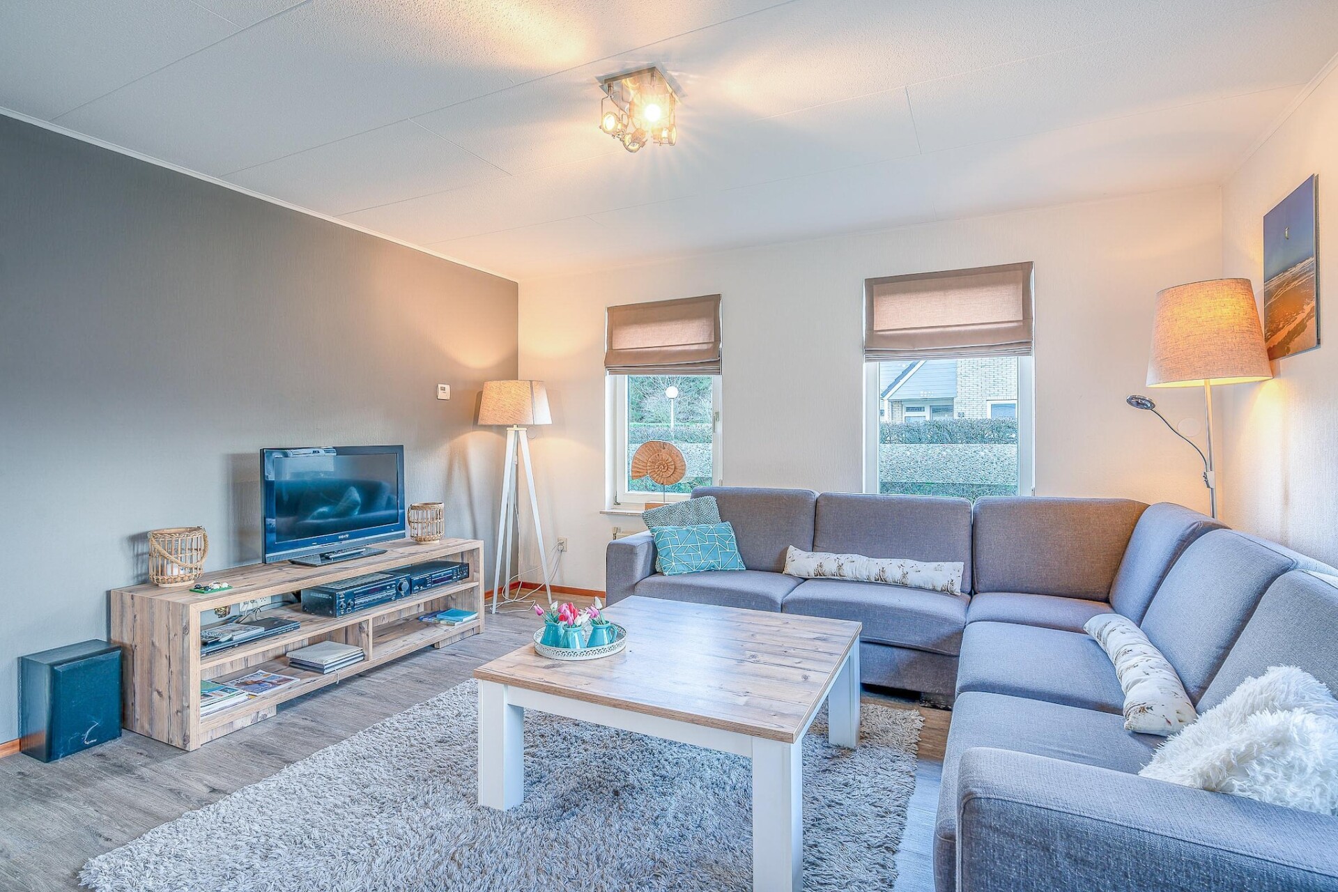 In de ruime lichte woonkamer is het heerlijk vertoeven, zeker wanneer de houtkachel lekker brandt. De open keuken is van alle gemakken voorzien. Er zijn in totaal drie slaapkamers aanwezig. Twee slaapkamers hebben ieder twee eenpersoons boxspring bedden en slaapkamer nummer 3 heeft een split level bed. De badkamer is uitgerust met een douche en een ligbad.