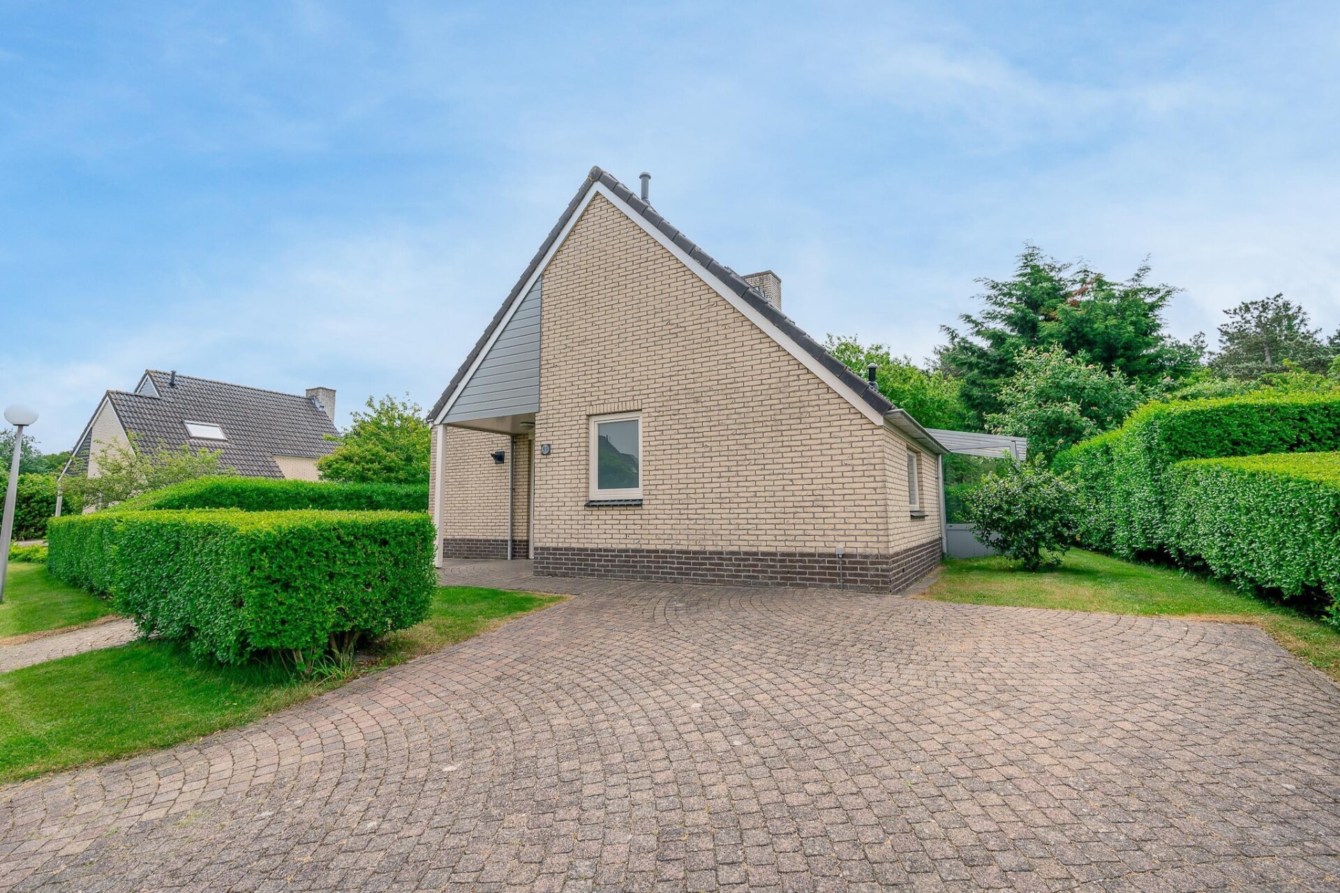 Vanuit de woonkamer kom je via de openslaande deuren op het terras en in de riante tuin, welke op het zuidwesten gelegen is. Het terras is voorzien van tuinmeubilair waaronder een loungeset. Voor kinderen is er een algemene speeltuin met een verschillende speeltoestellen nabij de villa. Er zijn twee privé parkeerplaatsen aanwezig,