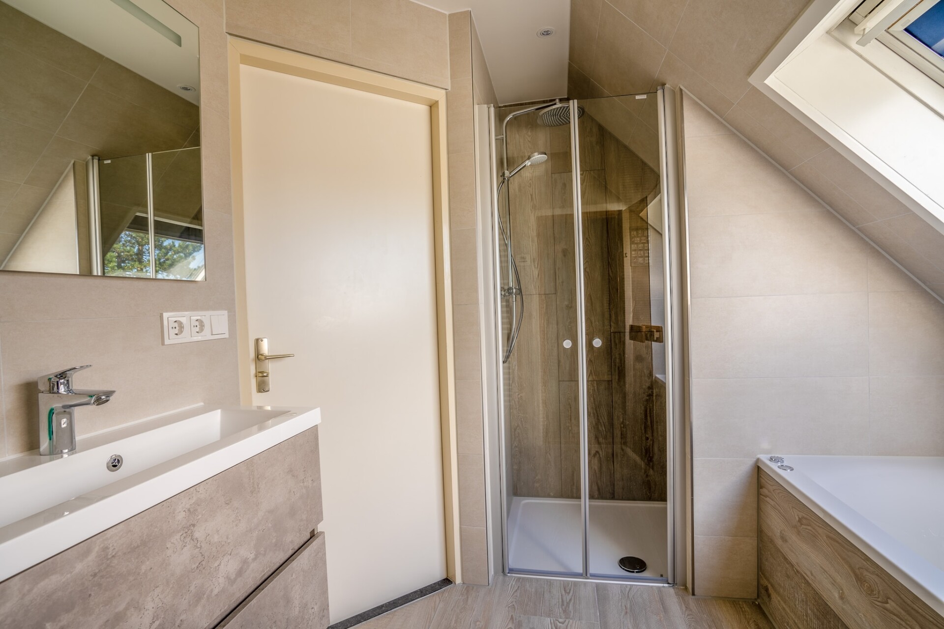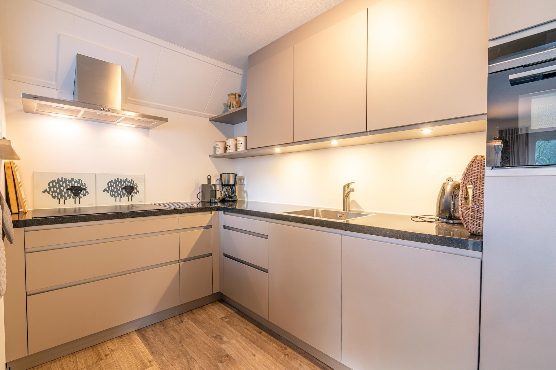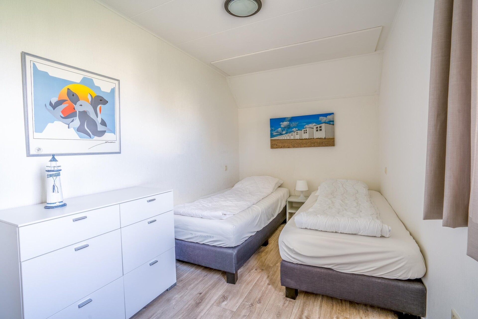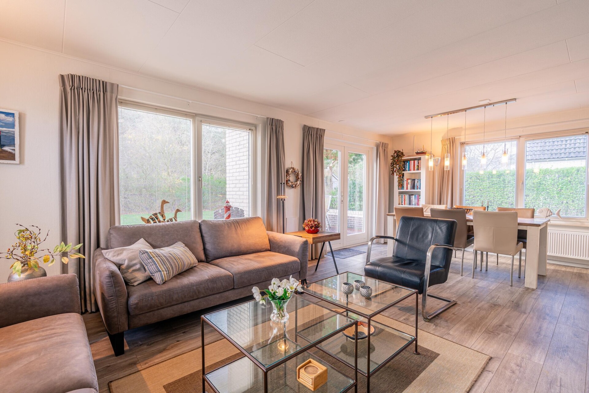 In de ruime lichte woonkamer is het heerlijk vertoeven. De open keuken is van alle gemakken voorzien. Er zijn in totaal drie slaapkamers aanwezig, één bevindt zich op de begane grond. Op de eerste verdieping bevinden zich twee slaapkamers met ieder twee eenpersoons boxspring bedden en beide een TV. De grote badkamer is uitgerust met een douche, ligbad en whirlpool en sauna.