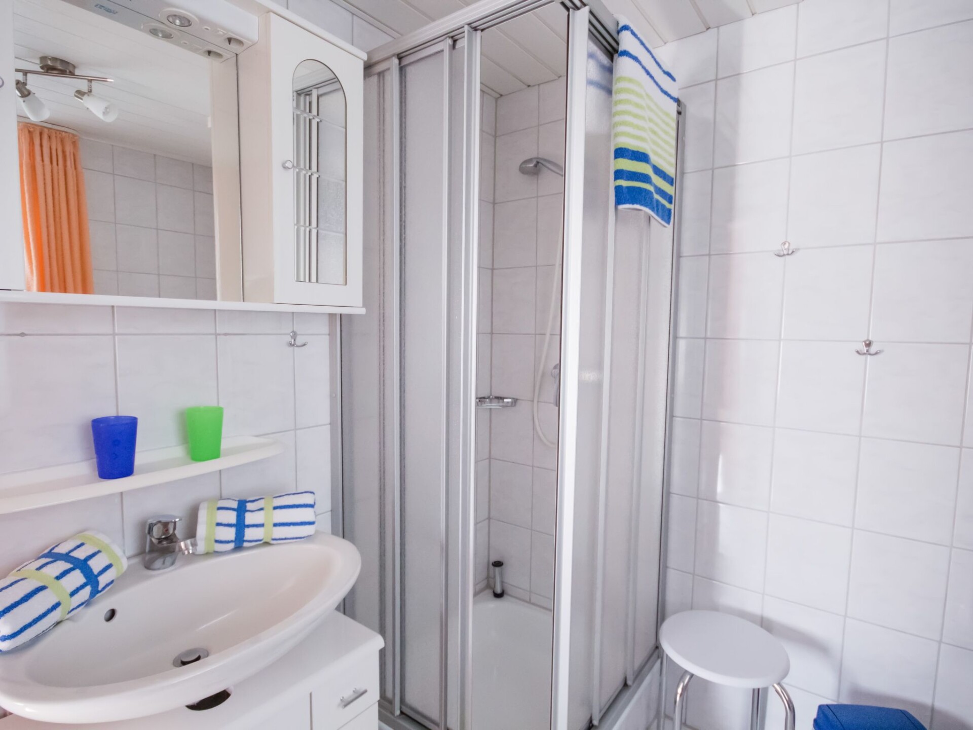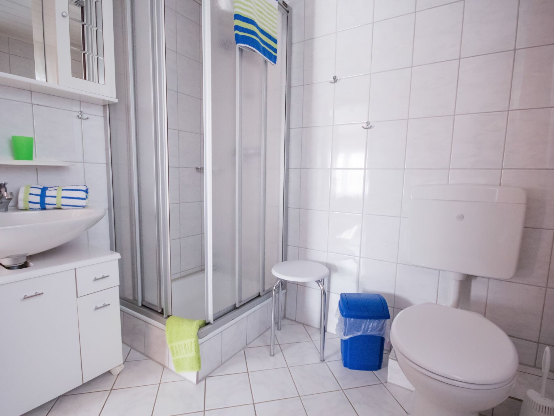 In our 2-room 43m² holiday flat you live very centrally, cosily and comfortably. The beach and centre are within easy walking distance. In the house Karin there are 3 holiday flats 2 holiday flats were classified with 4 stars and this holiday flat with 3 stars and a fixed adjoining flat is also in this house.our non-smoking 2-room 43m² large 1 upper floor holiday flat was lovingly, contemporary, bright, allergy-friendly equipped. Floors are tiled or laid with laminate. Our holiday flat has a west-facing balcony.In the eat-in kitchen, the holiday flat has a 4-burner touch plate cooker, fridge with freezer compartment, microwave with convection oven for pizza, kettle, coffee machine, toaster, blender, egg cooker, cooking utensils and crockery. Dining table with three chairs. Corner sofa with table, floor lamp, 80 flat screen TV with digital satellite TV and DvD portable radio with CD TV, mobile table and a sideboard. In the bedroom there is a double bed 1.80m wide with adjustable slatted frames a wardrobe and two bedside tables with touch lamps and a stool.bathroom with shower and shower cubicle, toilet, sink, stool, roll shelf, hairdryer and mirror cabinet with base cabinet hallway: wardrobe, mirror and shoe rack The hallway and the bathroom are tiled and the living room, bedroom is covered with laminate.partial renovation 2015 We have free W-Lan for you for failures and malfunctions we assume no liability.The balcony was equipped for exclusive use with 2x chairs with footstool a table and parasol. In 15 m distance is still a garden house with table football, table with 4 chairs and a grill ca.40m² races available for common use.there is no possibility to charge an electric car for this the house electricity is not designed fire hazard.Car parking space directly at the house, bicycles can be locked in the garage.The distance to the beach is about 900m. The beach is accessible via good paths, so that e.g. a pram or handcart can be taken along. The town centre with restaurants and supermarkets is approx. 800m away. Approx. 15 minutes on foot