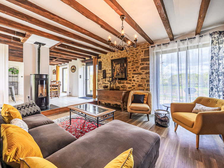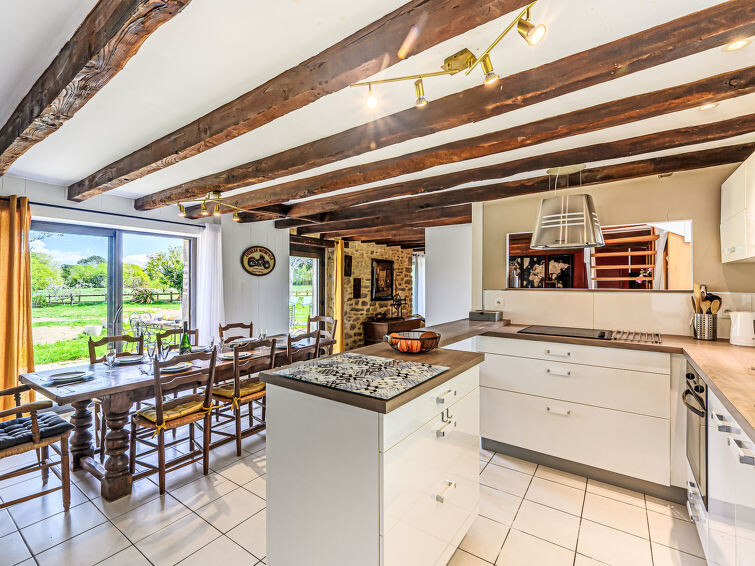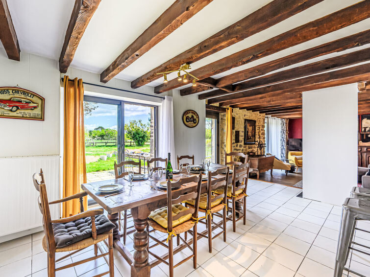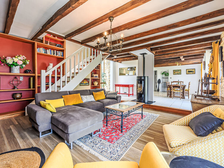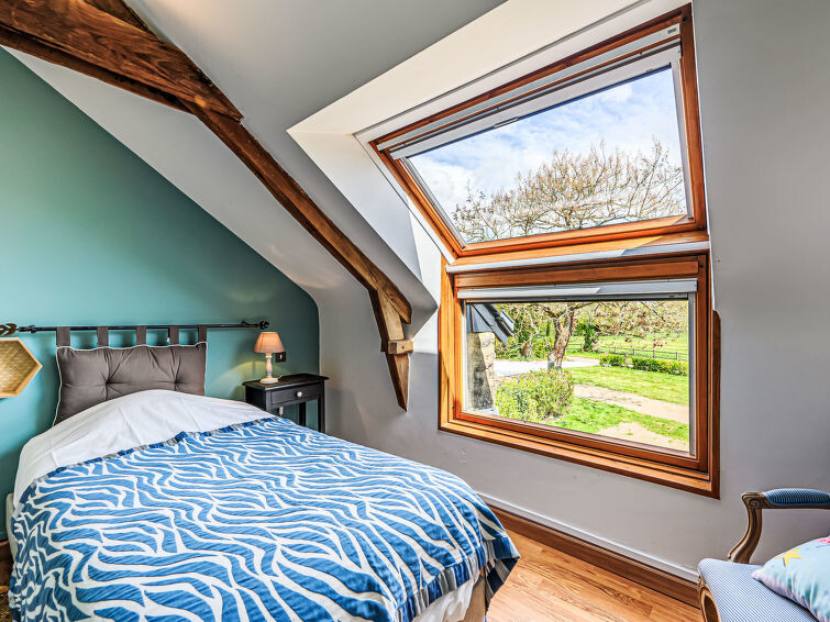 "Karvez", huis 5-kamers 157 m2. Comfortabel ingericht: woon-/eetkamer met TV (Flatscreen TV), tegelkachel. Uitgang naar de tuin. Keuken (3-pits kookplaat, oven, afwasmachine, broodrooster, waterkoker, magnetron, diepvriezer, elektrische koffiemachine). Aparte WC. Bovenverdieping: 2 kamers, elke kamer heeft 2 bedden (90 cm, lengte 190 cm). 1 kamer met 1 bed (90 cm, lengte 190 cm). 1 kamer met 1 2-pers bed (1 x 160 cm, lengte 190 cm), bad. Douche, aparte WC, dubbele wastafels. Aanbod door een particulier volgens art. 155, IV van CGI.