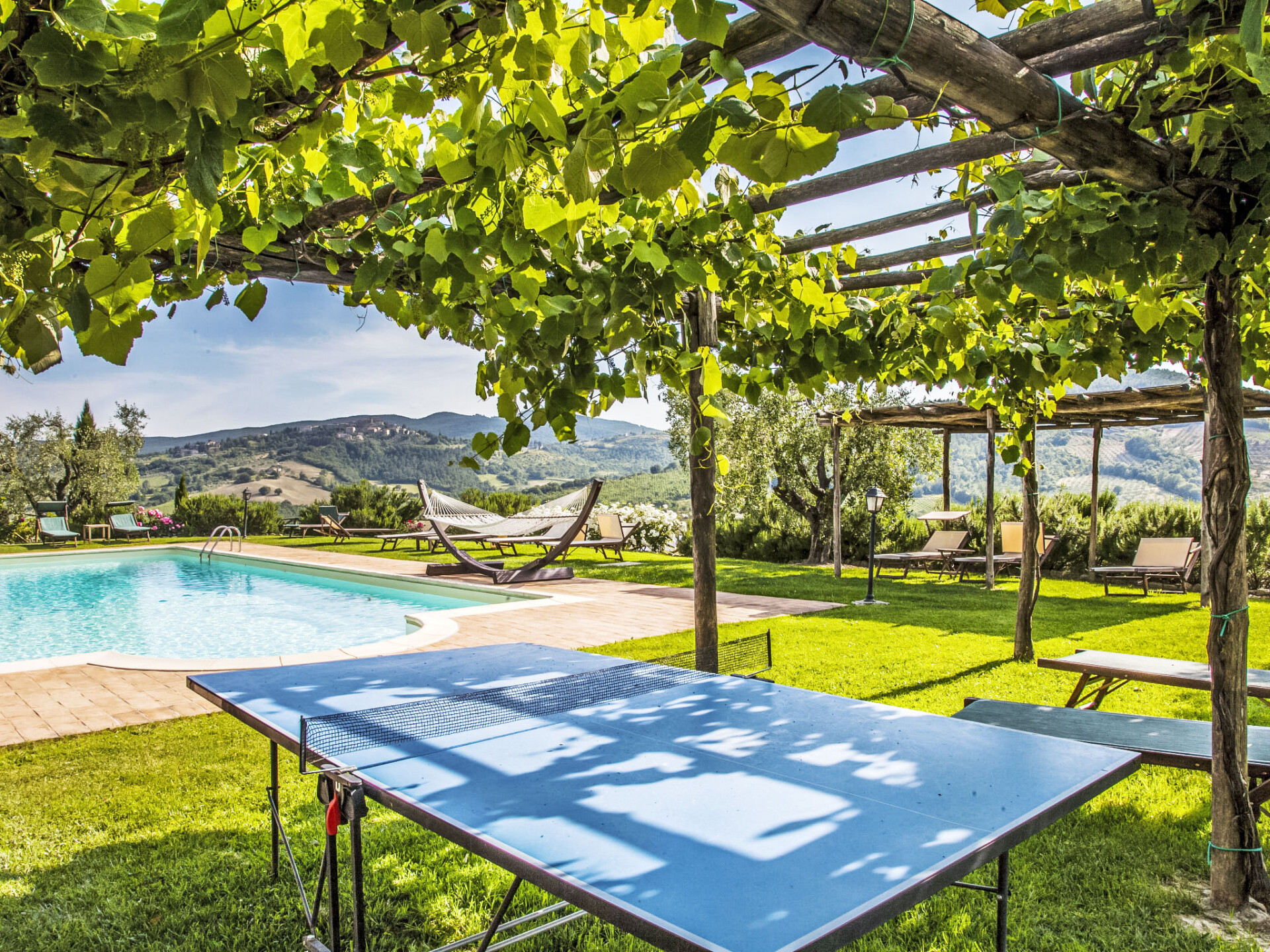 Oud plattelandshuis, zorgvuldig gerenoveerd en van alle gemakken voorzien. Panoramisch gelegen op een heuvel, in een park van 21 ha met uitzicht. Herenhuis "Allerona", gerenoveerd, omgeven door bomen, weiden en velden. 5 km van het centrum van Allerona, zonnige ligging op een heuvel, 37 km van het meer, te midden van groen. Voor medegebruik: park 20.000 m2, openluchtzwembad (7 x 14 m, 100 - 200 cm diepte, seizoensgebonden beschikbaarheid: 07.Apr. - 31.Okt.). Douche/WC bij het zwembad, tafeltennis, prieel, kinderspeelplaats. In het huis: internetaansluiting, wasmachine (voor medegebruik), verwarming alleen beschikbaar van 01.Nov. - 15.Apr.. Beschikbaar: fietsen (4), kinderfietsen (2). Toegangsweg (onverharde weg). Overdekte parkeerplaats. Supermarkt 8 km, restaurant 5 km, bushalte 6.1 km, treinstation "Allerona Scalo" 7 km, thermaalbad "Chianciano" 35 km, meer (zwemmen) "Bolsena" 37 km. Attracties in de buurt: Fabro 12 km, San Casciano Dei Bagni 17 m, Orvieto 19 km, Cetona 25 km, Città Della Pieve 26 km, Civita Di Bagnoregio 42 m. Auto noodzakelijk. De eigenaar woont in hetzelfde huis. Vergelijkbare accommodaties kunnen worden geboekt.