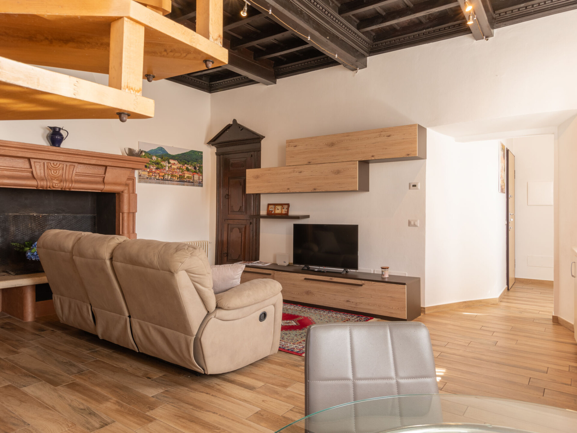 "Apartment Vista Brentano", appartement 3-kamers 80 m2 op 2 verdiepingen op de 1e verdieping. Ruim en licht, zeer comfortabel en modern ingericht: groot, open woon-/eetkamer met open haard (alleen decoratie), eettafel en Sat-TV (Flatscreen TV). Uitgang naar het terras. Open keuken (oven, afwasmachine, Gasfornuis, 4 kookpitten (vlammen), broodrooster, magnetron, diepvriezer, elektrische koffiemachine). Uitgang naar het terras. Douche/bidet/WC. Bovenverdieping: (wenteltrap), 1 2-pers. kamer met Sat-TV (Flatscreen TV). 1 kamer met 1 x 2 stapelbedden. Douche/bidet/WC. Gas-verwarming, air-conditioning. Verwarming alleen beschikbaar van 15.10. tot 15.04. Natuurstenen vloeren. Groot terras. Terrasmeubelen, zitgelegenheid. Mooi panoramazicht op het meer, de bergen en de plaats. Ter beschikking: wasmachine. Internet (WiFi, gratis). Parkeerplaats (overdekt, omheind, 1 Auto). Niet geschikt voor kinderen onder 4 jaar. Niet rokers woning. Rookmelders, brandblusser. IT013252C2GF8I63CA