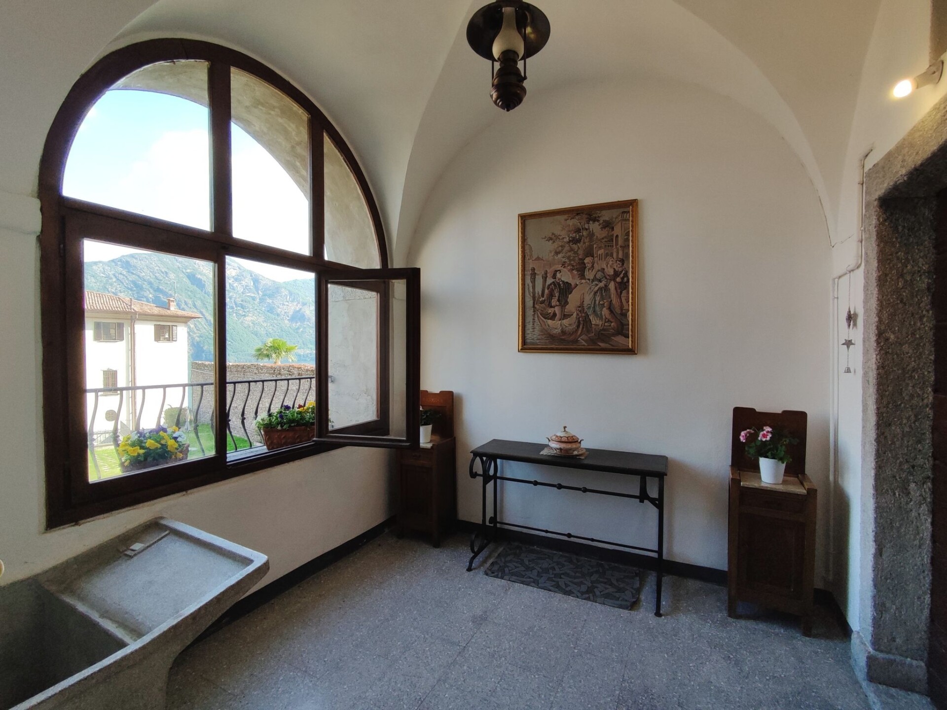 Historisch herenhuis "Vista Brentano Paradiso", eenzijdig aangebouwd, uit de 17e eeuw. 3 appartementen in de woning. Boven Mezzegra, in het gehucht Bonzanigo, 850 m van het centrum van Mezzegra, 30 km van het centrum van Como, 35 km van het centrum van Lugano, verhoogde ligging tegen een helling, 1 km van het meer. Toegangsweg tot 60 m voor aan het huis. 40 m trappenweg (15 treden) naar het huis. Gemeenschappelijke garage op 60 m. Winkel 900 m, supermarkt 3 km, restaurant 150 m, bar 900 m, bakkerij 1 km, bushalte "C10 (Como-Menaggio-Colico)" 900 m, treinstation "Como" 31 km, veerboot "Cadenabbia" 4 km, zandstrand "Lenno" 3 km kiezelstrand "Azzano" (klein), grasstrand "Parco Olivelli-Tremezzo" 2 km, 1 km, openluchtzwembad 8 km. Jachthaven 900 m, jachthaven 2 km, golfterrein (18 holes) 11 km, midgetgolf 8 km, wandelroutes 100 m vanaf het huis, kinderspeelplaats 400 m. Attracties in de buurt: Villa Carlotta-Tremezzo, Villa Balbianello-Lenno, Menaggio, Bellagio, Varenna, Como. Bekende meren kunnen gemakkelijk worden bereikt: Lago di Lugano. Wandelgebied Greenway del Lago di Como, San Benedetto in Val Perlana, Monte Galbiga. Niet geschikt voor kinderen onder 4 jaar. Een deel van het huis is afgesloten en niet bezet.