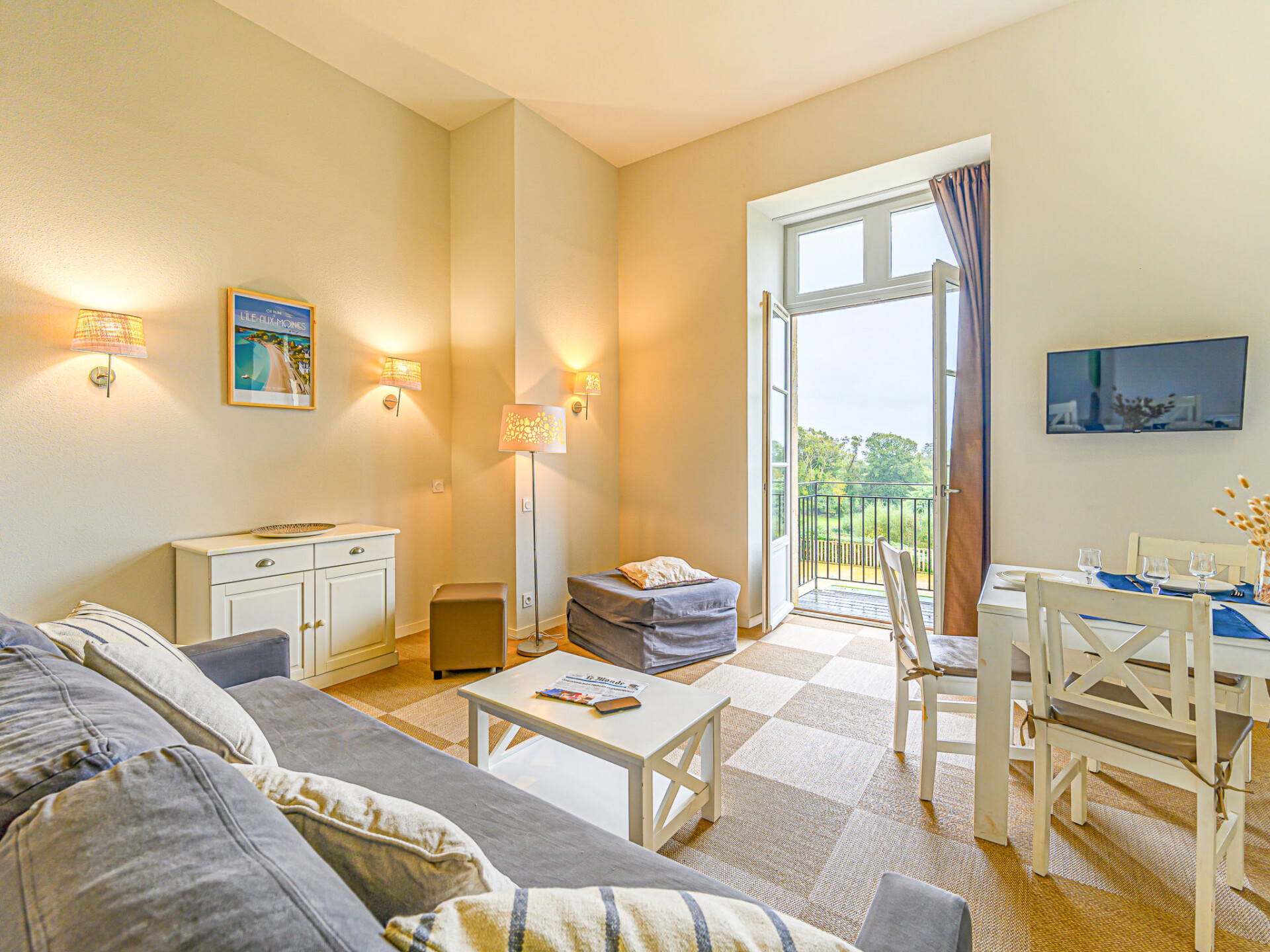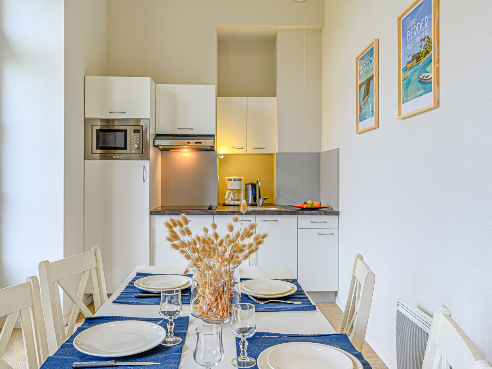 Mooi, historisch kasteel "Le Château de Kergonano", van 4 verdiepingen, uit de 17e eeuw, omgeven door bomen en velden. 2 huizen in de woning. 38 appartementen in de woning. 1.8 km van het centrum van Baden, 14 km van het centrum van Vannes, buiten de plaats, 10 km van het centrum van Auray, 3.5 km van zee, te midden van groen. Voor medegebruik: park 2 ha, verzorgde tuin met gazon en bomen, openluchtzwembad omheind (12 x 6 m, seizoensgebonden beschikbaarheid: 01.Apr. - 30.Sep.). In het complex: wasmachine (extra) (voor medegebruik). Parkeerplaats op het terrein. Levensmiddelenwinkel 1.8 km, supermarkt 700 m, restaurant 3 km, bakkerij 700 m, bushalte "Baden centre" 1.5 km, zandstrand "Sept Iles" 3.5 km, thermaalbad "Thalazur Carnac". Jachthaven 6 km, golfterrein (18 holes) 2 km, zeilschool 6 km, manege 4 km. Attracties in de buurt: Le Golfe du Morbihan, Les îles du Golfe du Morbihan, Auray 10 km, Vannes 15 km, Presqu'ile de Quiberon 30 km, Belle île en Mer, Houat Hoedic. Wandelgebied Chemins des Douaniers, Le Tour de Bretagne GR34. De sleuteloverdracht vindt plaats bij het agentschap Interhome in Le Bono, 4 km.