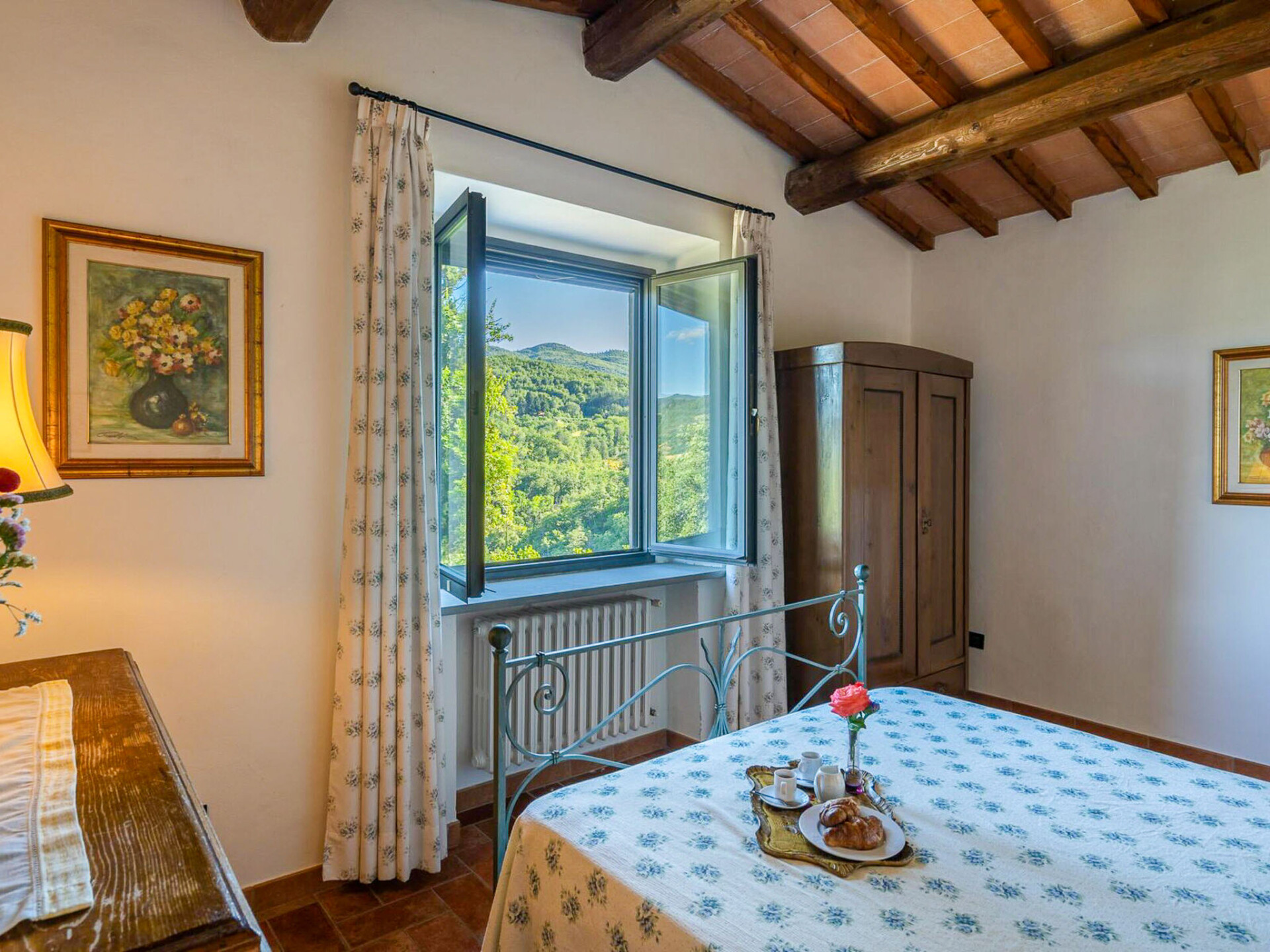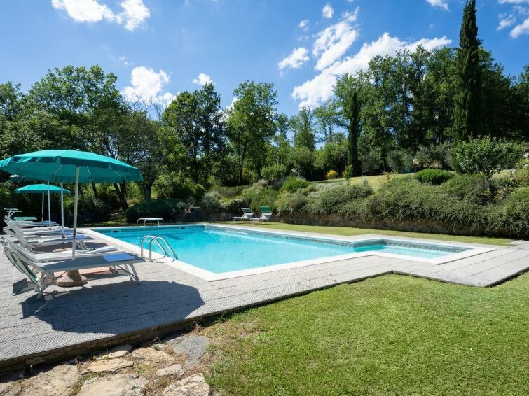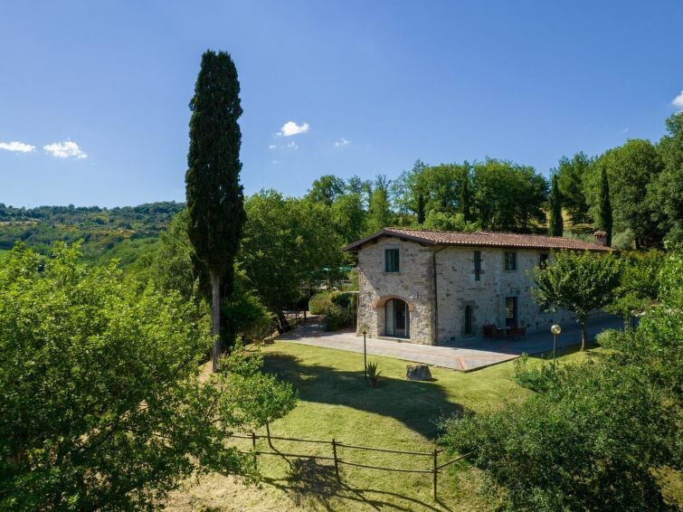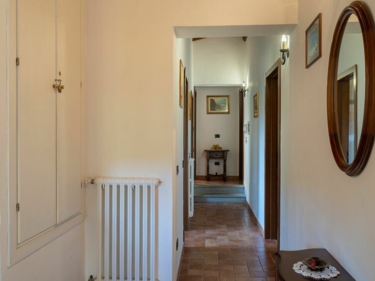 Fraai boerenhuis, behoedzaam gerenoveerd, gelegen in de groene heuvels van de Mugello, tussen Vicchio en Dicomano, met een weids uitzicht op het dal. Herenhuis "La Badia", 300 m boven zeeniveau. 4.5 km van het centrum van Dicomano, 38 km van het centrum van Firenze, rustige, zonnige, verhoogde ligging, te midden van groen. Voor alleengebruik: terrein 8.000 m2 (omheind), openluchtzwembad (6 x 12 m, 120 - 220 cm diepte, seizoensgebonden beschikbaarheid: 01.Apr. - 31.Okt.). Kinderzwembad, buitendouche, tuinmeubelen, barbecue. In het huis: centrale verwarming, Verwarming ter plaatse te betalen, verwarming alleen beschikbaar van 01.Nov. - 04.Apr.. Toegangsweg tot 500 m voor aan het huis (onverharde weg). Parkeerplaats op het terrein. Winkel 4.5 km, levensmiddelenwinkel 4.5 km, treinstation "Dicomano" 4.5 km. In de tuin (omheind, met hek) bevindt zich een zwembad voor kinderen (3 x 3 m, diepte 75 cm). Mogelijkheid voor wandelingen en ruitertochten.