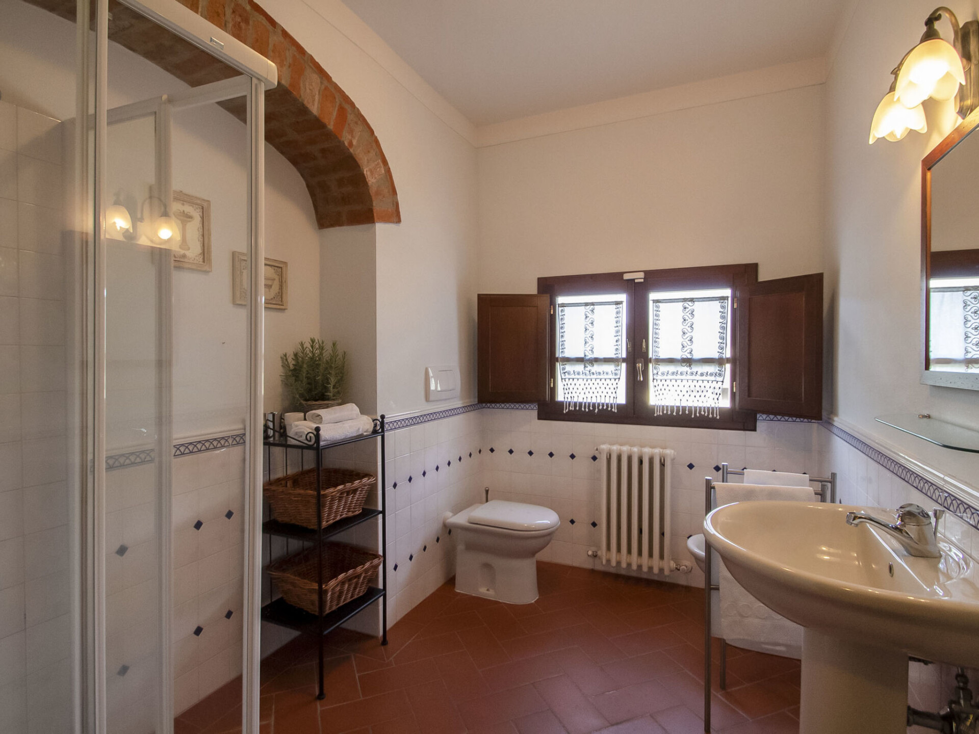 Herenhuis "Filicaia", 150 m boven zeeniveau. 5 appartementen in de woning. 3.8 km van het centrum van San Giovanni Valdarno, 18 km van het centrum van Gaiole in Chianti, 26 km van het centrum van Radda in Chianti, rustige, zonnige ligging, te midden van groen. Voor medegebruik: openluchtzwembad (12 x 6 m, 120 - 200 cm diepte, seizoensgebonden beschikbaarheid: 03.Mei. - 27.Sep.). Buitendouche, tuinmeubelen, barbecue. In het huis: centrale verwarming, wasmachine (voor medegebruik, extra), Verwarming ter plaatse te betalen, verwarming alleen beschikbaar van 01.Nov. - 04.Apr.. Parkeerplaats op het terrein. Winkel 3.8 km, supermarkt 9.9 km, restaurant 4 km, bushalte 1.5 km, thermaalbad "Rapolano Terme" 48 km. Attracties in de buurt: Castello di Meleto 21 km, Greve in Chianti 29 km, Castellina in Chianti 33 km, Panzano in Chianti 34 km, Firenze 47 km, Siena 49 km. De eigenaar woont op hetzelfde terrein.