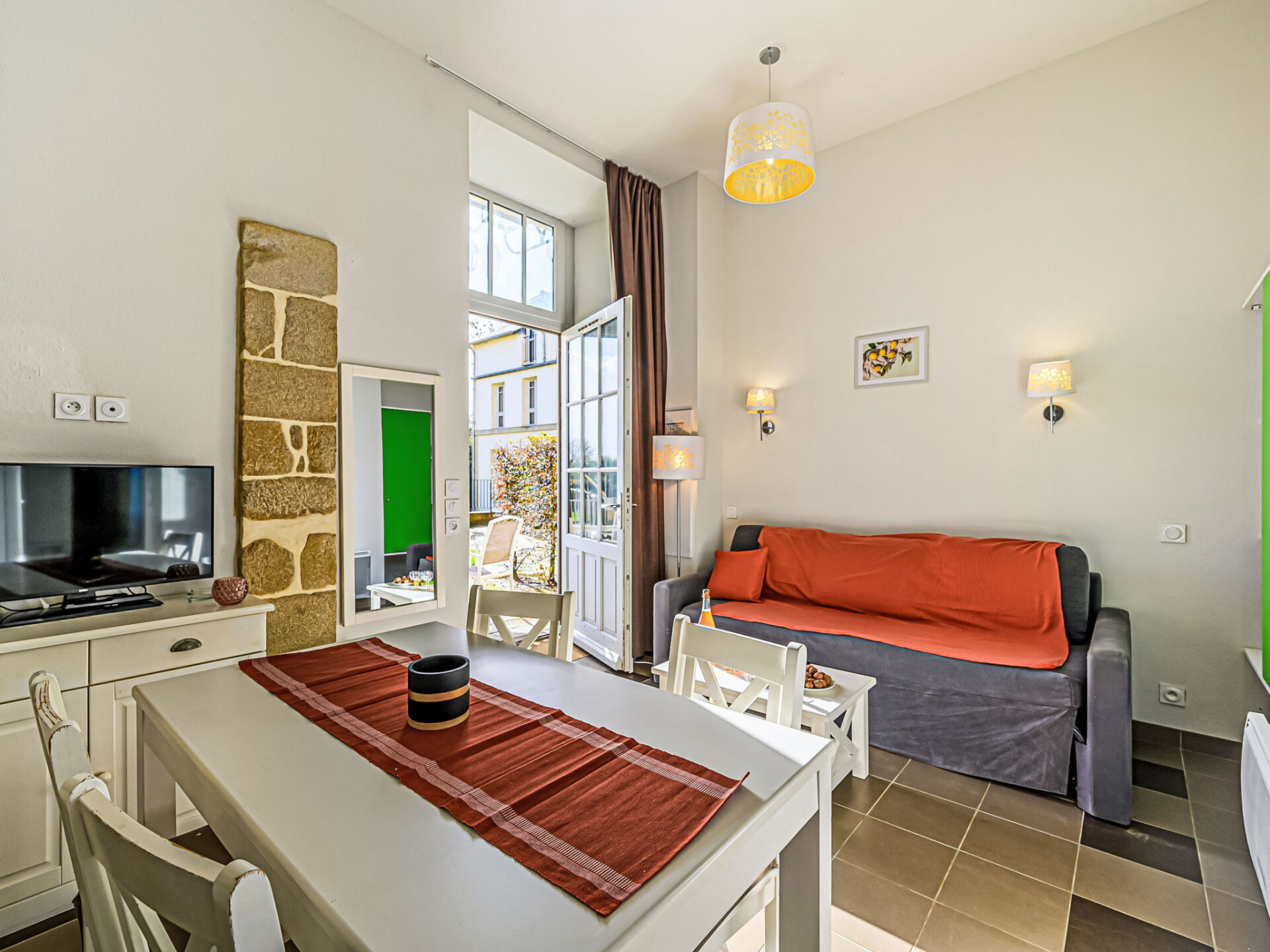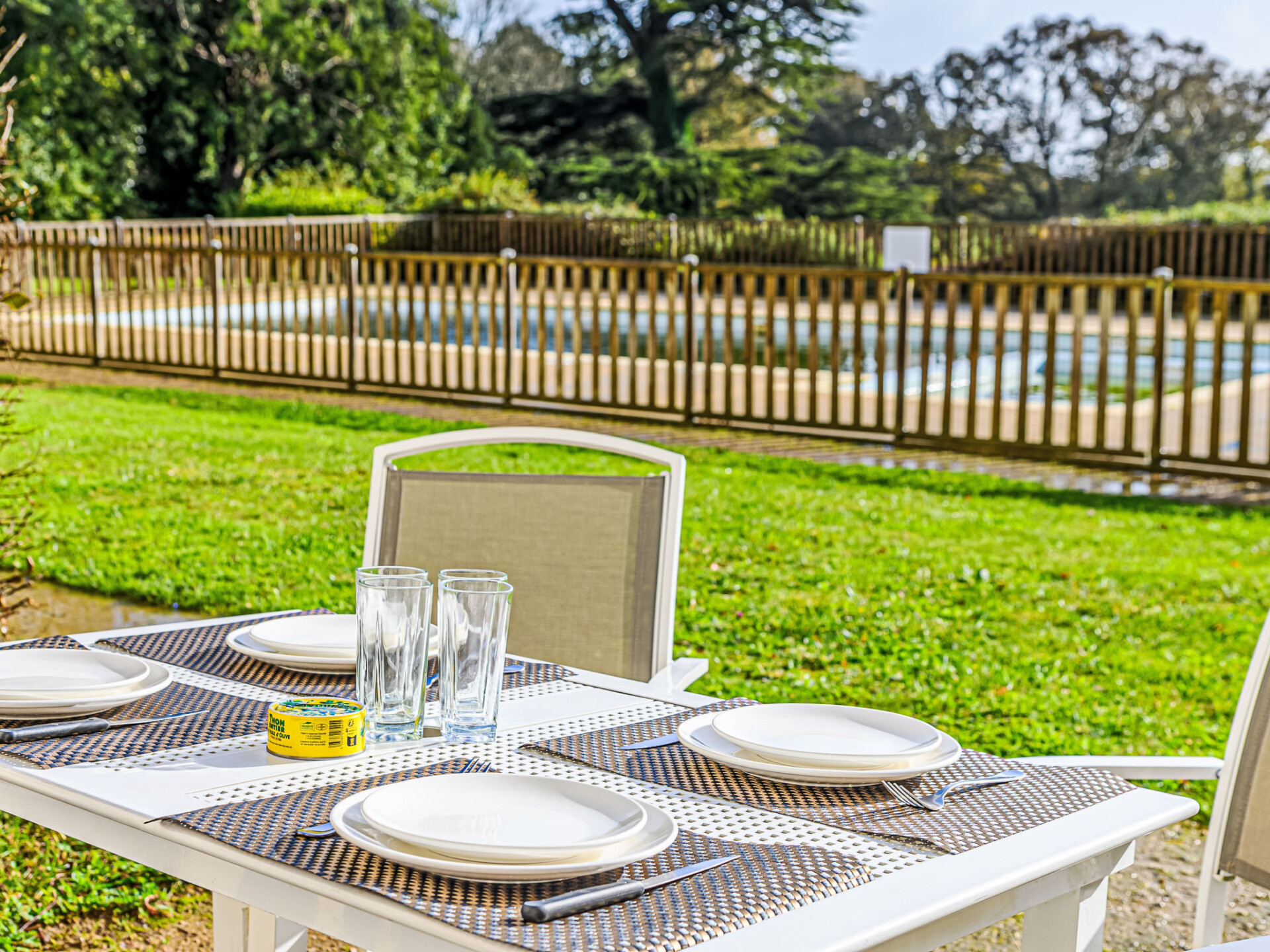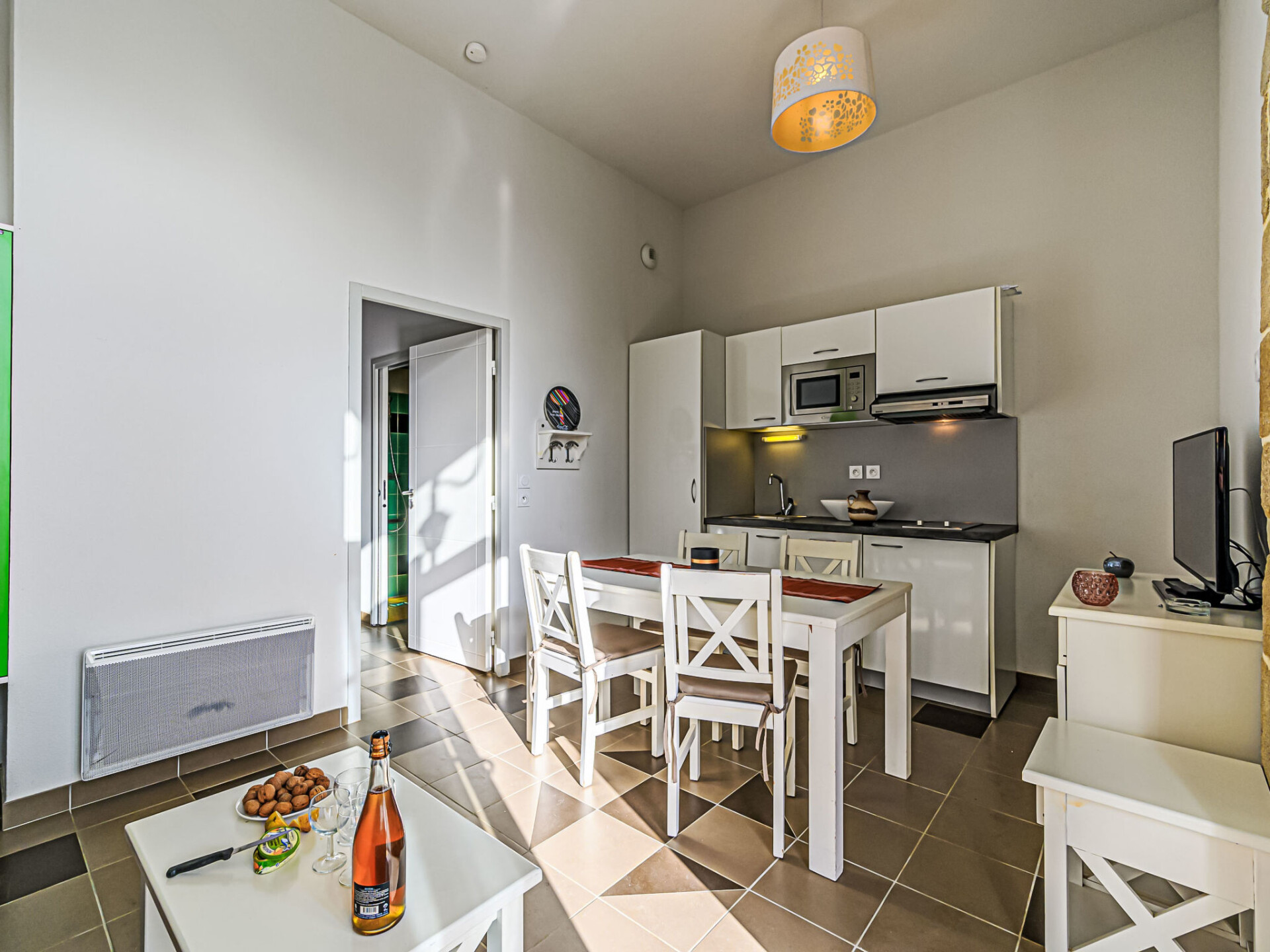 "Château De Kergonano", appartement 2-kamers 27 m2, op de begane grond. Comfortabel ingericht: woon-/slaapkamer met 1 divanbed (140 cm, lengte 190 cm), TV (Flatscreen TV). Uitgang naar het terras. 1 kamer met 1 2-pers bed (1 x 160 cm, lengte 190 cm). Keuken (afwasmachine, 2 keramische glas kookplaten, broodrooster, waterkoker, magnetron, elektrische koffiemachine) met elektrische verwarming. Douche/WC. Klein terras. Terrasmeubelen. Uitzicht op het zwembad en de tuin. Ter beschikking: Internet (WiFi, extra). Parkeerplaats. 1 klein huisdier/hond toegestaan. Rookmelders. Aanbod door een particulier volgens art. 155, IV van CGI.
