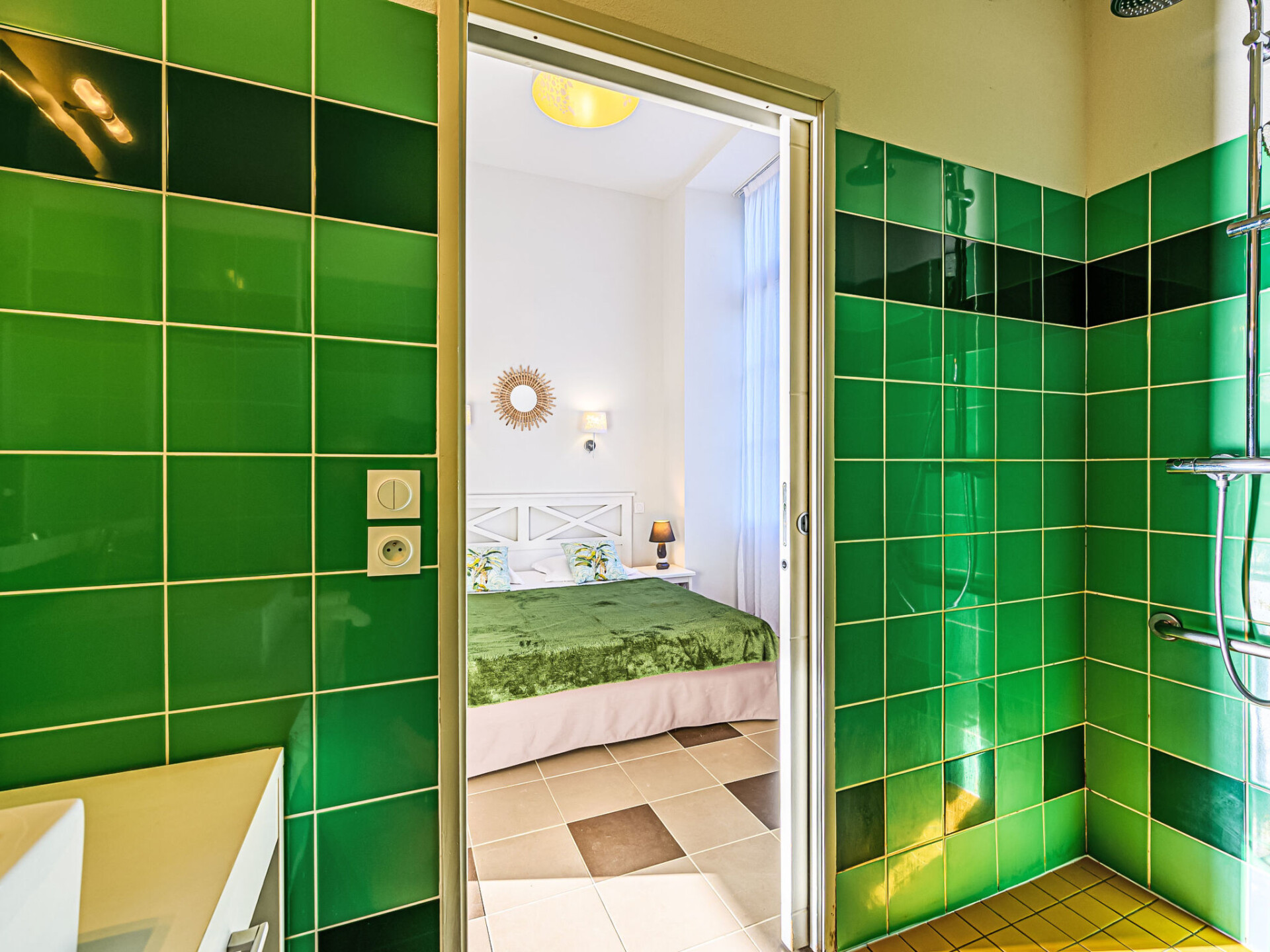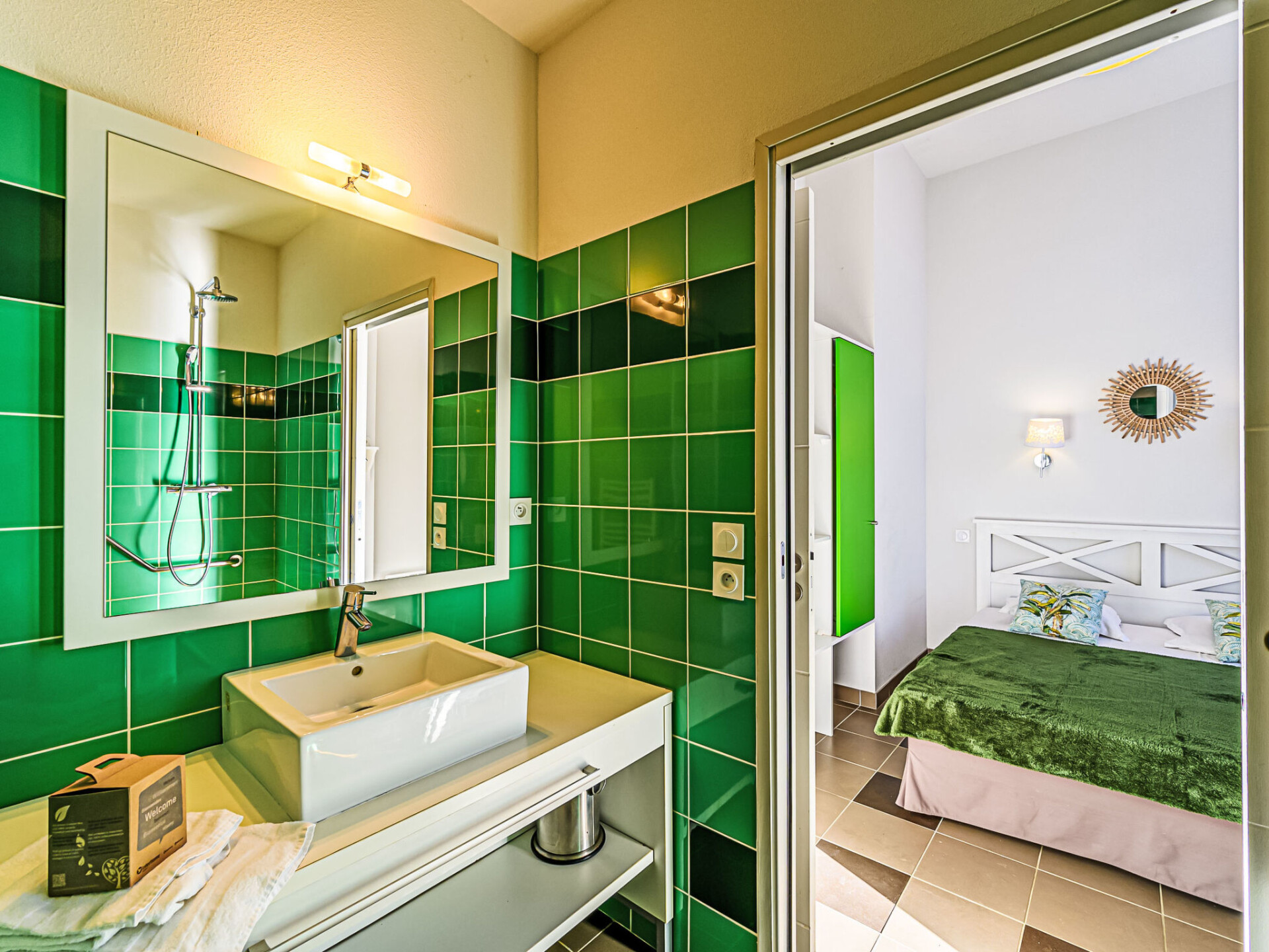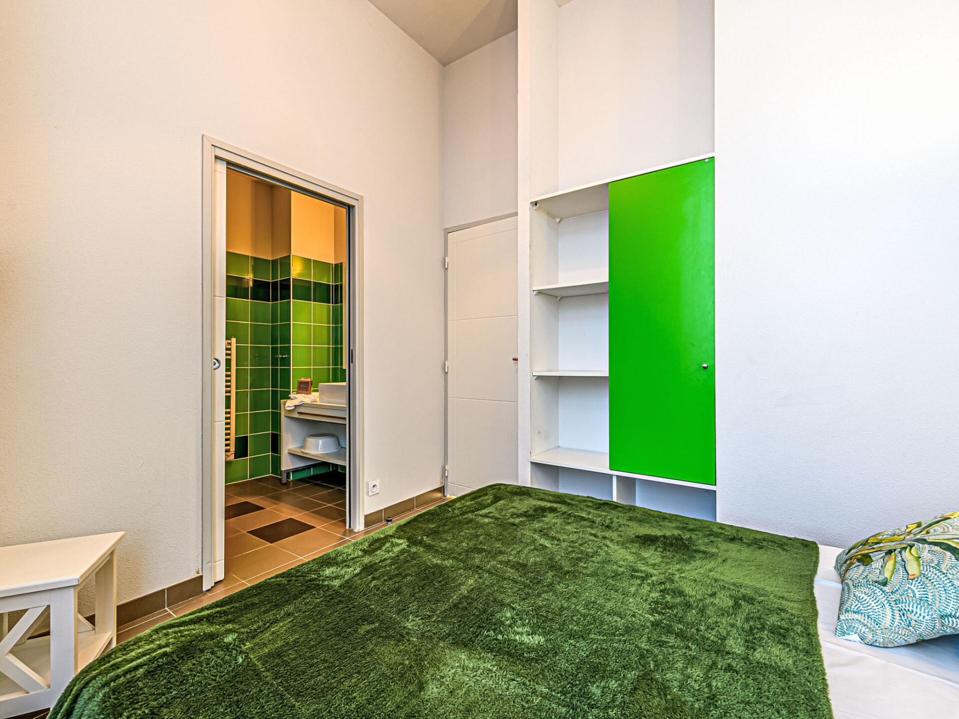 "Château De Kergonano", appartement 2-kamers 27 m2, op de begane grond. Comfortabel ingericht: woon-/slaapkamer met 1 divanbed (140 cm, lengte 190 cm), TV (Flatscreen TV). Uitgang naar het terras. 1 kamer met 1 2-pers bed (1 x 160 cm, lengte 190 cm). Keuken (afwasmachine, 2 keramische glas kookplaten, broodrooster, waterkoker, magnetron, elektrische koffiemachine) met elektrische verwarming. Douche/WC. Klein terras. Terrasmeubelen. Uitzicht op het zwembad en de tuin. Ter beschikking: Internet (WiFi, extra). Parkeerplaats. 1 klein huisdier/hond toegestaan. Rookmelders. Aanbod door een particulier volgens art. 155, IV van CGI.