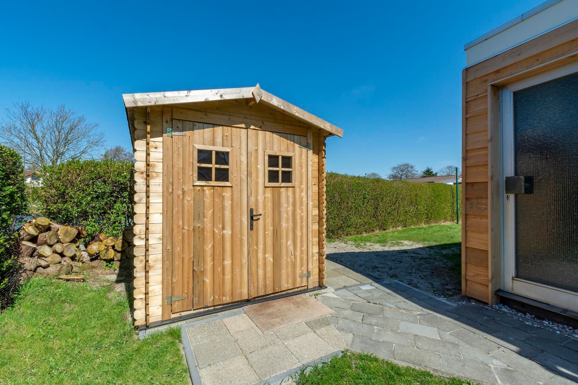 Een van de opvallende kenmerken van deze bungalow is de gezellige tuinkamer, die een unieke semi-buitenervaring biedt, ideaal om te genieten van de zon in de lente en herfst. De uitnodigende woonkamer is comfortabel ingericht, compleet met een ruime eettafel en een gezellige zithoek. De volledig uitgeruste keuken zorgt ervoor dat u alles heeft wat u nodig hebt om samen maaltijden te bereiden. Met drie ruime slaapkamers, elk met comfortabele bedden, en een moderne badkamer met inloopdouche, heeft het alle voorzieningen voor een ontspannen verblijf. De omheinde tuin is vooral gunstig voor gezinnen met kinderen of huisdieren, omdat het een veilige ruimte biedt om te spelen en te ontdekken. Maximaal twee honden zijn welkom om mee te nemen op vakantie.