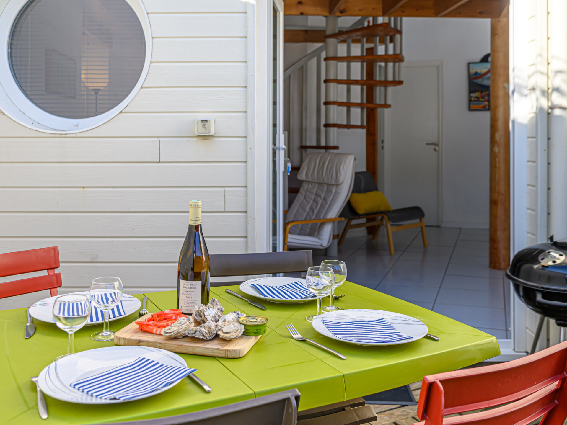 Huis 2-kamers 45 m2 op 2 verdiepingen. Mooi ingericht: woon-/eetkamer met TV en DVD. Uitgang naar het terras. 1 kamer met 1 2-pers bed (140 cm). Open keuken (4-pits kookplaat, oven, afwasmachine, magnetron) met radio. Douche, aparte WC. Bovenverdieping: (wenteltrap) galerij met 1 2-pers divanbed. Elektrische verwarming. Klein terras 5 m2, op het zuidoosten gelegen. Terrasmeubelen, barbecue. Ter beschikking: wasmachine, strijkijzer, kinderbed tot 2 jaar. Internet (WiFi, extra). Maximaal 1 huisdier/hond toegestaan. Rookmelders. In plaats van een afgesloten slaapkamer bevinden sommige slaapgedeeltes zich in een open ruimte (galerij, nis, etc.). 56234 000209 2X