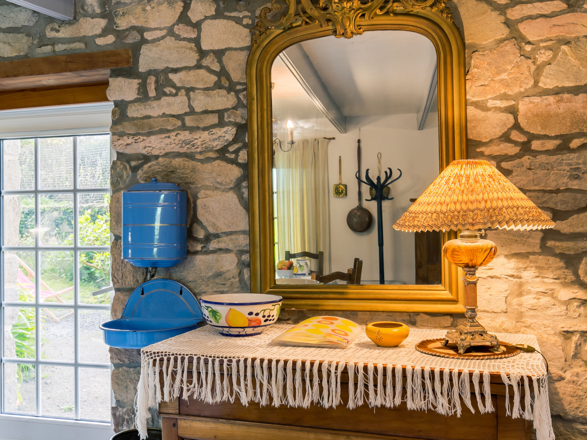 Kleine, gezellige, rustieke cottage "Keranna". 700 m van het centrum van Lampaul-Ploudalmézeau, 3 km van het centrum van Ploudalmézeau, 12 km van het centrum van Lannilis, 800 m van zee, 800 m van het strand, aan een doodlopende weg. Voor alleengebruik: terrein 180 m2 (omheind), gazon en planten. Toegangsweg (300 m onverharde weg). Parkeerplaats op het terrein. Winkel 3.5 km, supermarkt 4 km, restaurant 3.5 km, bakkerij 3.5 km, bushalte 3 km, zandstrand "Plage des 3 Moutons" 800 m, overdekt zwembad 15 km. Jachthaven 5 km, golfterrein (18 holes) 18 km, surfschool 10 km, zeilschool 6 km, wandelroutes 10 m vanaf het huis. Attracties in de buurt: Eglise Saint-Paul-Aurélien 200 m, Kitesurf 506 m, Port de Portsall 5 km, Pointe de St.Mathieu 33 km, Brest, Océanopolis 30 km, Le Conquet, départs Ouessant et Molène 32 km.
