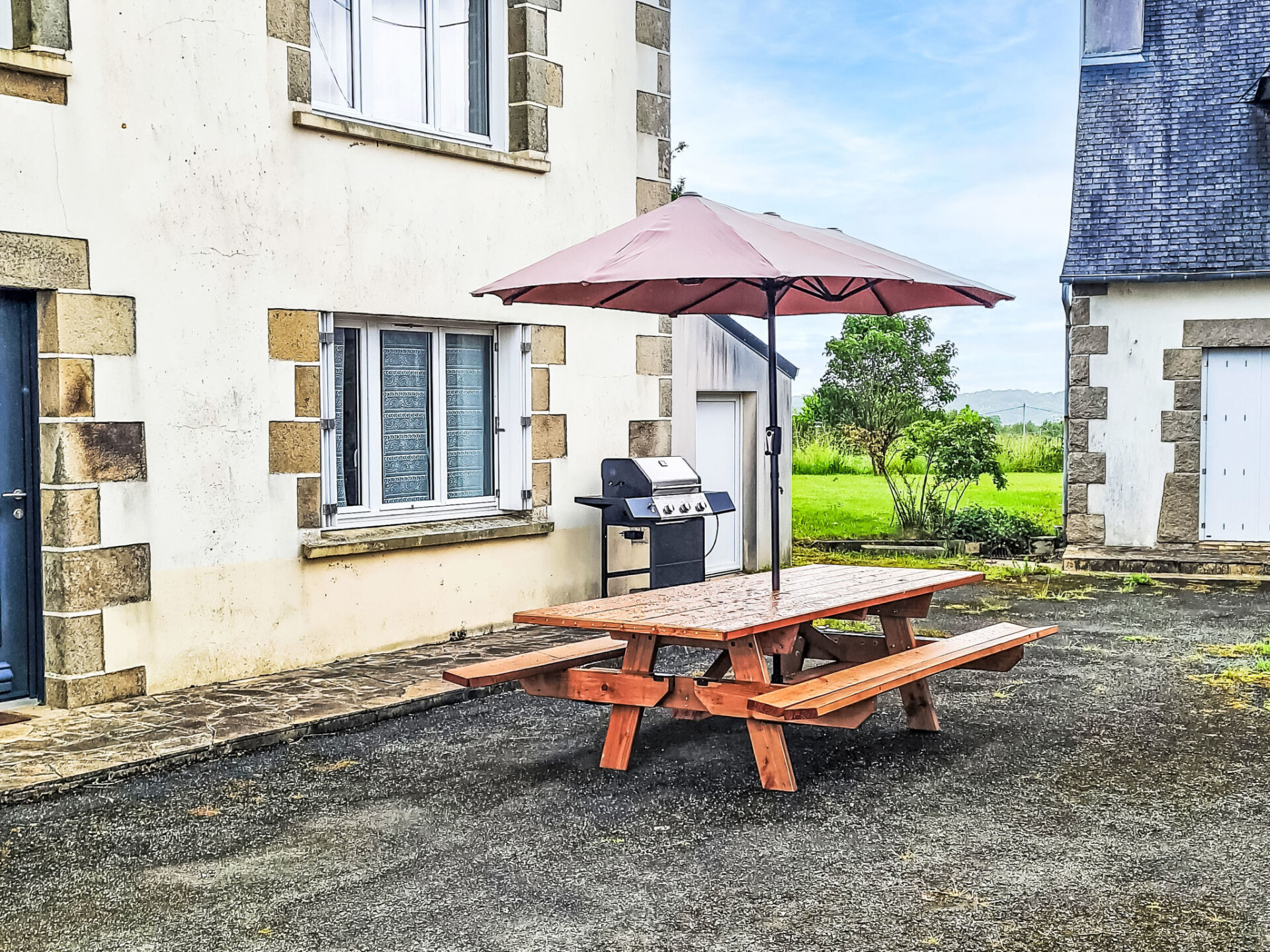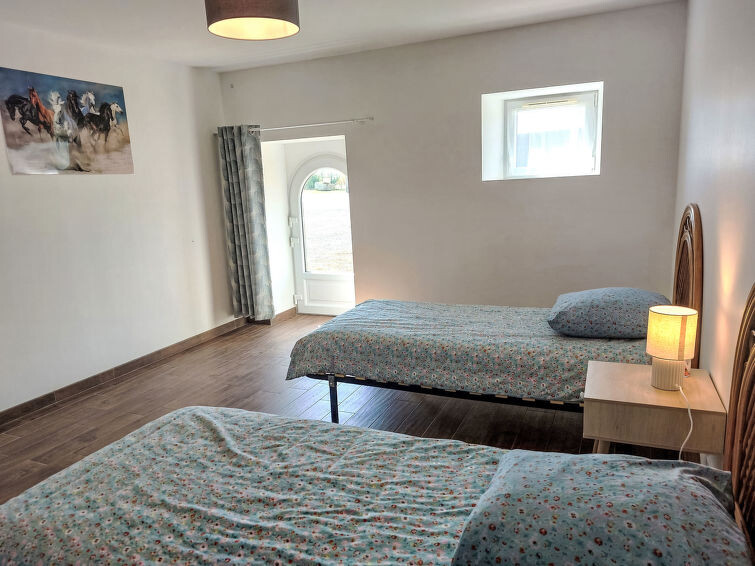 "Kerdro", woonboerderij 5-kamers 150 m2 op 2 verdiepingen. Ruim, gerenoveerd in 2024, mooi en gezellig ingericht: open woonkamer 30 m2 met TV (Flatscreen TV). Uitgang naar het terras. 1 kamer 14 m2 met 1 2-pers bed (140 cm, lengte 190 cm). 1 kamer 24 m2 met 2 bedden (90 cm, lengte 190 cm). Groot, open keuken 30 m2 (oven, afwasmachine, 3 inductiekookplaten, broodrooster, waterkoker, magnetron, diepvriezer, elektrische koffiemachine) met bar, eettafel. Uitgang naar de tuin. Bad/douche, aparte WC. Bovenverdieping: 1 kamer 24 m2 met 1 2-pers bed (140 cm, lengte 190 cm). 1 kamer 14 m2 met 1 2-pers bed (140 cm, lengte 190 cm). Douche, aparte WC. Elektrische verwarming. Ter beschikking: wasmachine, strijkijzer. Rookvrij huis. Maximaal 1 huisdier/hond toegestaan. Rookmelders. Bedindeling is flexibel. Er zijn meer slaapmogelijkheden beschikbaar dan het maximaal toegestane aantal personen dat echter niet mag worden overschreden. Aanbod door een particulier volgens art. 155, IV van CGI.