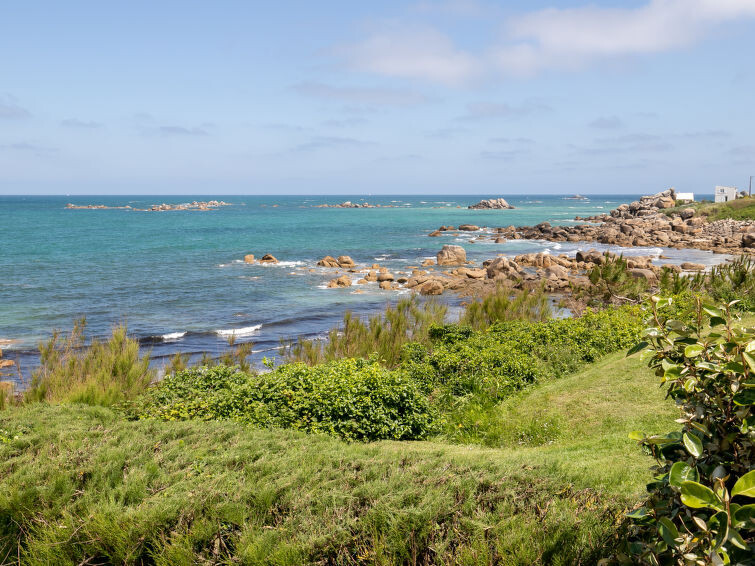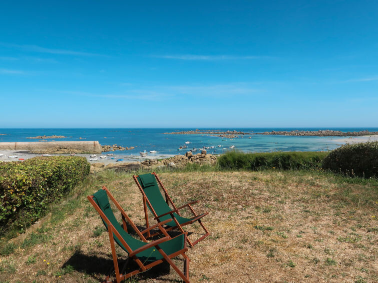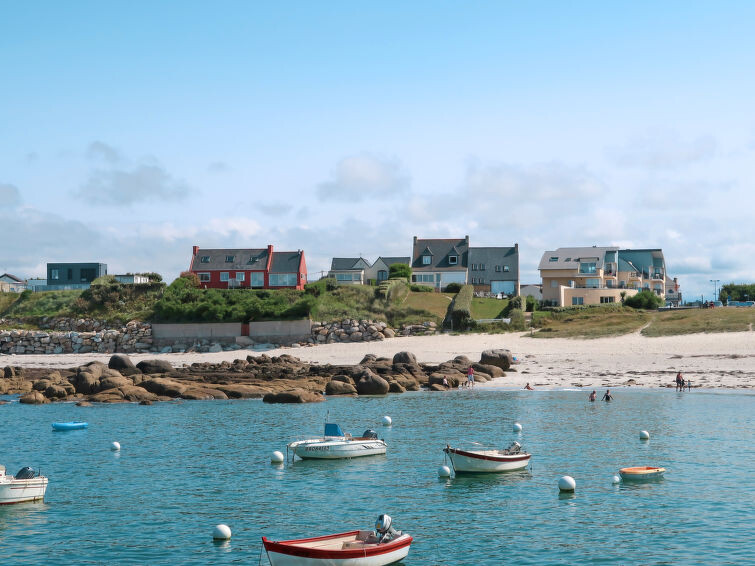 Kleine, gezellige twee onder één kap woning "Kereol". In de wijk Kerfissien, 6.6 km van het centrum van Cléder, 4 km van het centrum van Plouescat, tegen een helling, 40 m van zee, 40 m van het strand, directe toegang tot het strand. Voor medegebruik: terrein 400 m2 met wilde tuin, weide. In het huis: bergruimte voor fietsen. Parkeerplaats op het terrein. Winkel 4 km, supermarkt 6 km, restaurant 4 km, bakkerij 4 km, bushalte 4 km, zandstrand "Les Amiets" 800 m, thermaalbad "Thalasso Roscoff" 21 km. Golfterrein (9 holes) 4 km, surfschool 2 km, zeilschool 2 km, wandelroutes 40 m vanaf het huis. Attracties in de buurt: Roscoff, Jardin exotique, Île de Batz 21 km, Château de Kerjean 15 km, Reserve ornithologique Dunes de Keremma 13 km, Meneham, Kerlouan 23 km, Morlaix 35 km, Oceanopolis Brest 58 km. Wandelgebied GR34, sentier des douaniers 200 m.