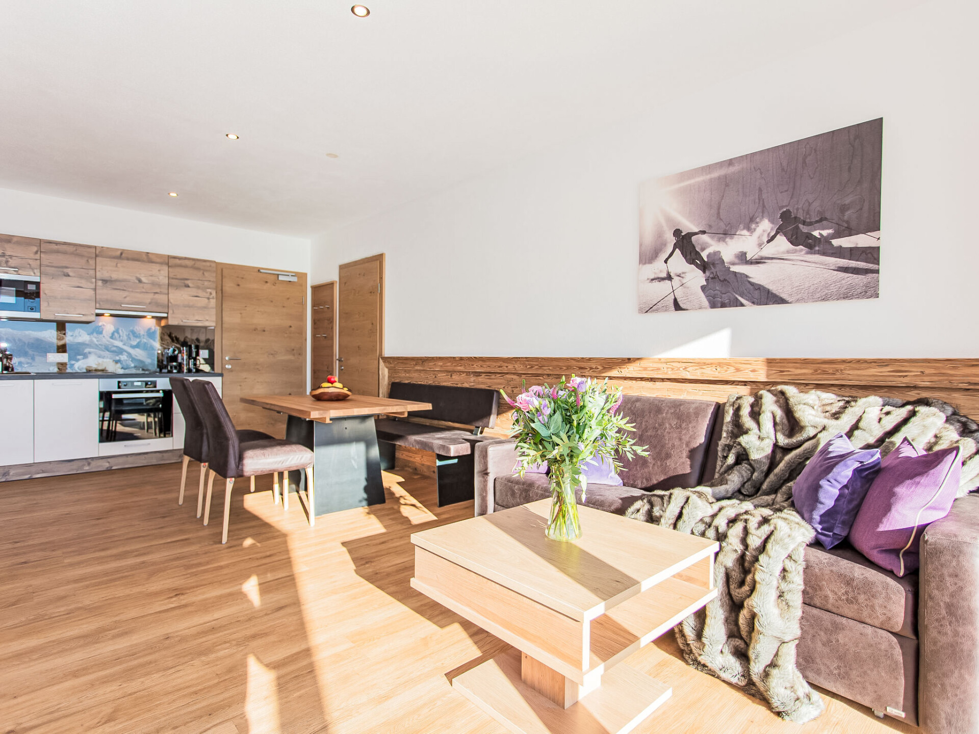 "Kitzsteinhorn", appartement 2-kamers 48 m2, souterrain. Het objekt is geschikt voor 4 volwassenen. Licht, modern en gezellig ingericht: 1 2-pers. kamer met Sat-TV (Flatscreen TV). Uitgang naar het balkon. Groot woon-/slaapkamer met 1 2-pers divanbed, eettafel en Sat-TV (Flatscreen TV). Uitgang naar het balkon. Open keuken (oven, afwasmachine, 2 keramische glas kookplaten, magnetron, diepvriezer, elektrische koffiemachine). Douche/WC. Groot balkon 19 m2. Balkonmeubilair. Zeer mooi panoramazicht op de bergen en het landschap. Ter beschikking: haardroger. Internet (Internet (WiFi), gratis). Parkeerplaats (overdekt, 1 Auto). Geschikt voor families. Niet rokers woning. Rookmelders. 50628-001444-2020