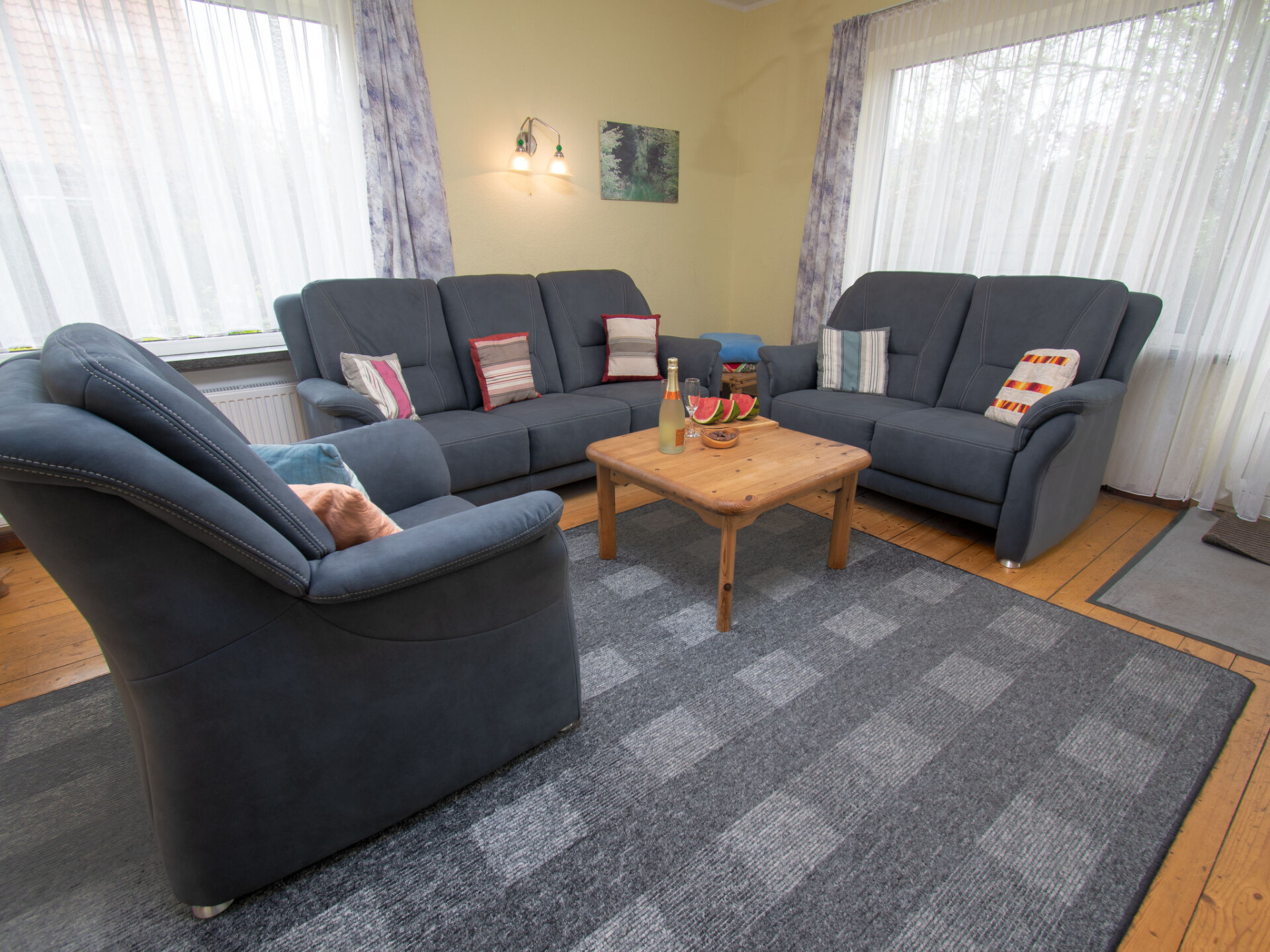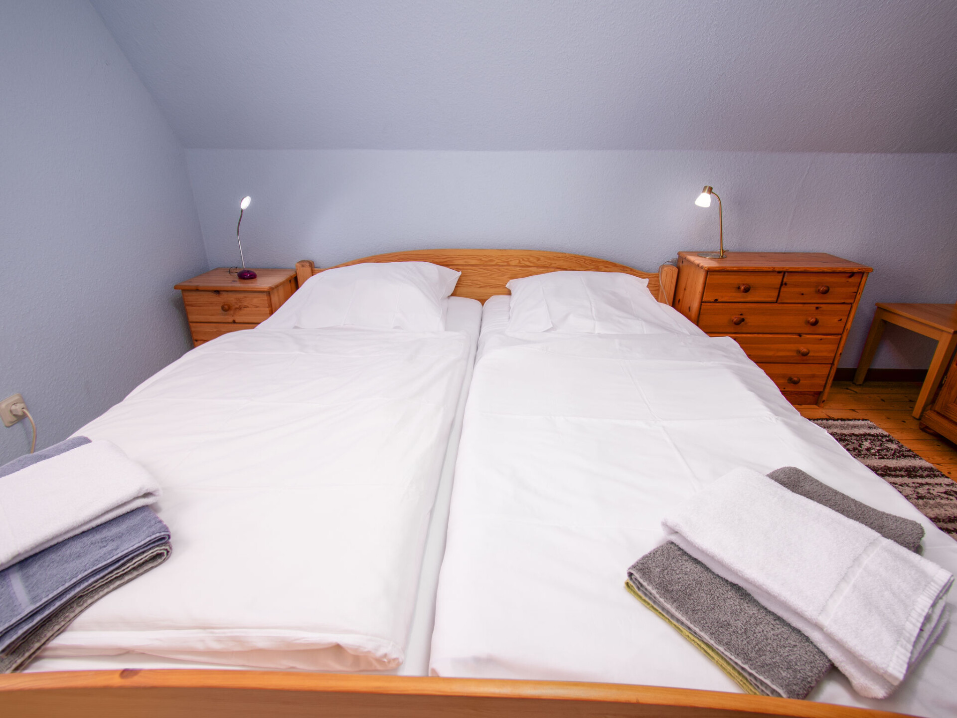 Huis 5-kamers 100 m2 op 2 verdiepingen, op de begane grond. Woonkamer 19 m2 met Kabel-TV (Flatscreen TV). Uitgang naar de tuin, naar het terras. Eetkamer met schuifdeur. Keuken (oven, broodrooster, waterkoker, magnetron, elektrische koffiemachine). Douche/bidet/WC. Bovenverdieping: 1 kamer 17 m2, met afgeschuinde daken met 1 2-pers bed (2 x 90 cm, lengte 200 cm). 1 kamer 11 m2, met afgeschuinde daken met 1 2-pers bed (2 x 90 cm, lengte 200 cm). 1 kamer 8 m2, met afgeschuinde daken met 1 bed (90 cm, lengte 200 cm). Aparte WC. Terrasmeubelen, ligstoelen, bergruimte. Ter beschikking: wasmachine, kinderstoel (extra). Internet (Internet (WiFi), gratis). Parkeerplaats. Koelkast zonder vriesvak, rookvrij huis. Maximaal 1 huisdier/hond toegestaan. Rookmelders.