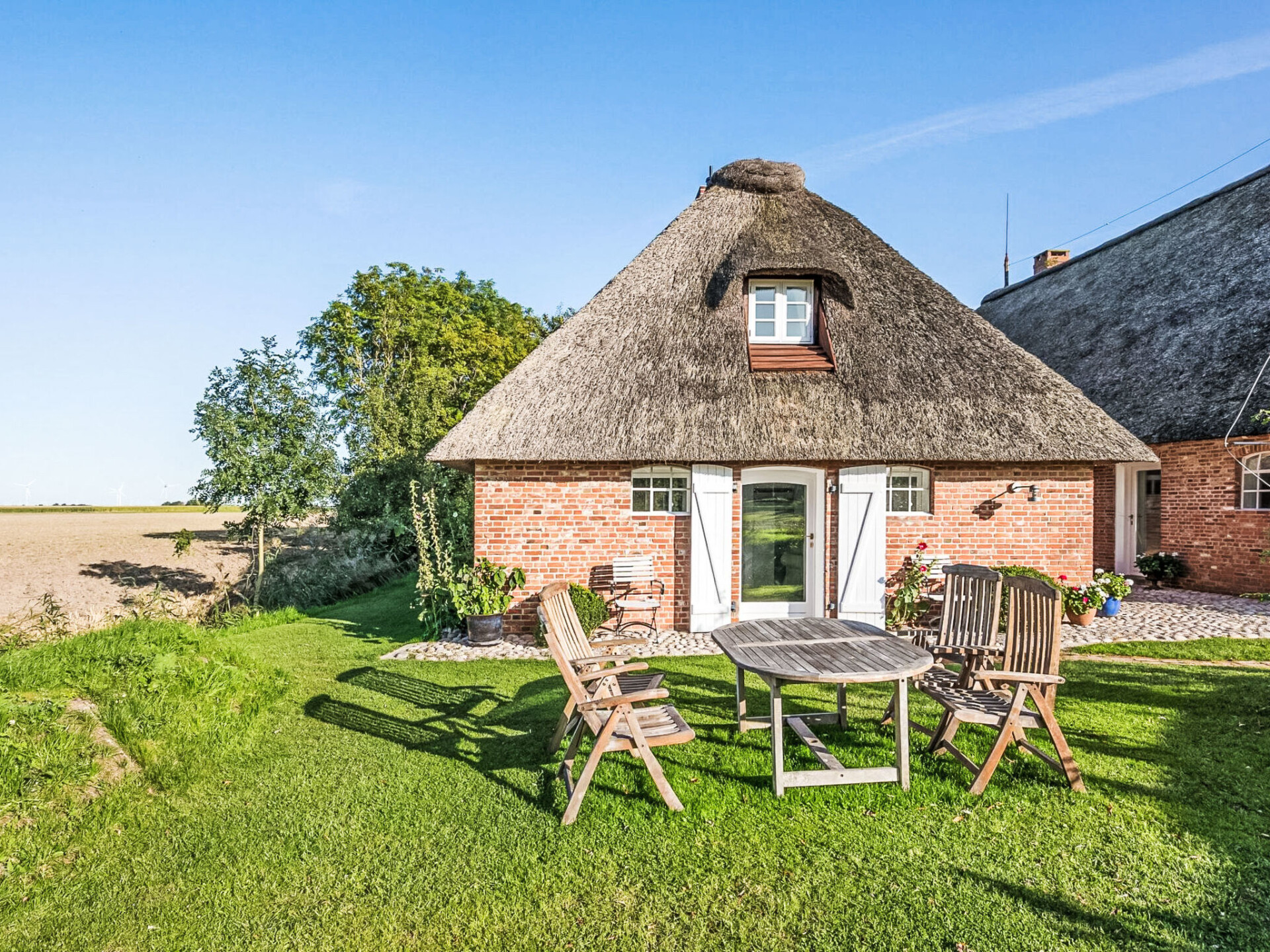 Gezellig, comfortabel huis "Kleine Reetdachkate", van 2 verdiepingen. In de wijk Simonsberg, 10 km van het centrum van Husum, rustige ligging, 2 km van zee, 2 km van het strand. Voor medegebruik: groot, mooie tuin, parkeerplaats bij het huis. Winkel 9 km, restaurant 1 km, bakkerij 2.5 km, bushalte 200 m, grasstrand 2 km. Auto noodzakelijk.