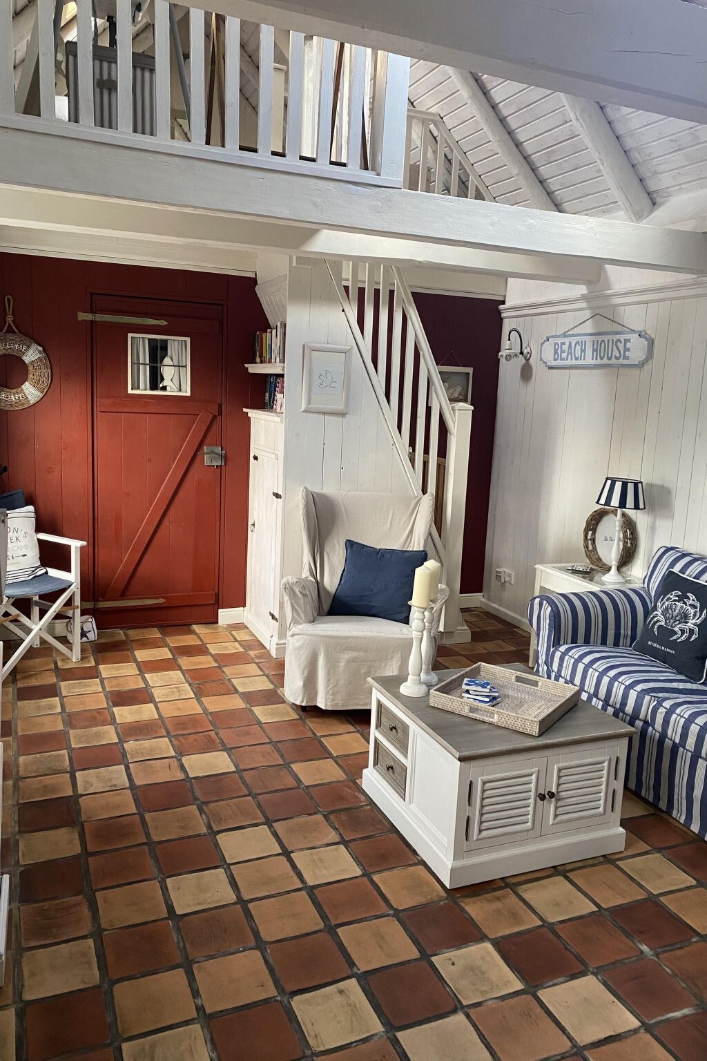 The holiday home is a charming former farm worker's house. It is a listed building and was completely and extensively renovated in 2014 from a building biology point of view. It is located in the centre of Rysum.The house also has a small, enclosed garden with a wooden terrace, garden furniture and a parasol.The interior design is particularly tasteful and reflects the charm and character of the 60 m² detached house. The attention to detail is recognisable in every single room. The tiled bedroom has a double bed (1.60 m x 2.00 m) and a TV as well as underfloor heating and a radiator to keep you cosy and warm in winter. The living room is furnished with a fireplace, flat-screen TV with satellite connection, stereo system and underfloor heating. On the open gallery, which can be reached via a listed staircase from the living room, there are two further beds (each 0.80 m x 2.00 m). The open-plan kitchen is equipped with a modern 5-burner gas hob, dishwasher, fridge-freezer, microwave, coffee machine and kettle. The ground-floor bathroom with shower, (infrared) heat cabin, washing machine, underfloor heating and radiators round off the furnishings of the house. The high ceilings give the entire house plenty of light and spaciousness. A travel cot and a high chair with seat reducer are also available. The entrance area and the ground floor, including the shower, are at ground level.In the village centre there is a Gulfhof converted into a restaurant, a village tavern and a small bakery. There is a larger supermarket in Emden, about 8 km away. The sea is approx. 4 km away on foot. The nearest major railway station is 10 km away.